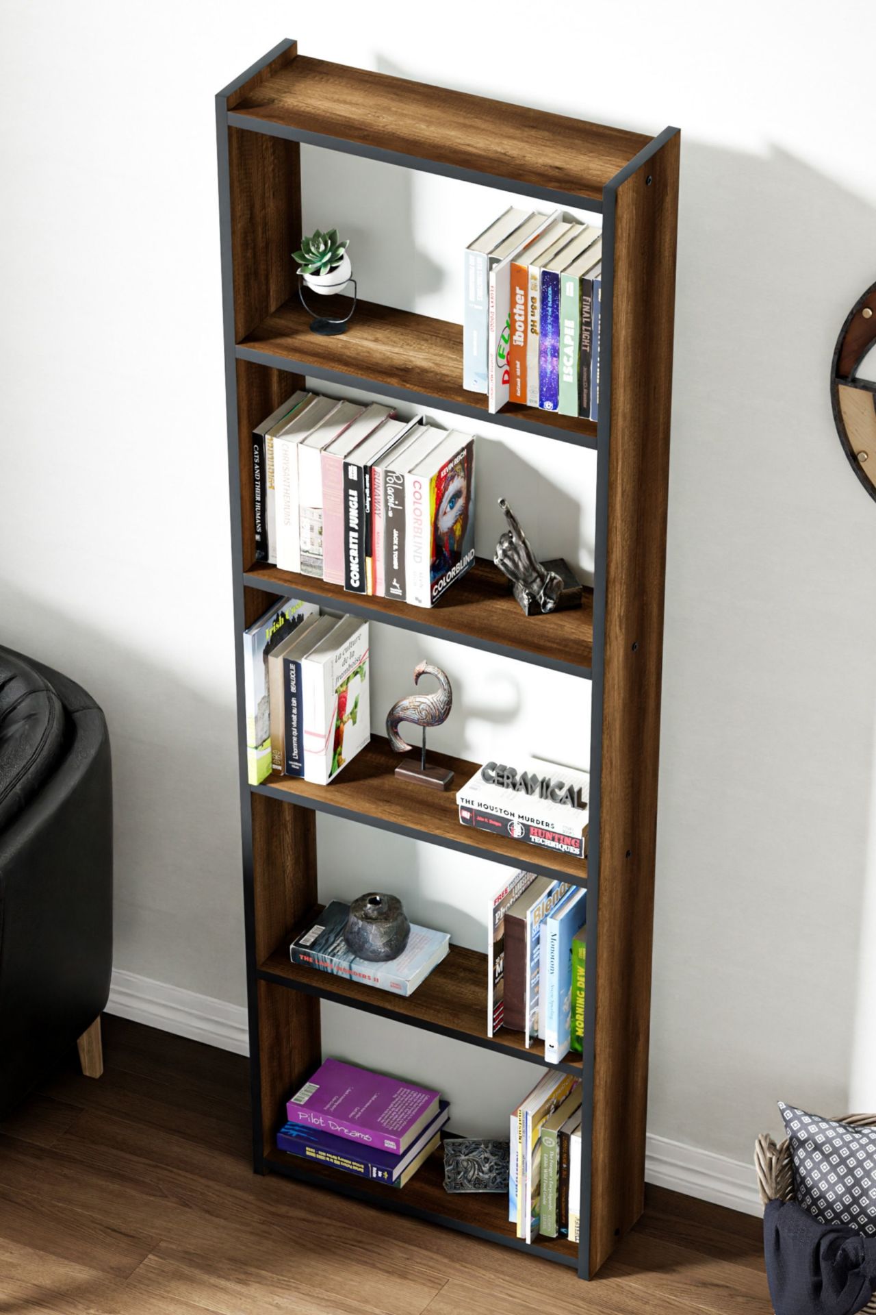Cera Kts2 Modern Kitaplık / 5 Raflı - 60x180 Cm - Ceviz
