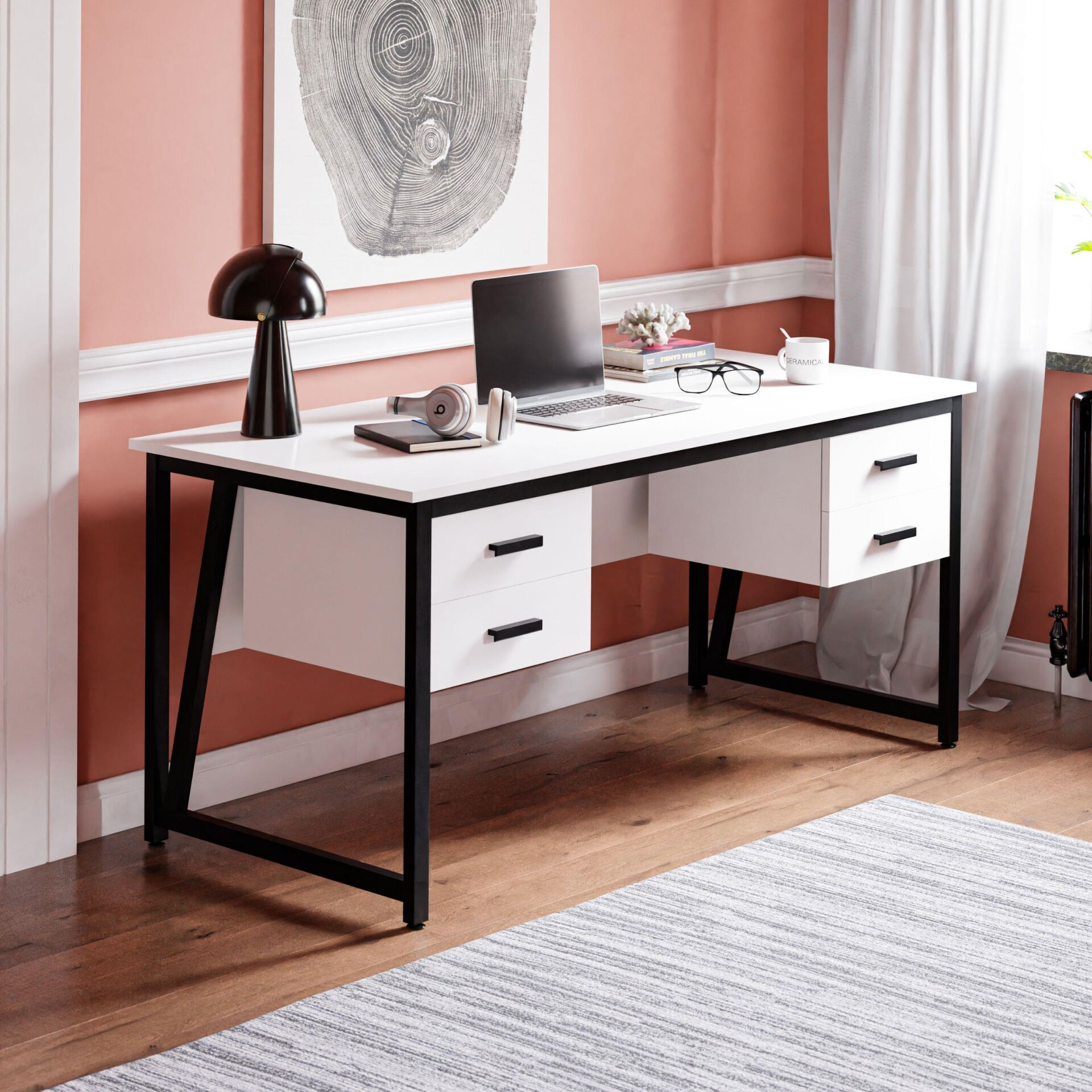 • 4 çekmece: Ofis malzemeleri ve kişisel eşyalar için düzenli saklama alanı.
