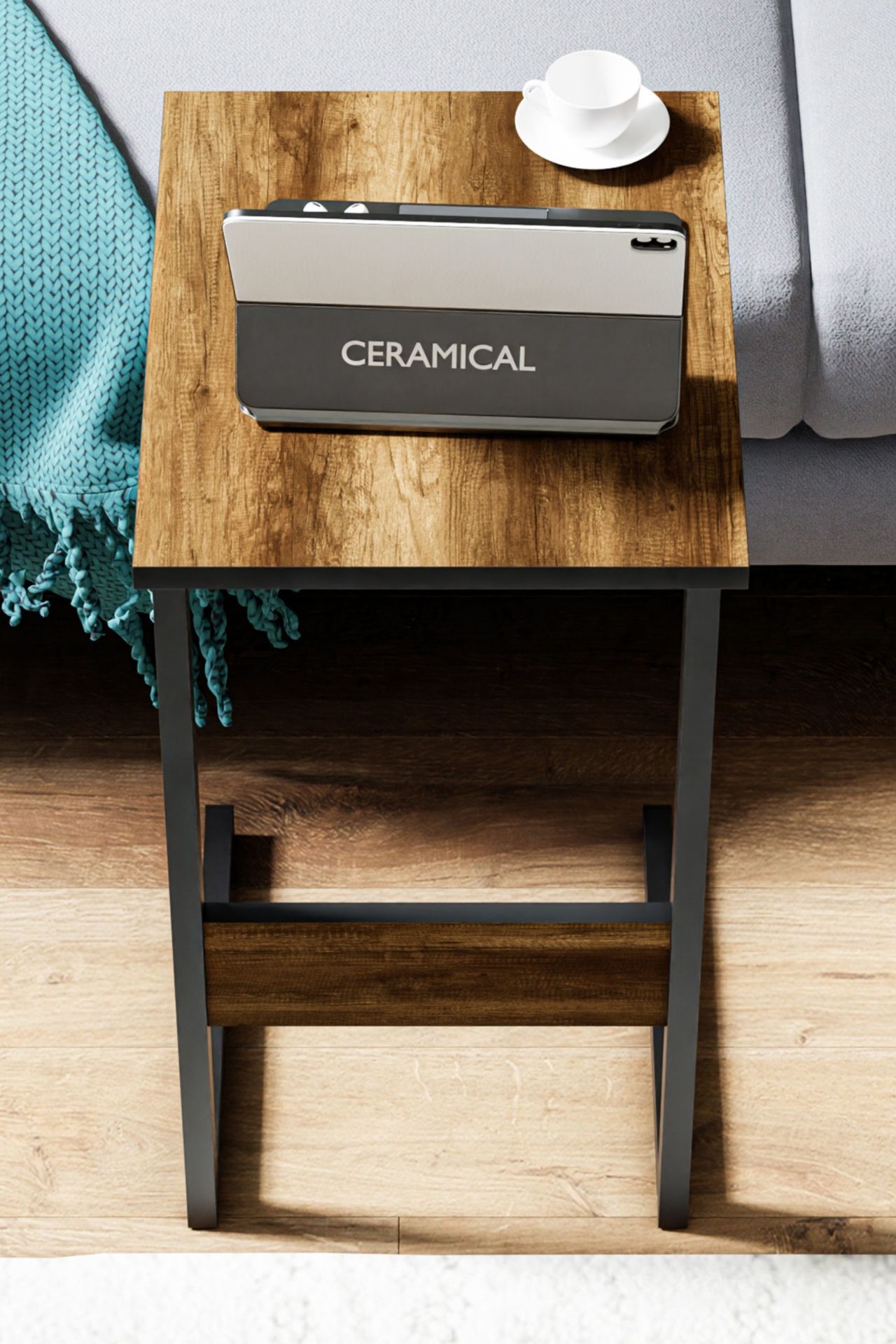 Cera Sabit Laptop Sehpası – Barok Ceviz ürünümüz melamin yüzeye sahip 18 mm yonga levhadan üretilmektedir.