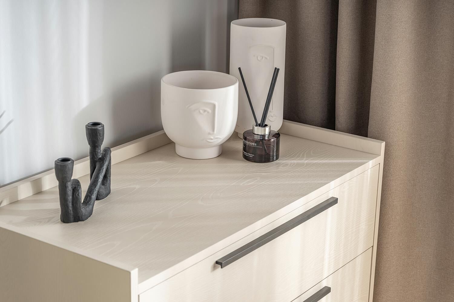 Ayaklı yapısı, şifonyere modern bir görünüm kazandırırken temizlik ve kullanım kolaylığı sağlar. Dayanıklı malzemesi sayesinde uzun ömürlü kullanım garantisi sunar.