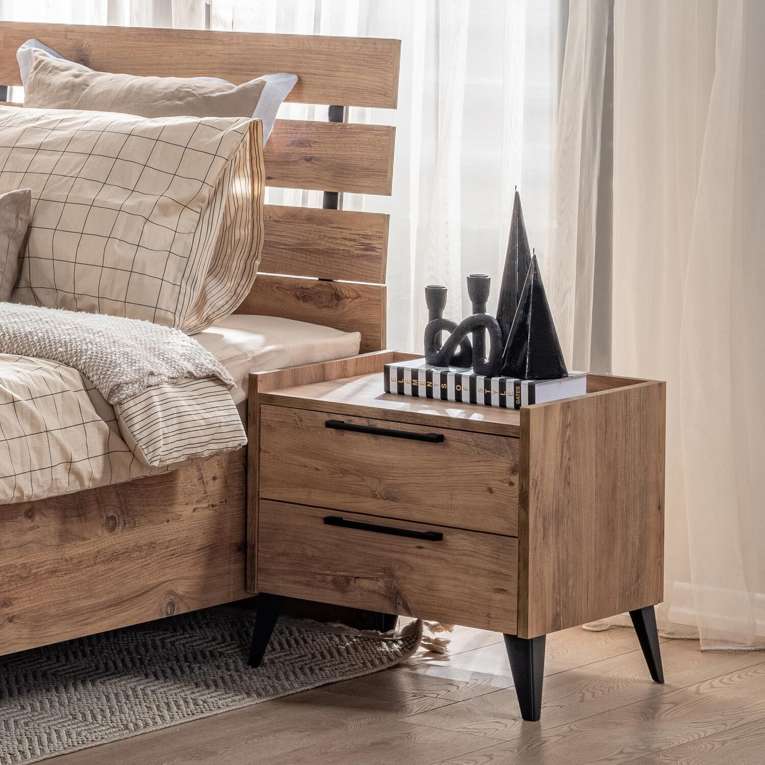 Ayaklı yapısı, şifonyere modern bir görünüm kazandırırken temizlik ve kullanım kolaylığı sağlar. Dayanıklı malzemesi sayesinde uzun ömürlü kullanım garantisi sunar.