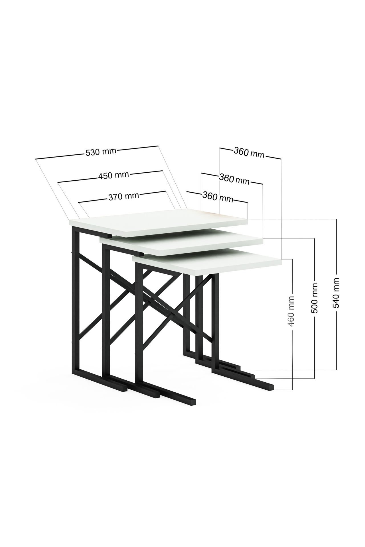 Cera ZG1 3’lü Zigon Sehpa – Beyaz, şık beyaz rengi tabla ve modern siyah metal ayaklarıyla yaşam alanlarınıza hem estetik hem de fonksiyonel bir dokunuş katar. Üçlü sehpa seti, misafir ağırlarken, çay-kahve sunumlarında veya dekoratif amaçlı kullanımda pratiklik sağlar.