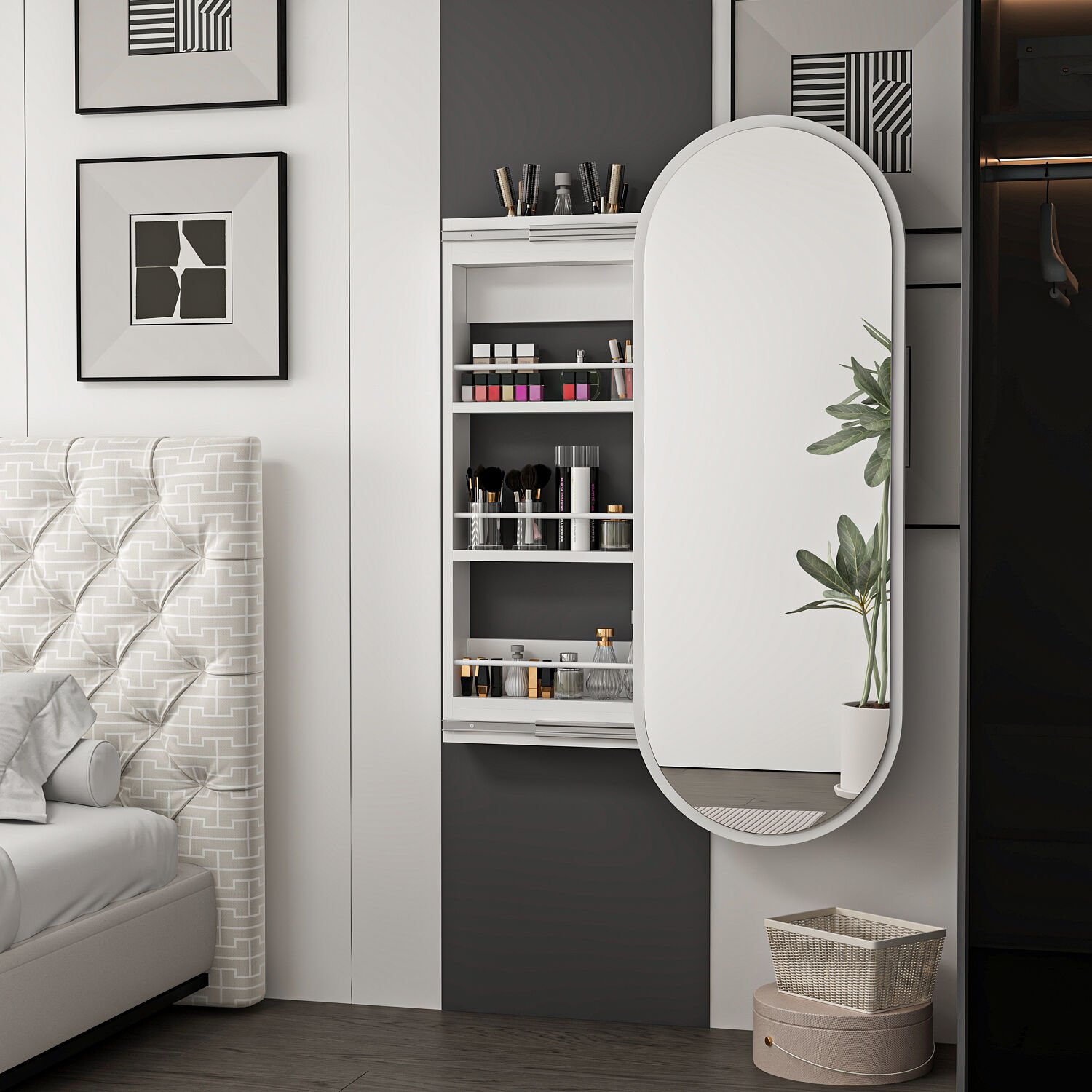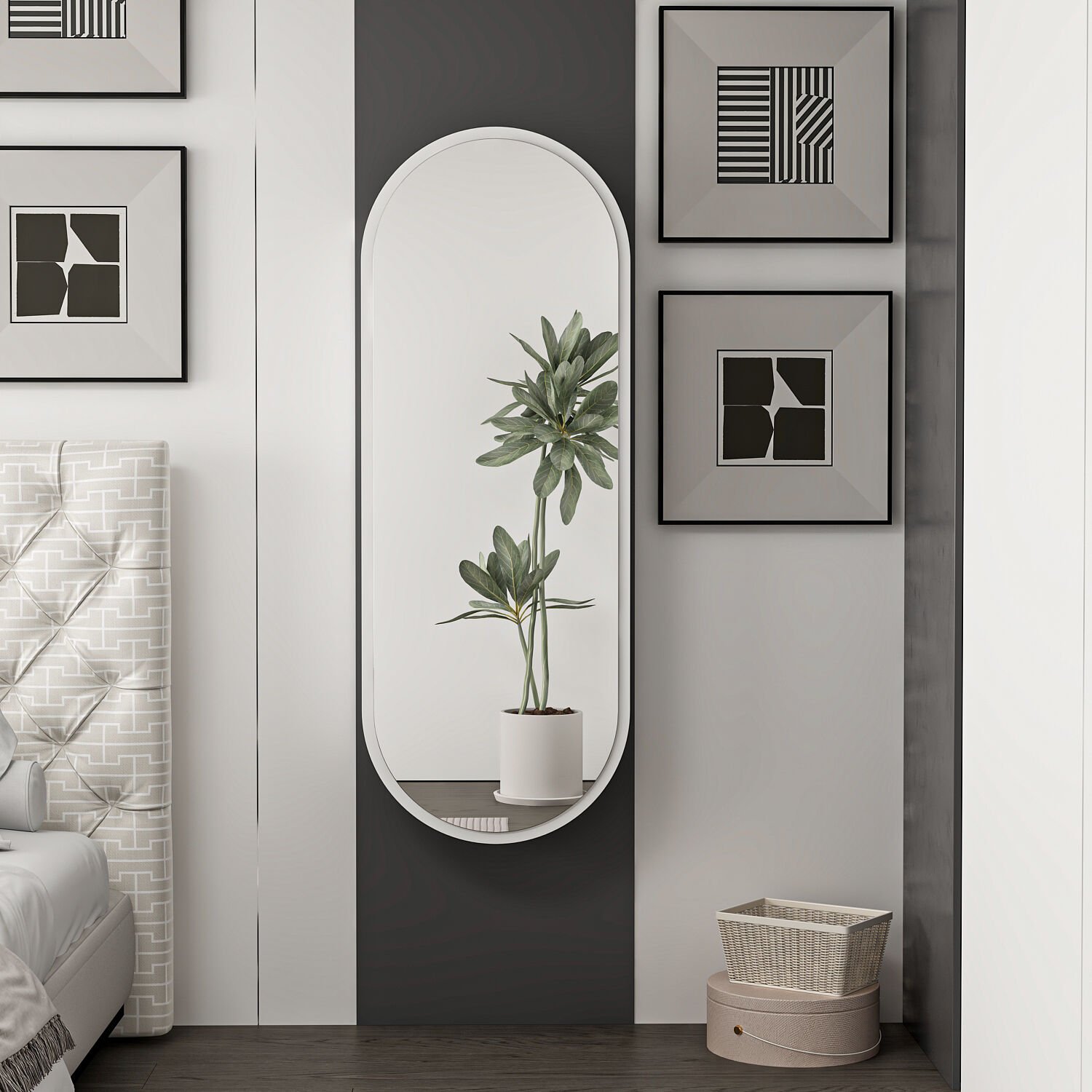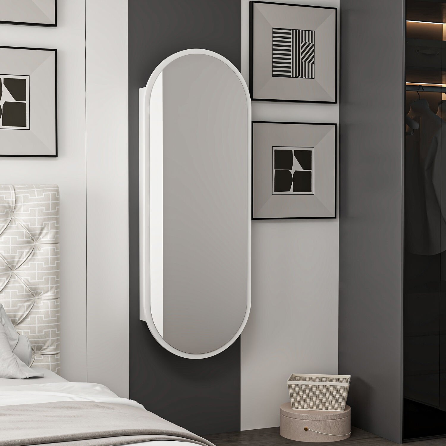 Dose Duvara Monte Makyaj Aynası - Beyaz, modern ve minimalist tasarımıyla hem şık bir dekoratif öğe hem de fonksiyonel bir makyaj çözümü sunar. 45 cm genişlik ve 120 cm yükseklik ölçüleri ile yüzünüzü ve üst bedeninizi rahatça görebileceğiniz geniş bir görüntü alanı sağlar.