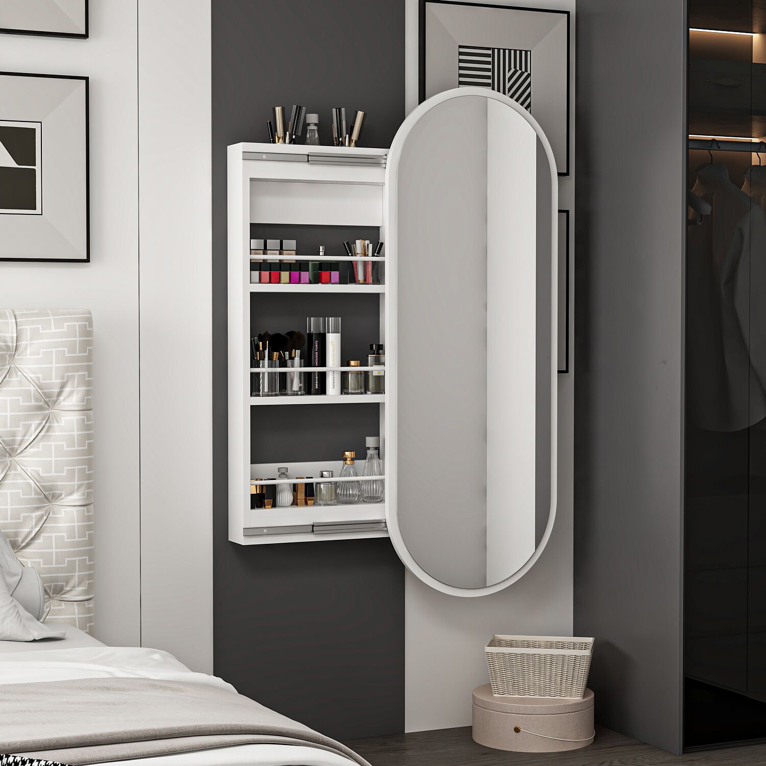 Dose Duvara Monte Makyaj Aynası - Beyaz, modern ve minimalist tasarımıyla hem şık bir dekoratif öğe hem de fonksiyonel bir makyaj çözümü sunar. 45 cm genişlik ve 120 cm yükseklik ölçüleri ile yüzünüzü ve üst bedeninizi rahatça görebileceğiniz geniş bir görüntü alanı sağlar.