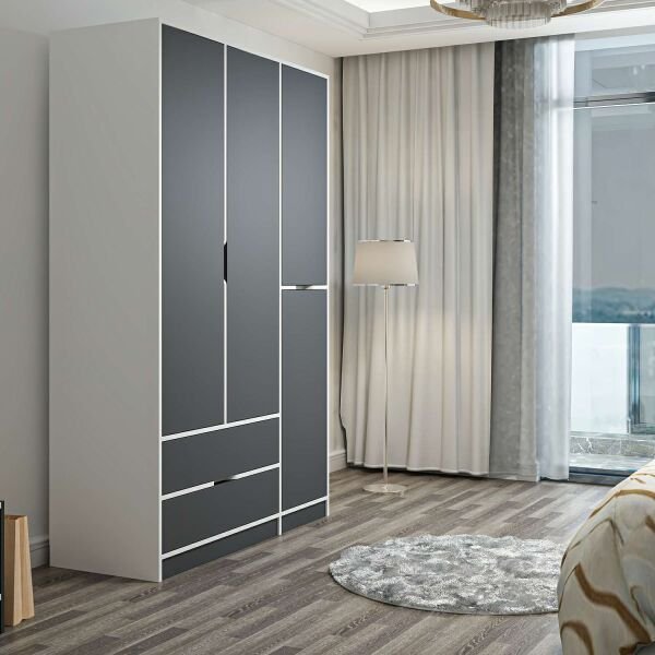 Elina 3 Kapaklı Dolap - Beyaz/Antrasit