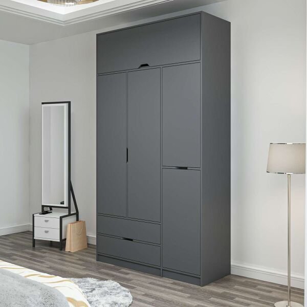 Elina 3 Kapaklı Dolap + Yüklük - Antrasit/Antrasit