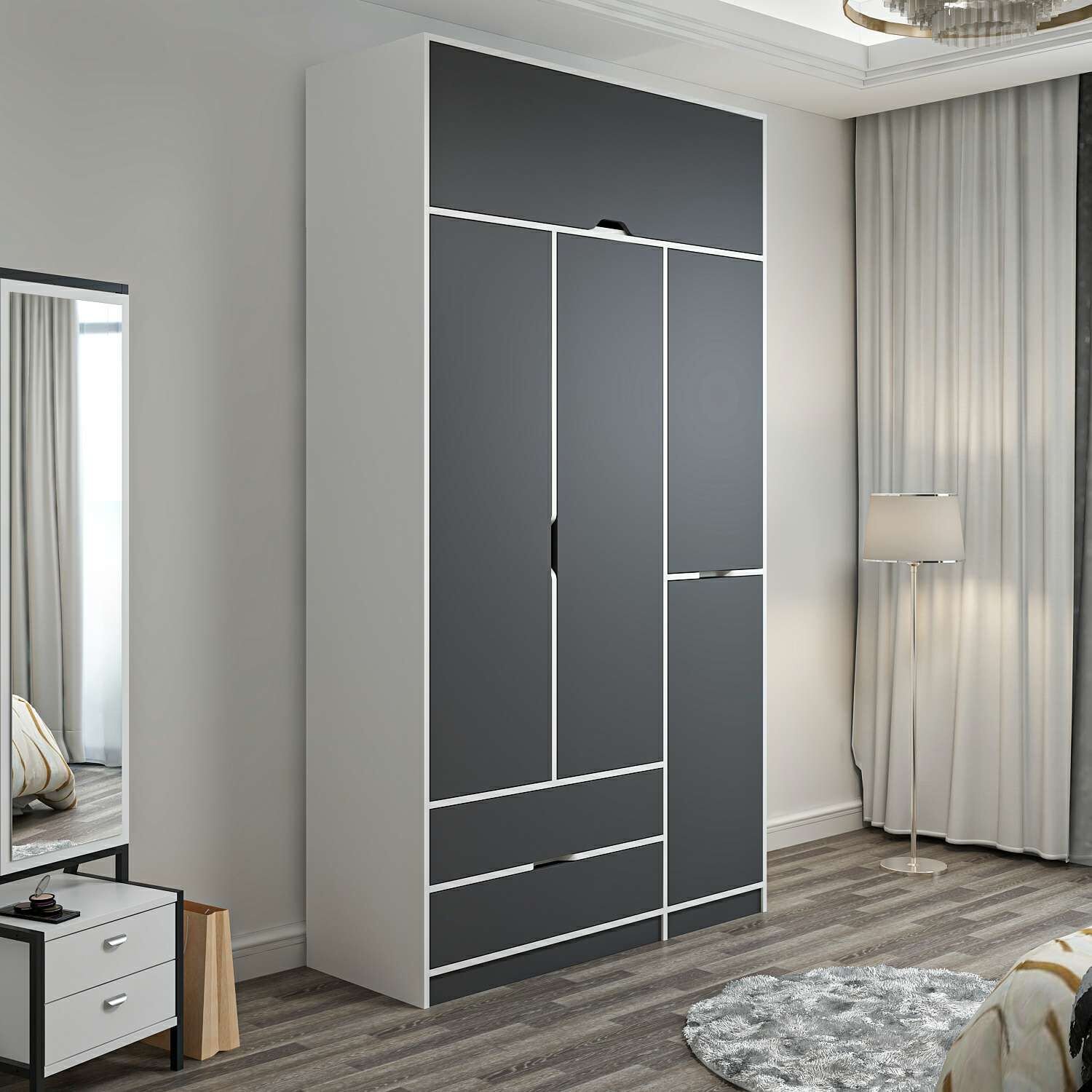 Elina 3 Kapaklı Dolap + Yüklük - Beyaz/Antrasit