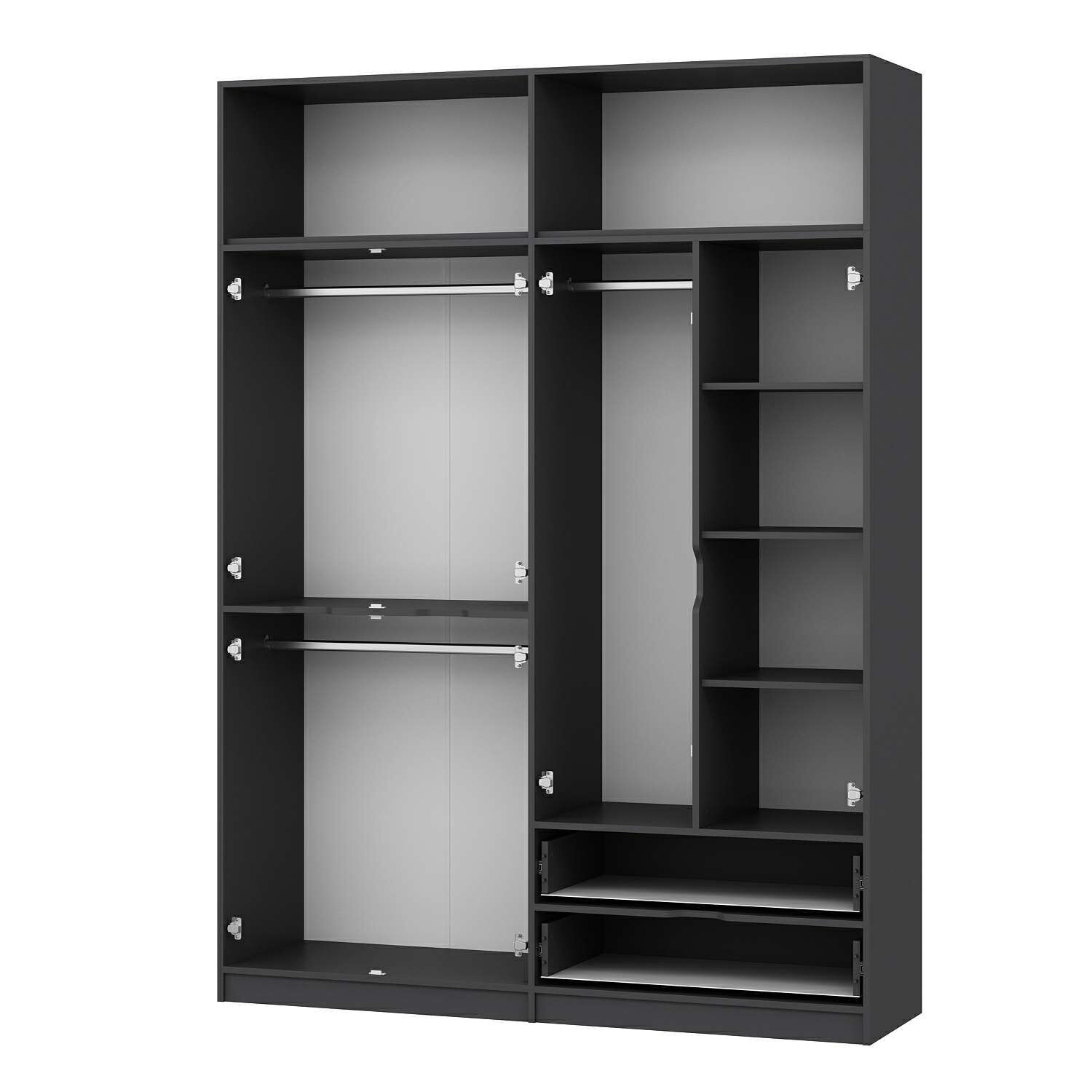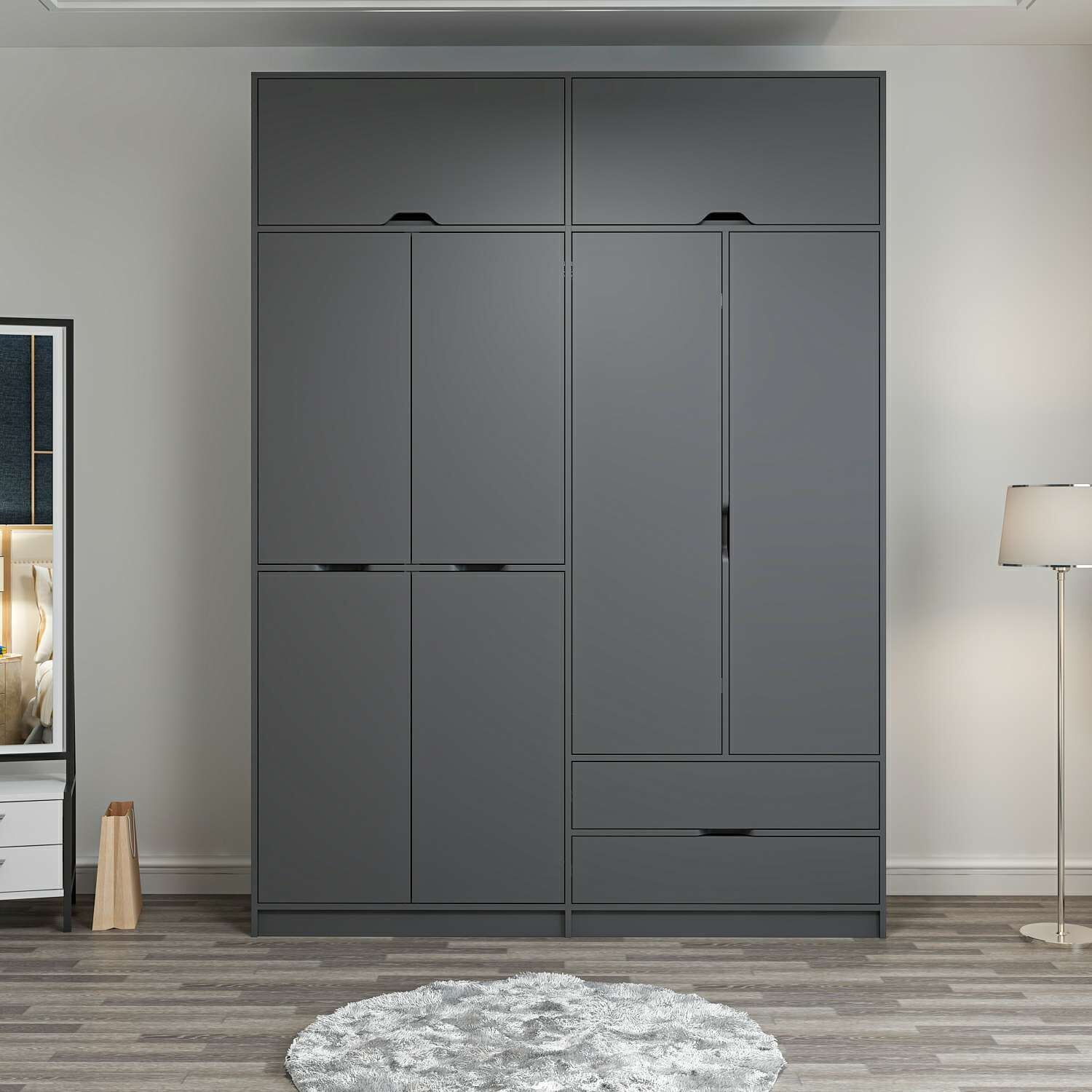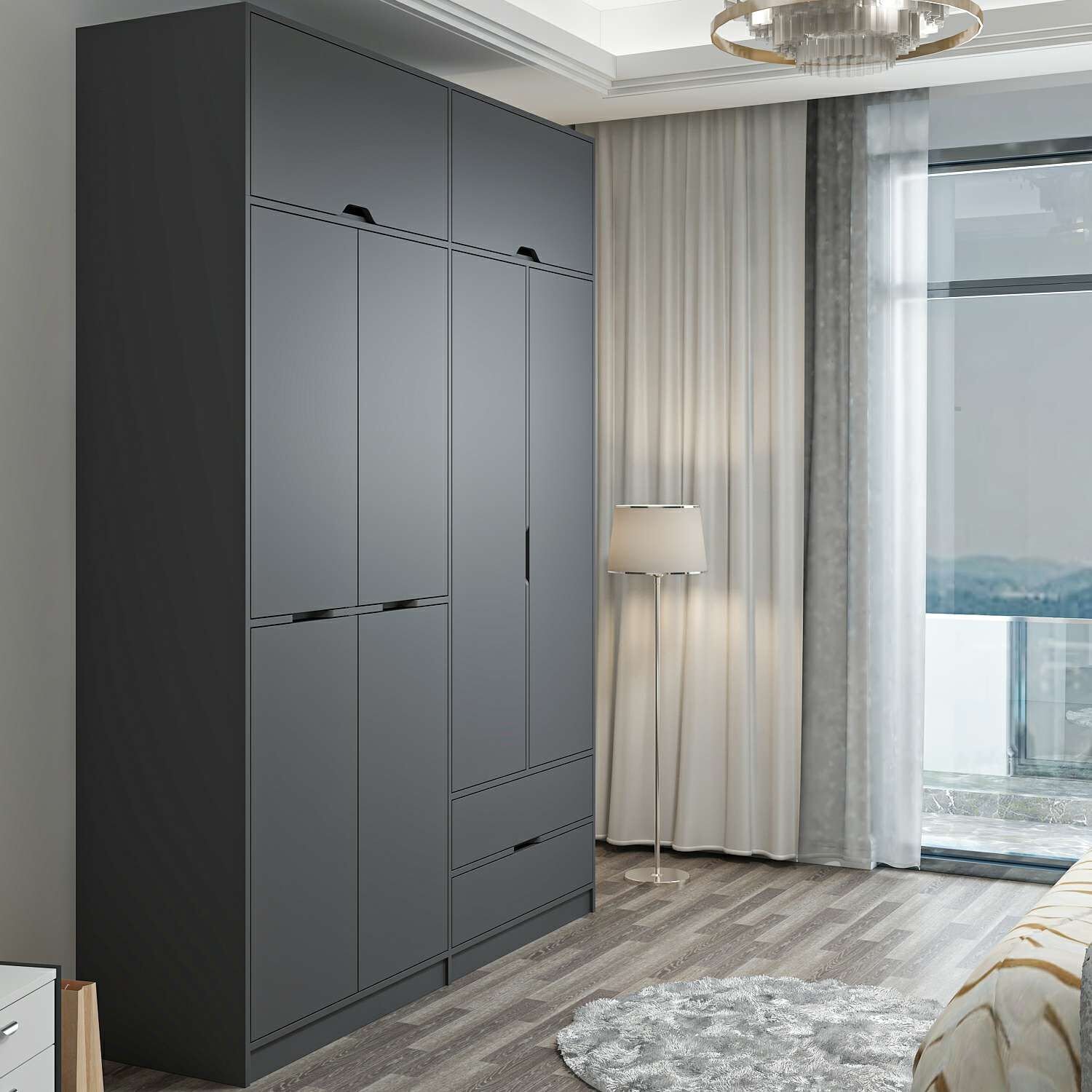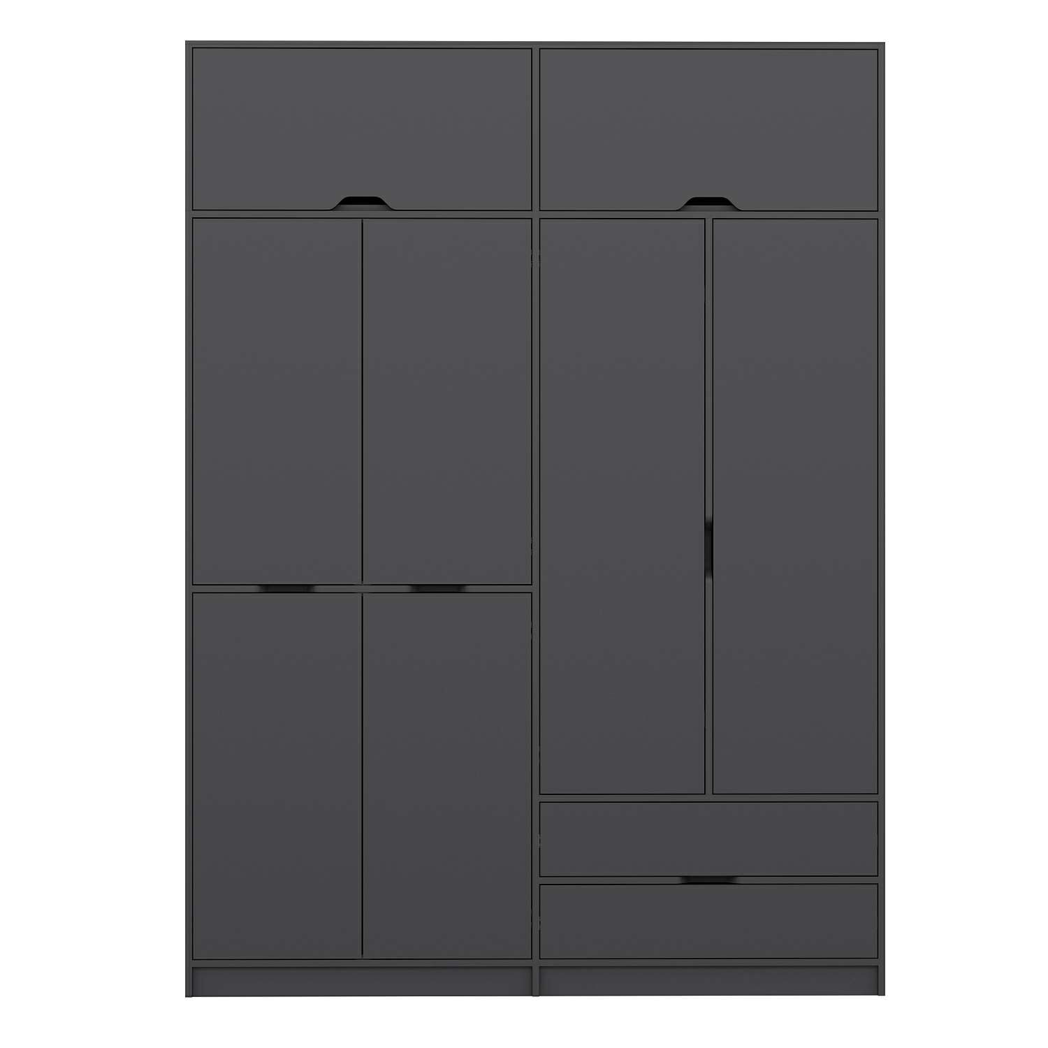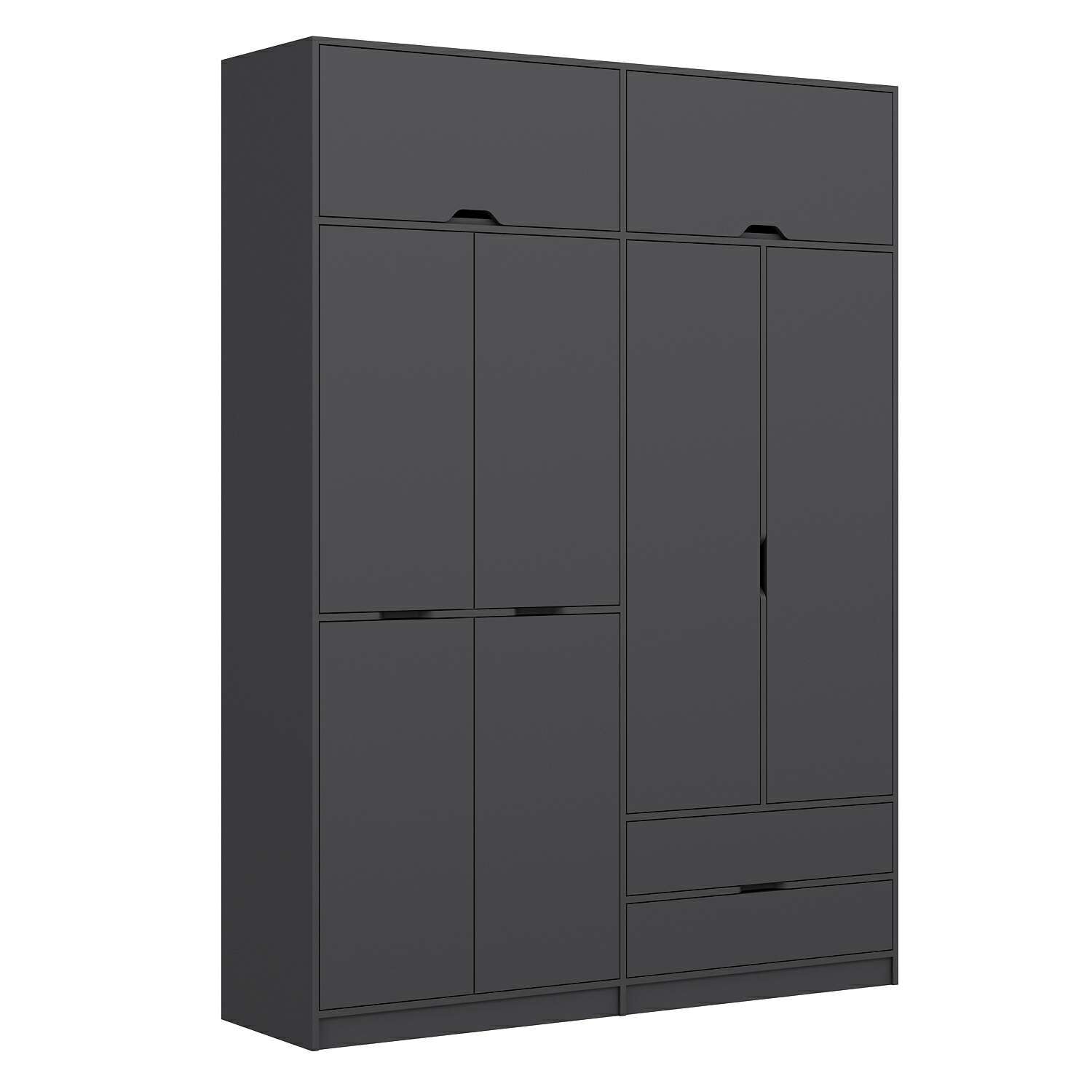 Elina 4 Kapaklı Dolap + Yüklük - Antrasit/Antrasit