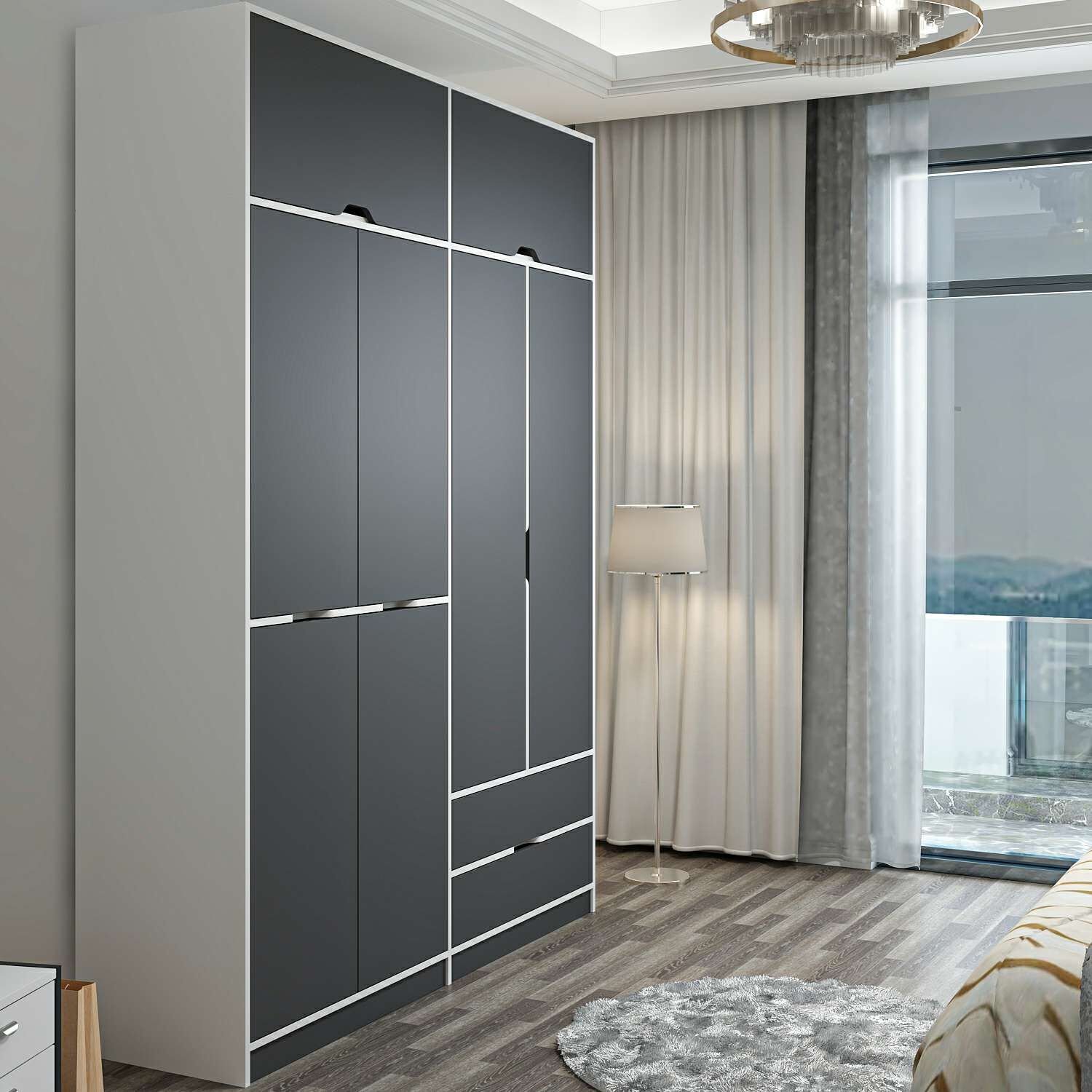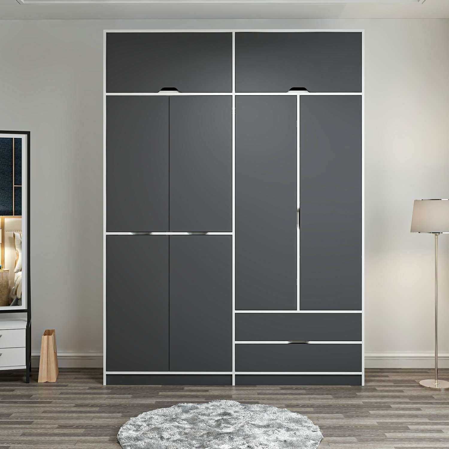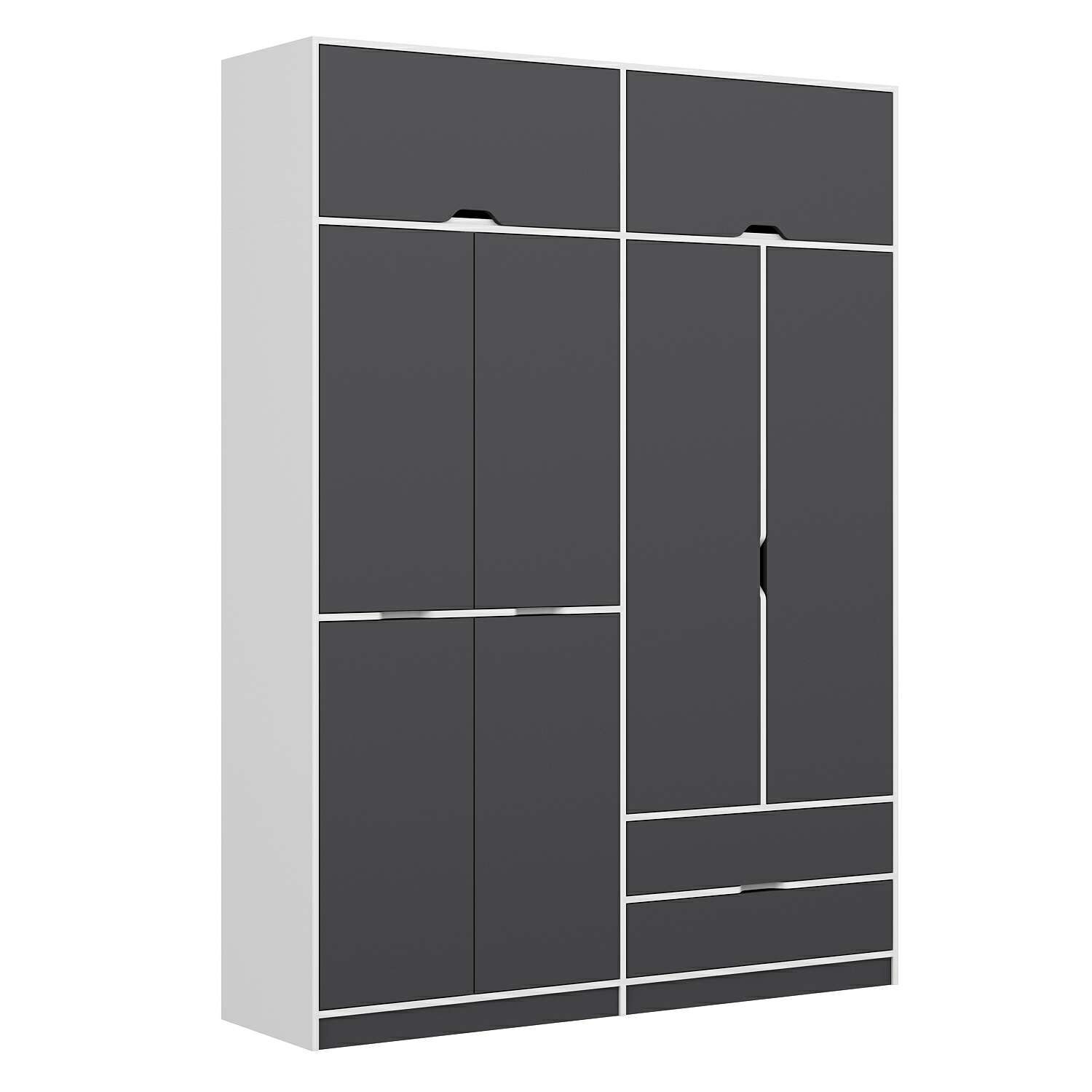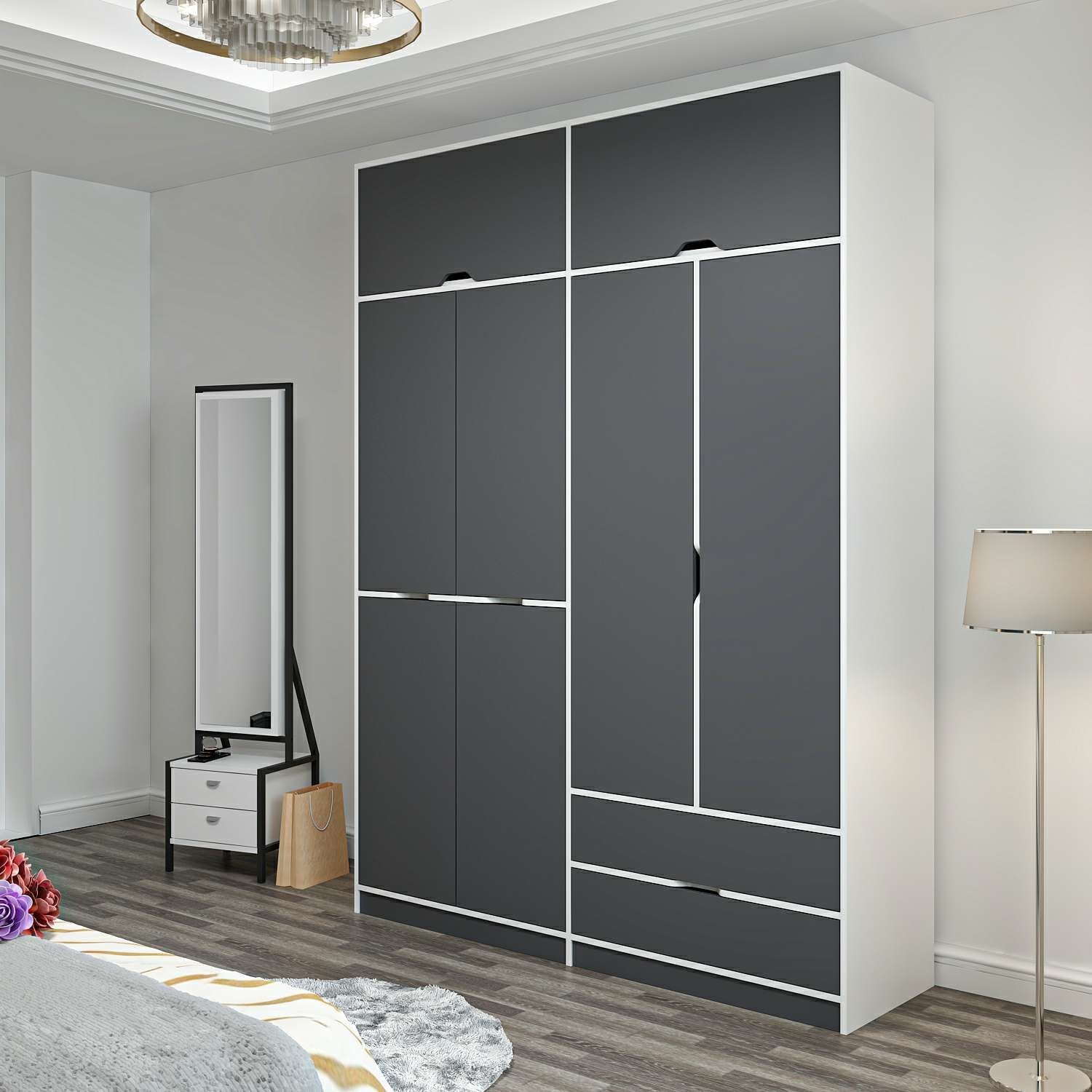 Elina 4 Kapaklı Dolap + Yüklük - Beyaz/Antrasit