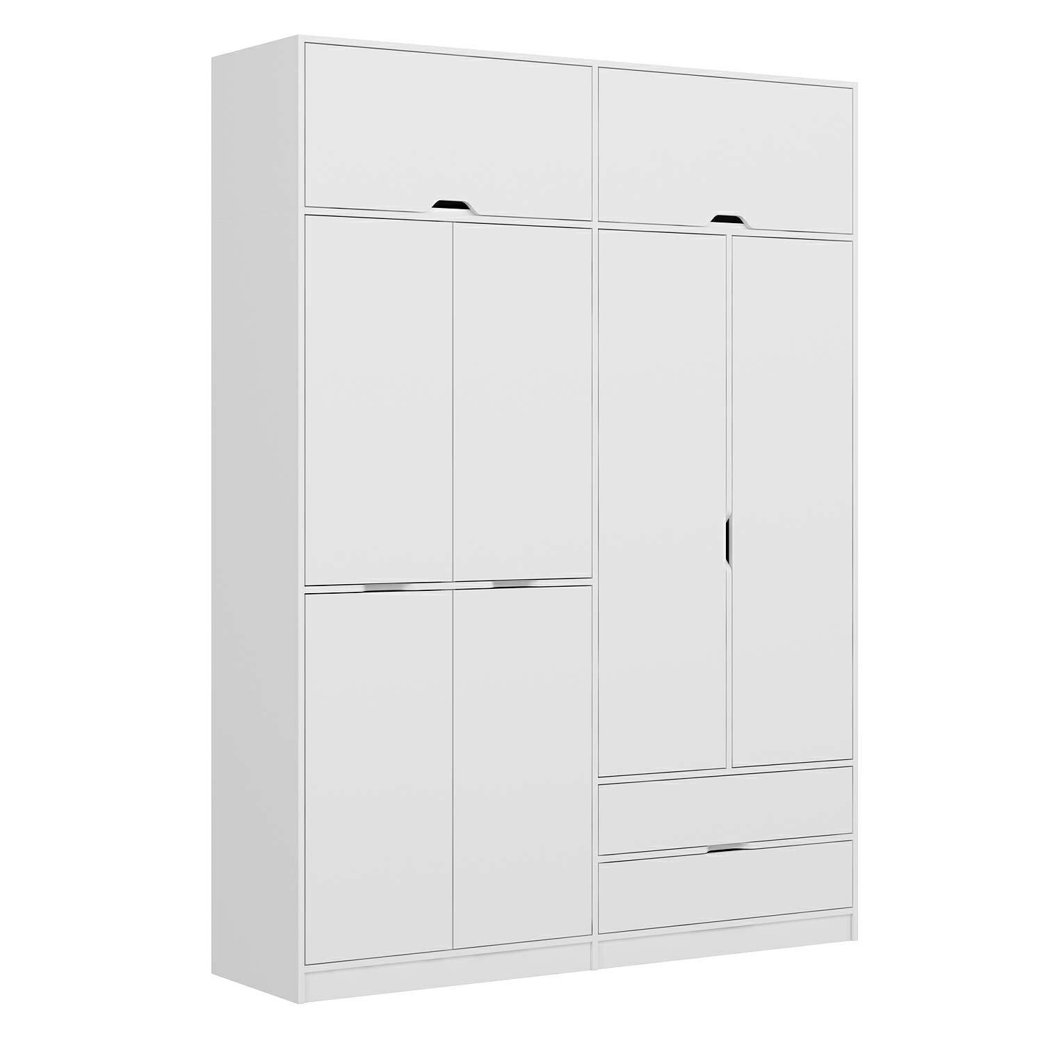 Elina 4 Kapaklı Dolap + Yüklük - Beyaz/Beyaz