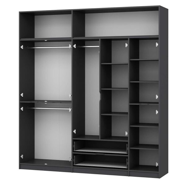 Elina 5 Kapaklı Dolap + Yüklük - Antrasit/Antrasit