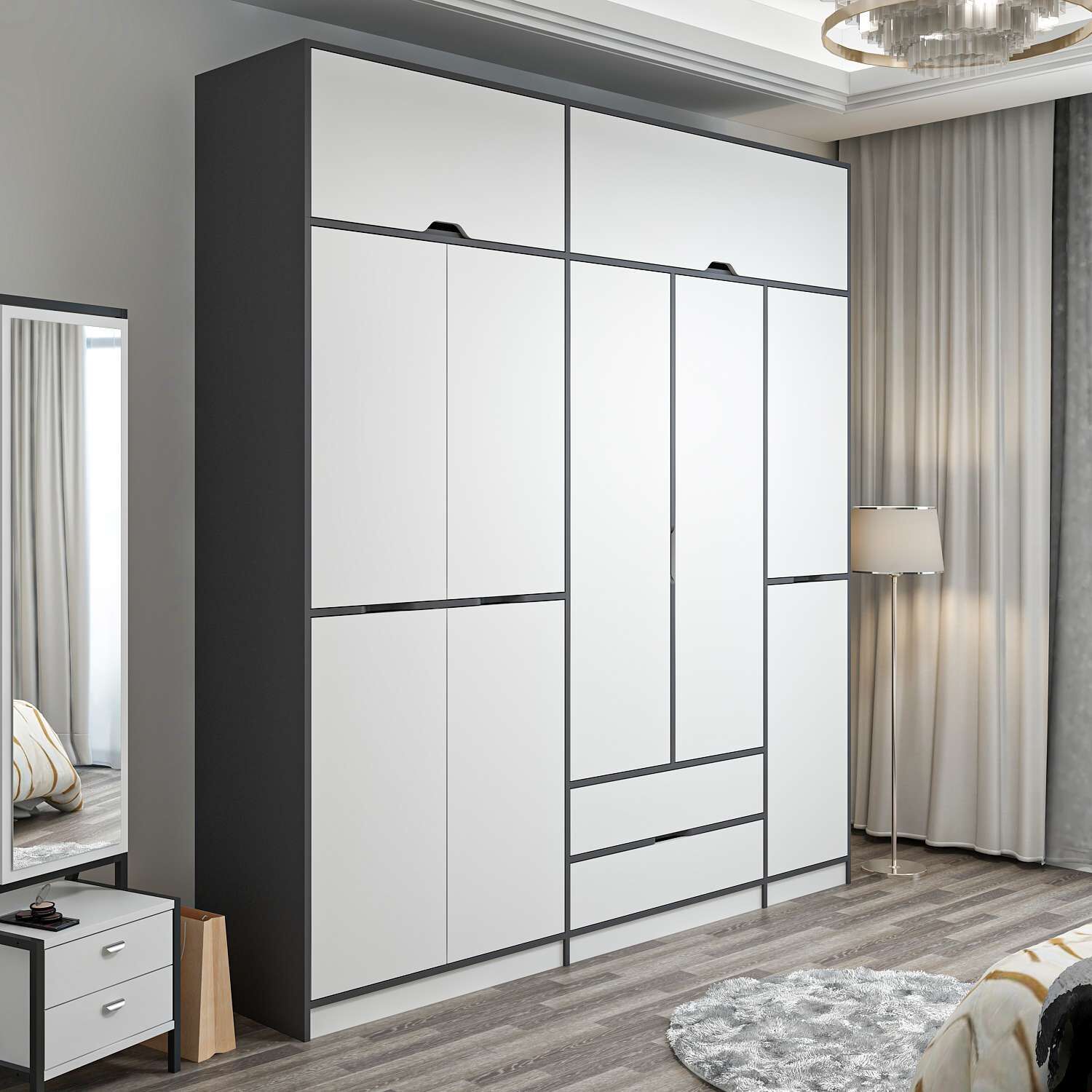 Elina 5 Kapaklı Dolap + Yüklük - Antrasit/Beyaz