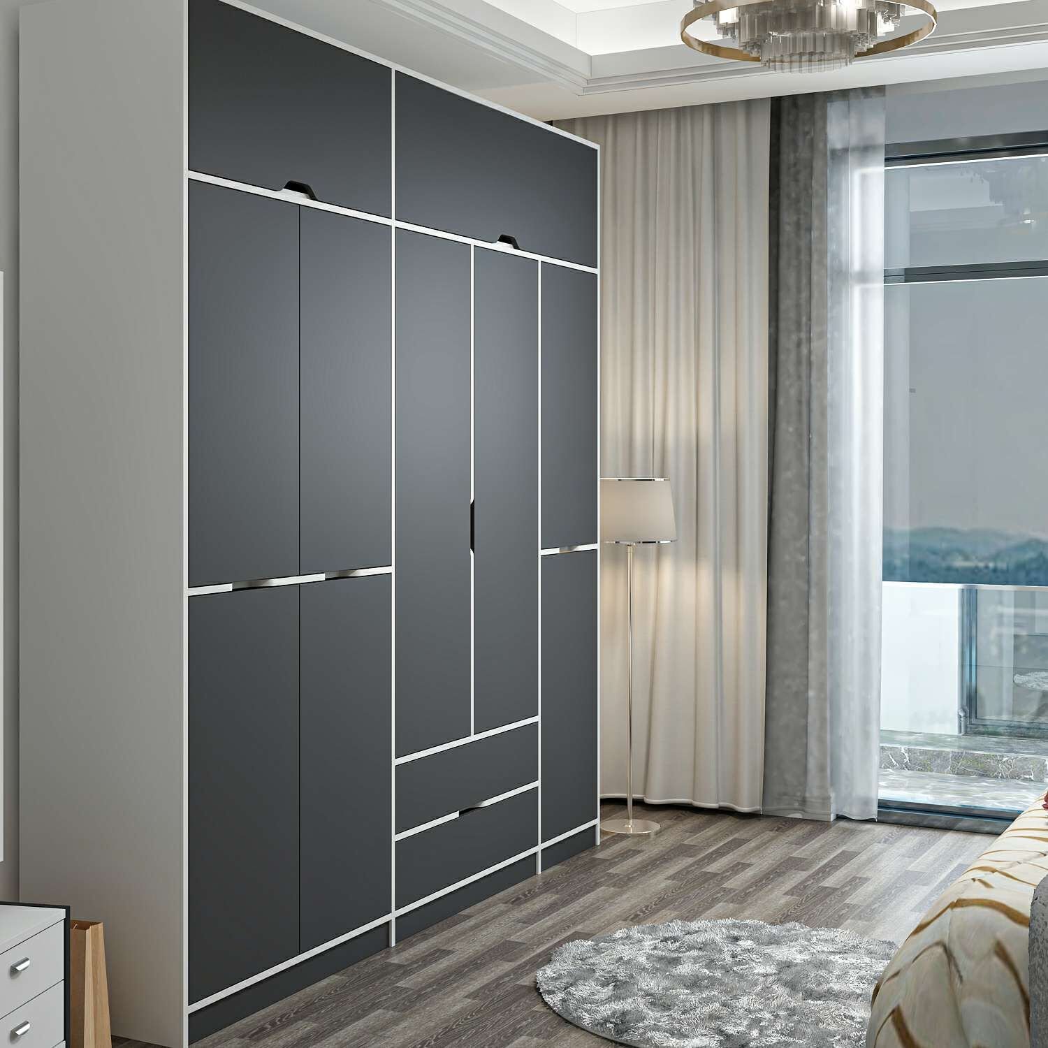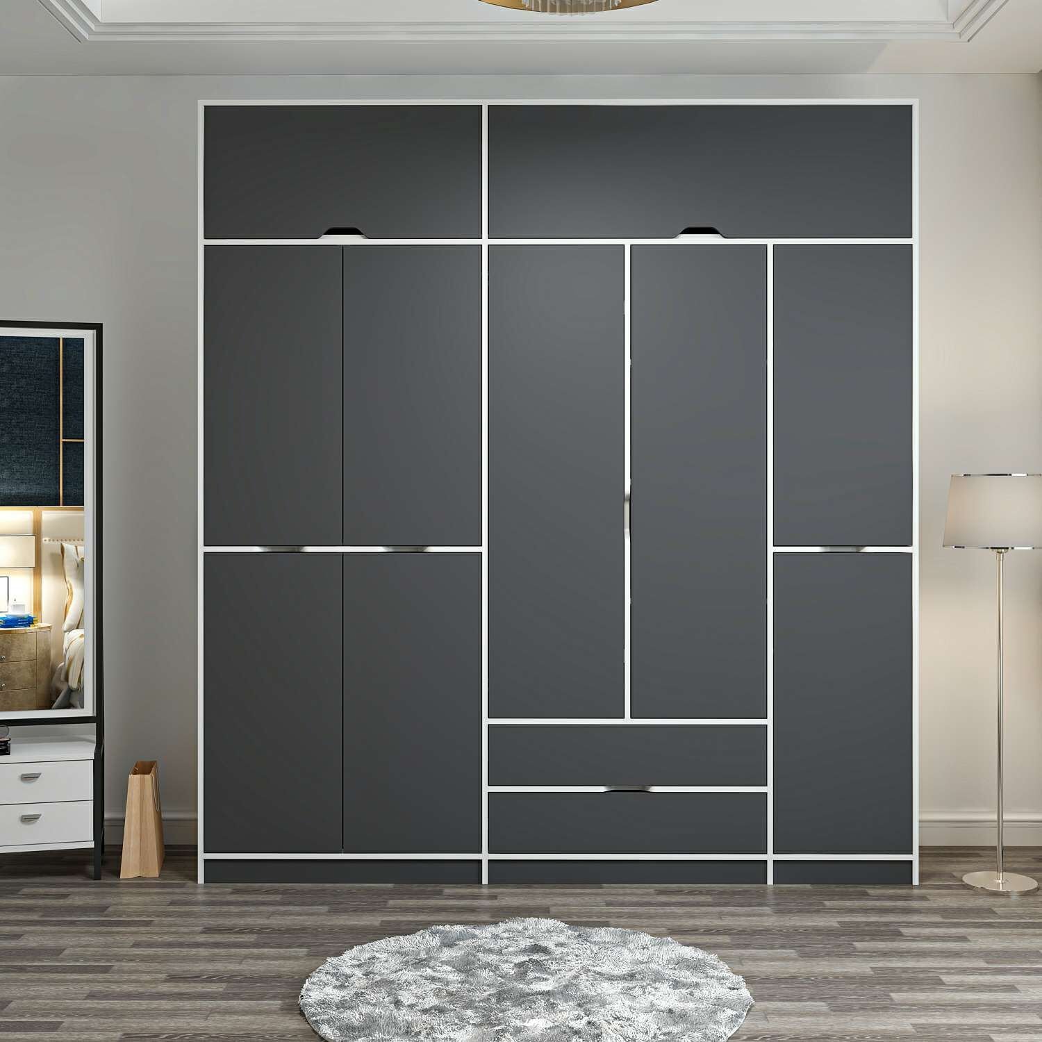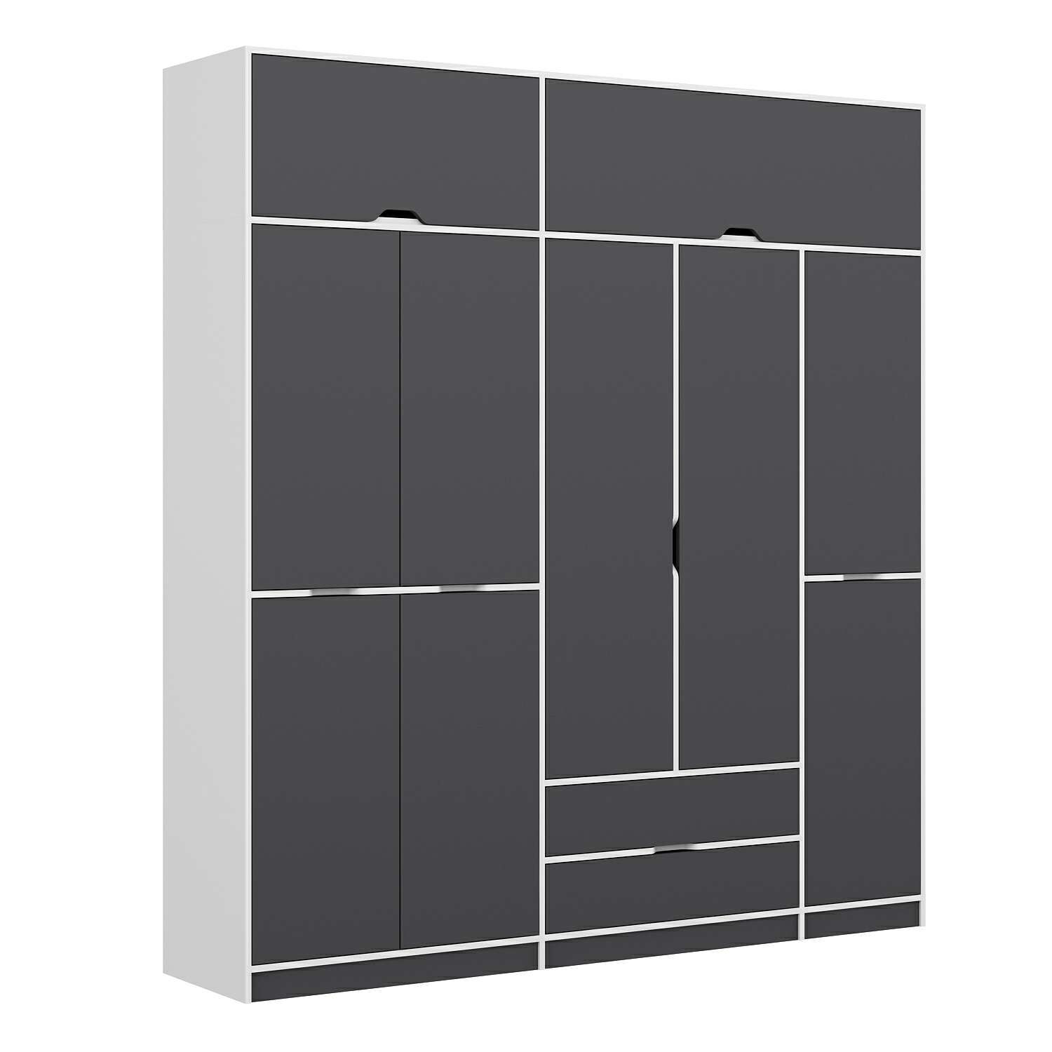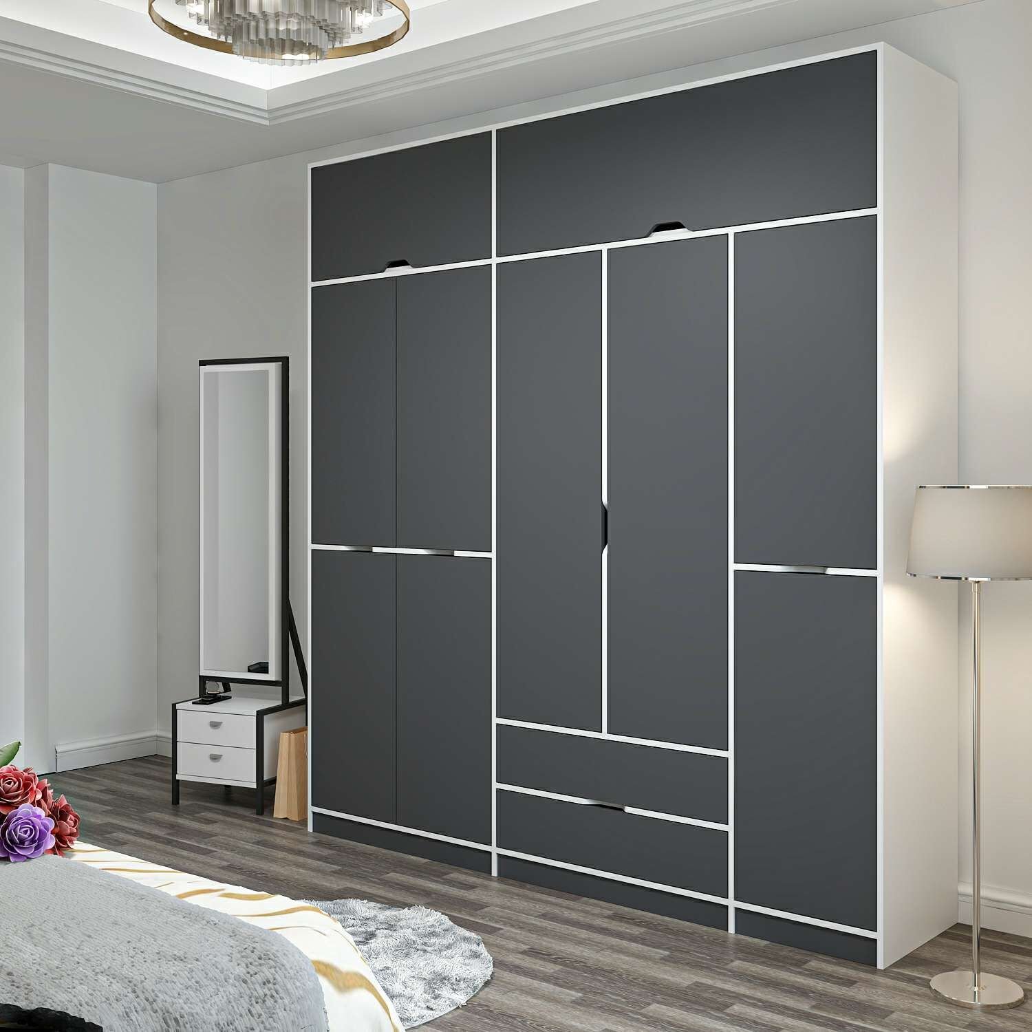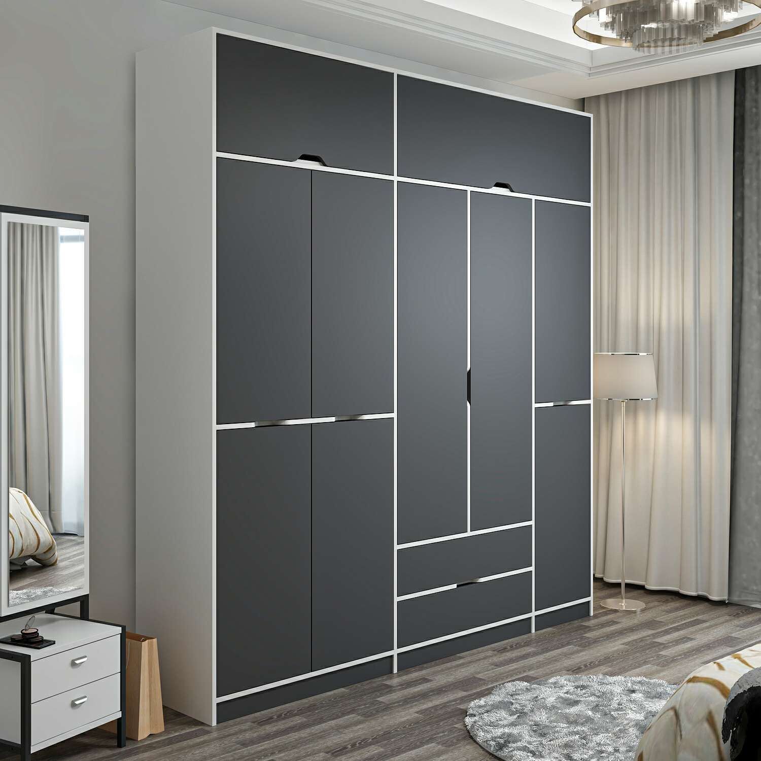 Elina 5 Kapaklı Dolap + Yüklük - Beyaz/Antrasit