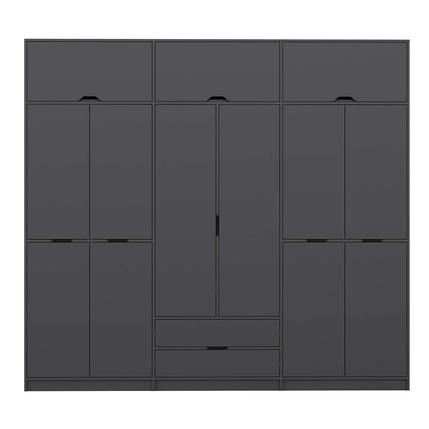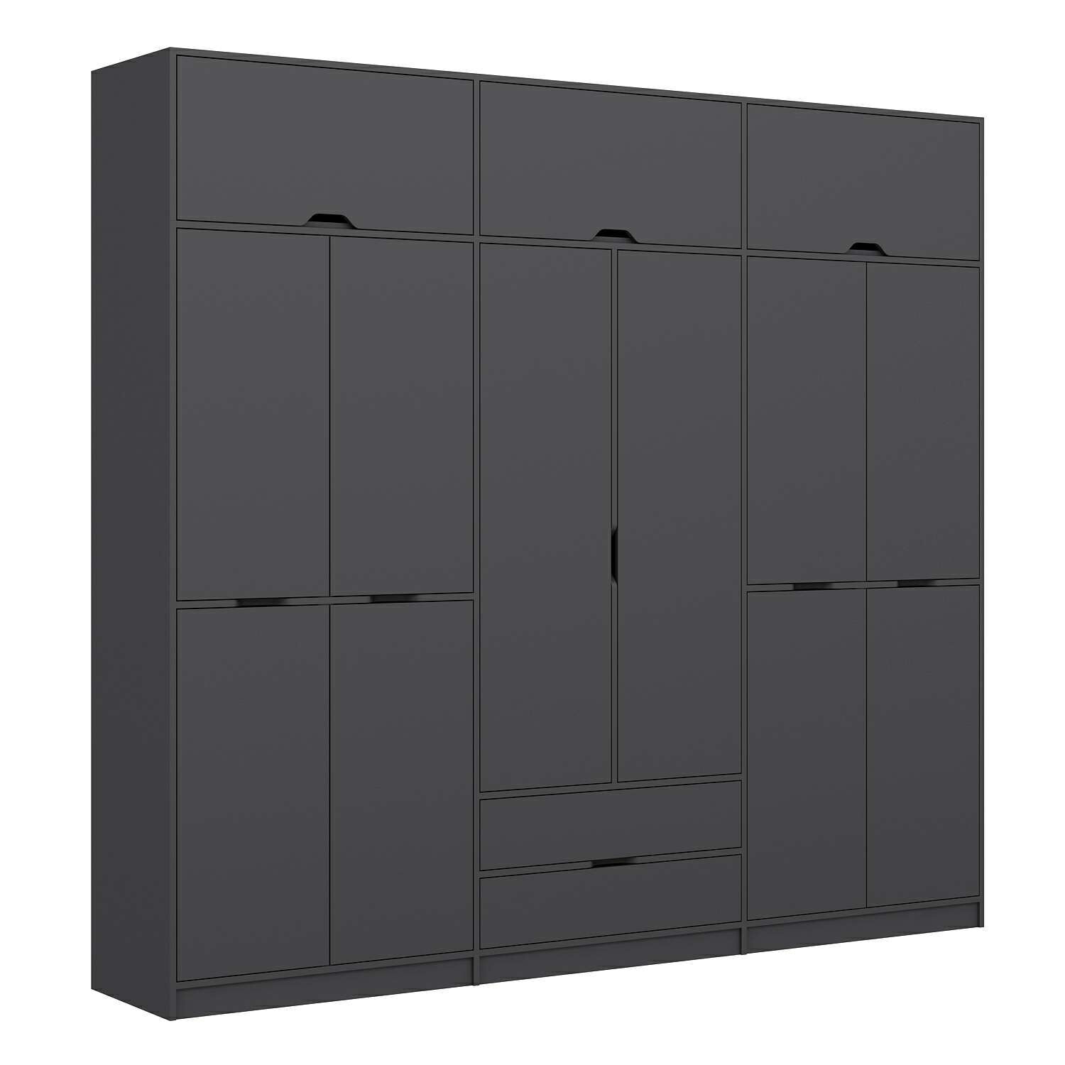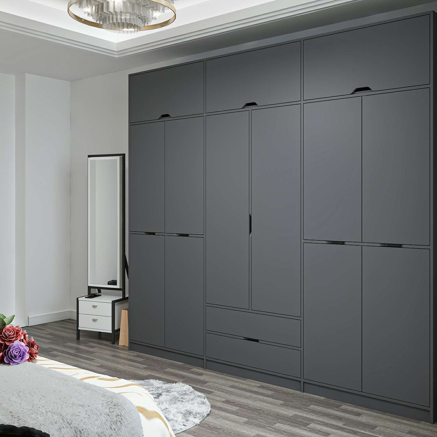 Elina 6 Kapaklı Dolap + Yüklük - Antrasit/Antrasit