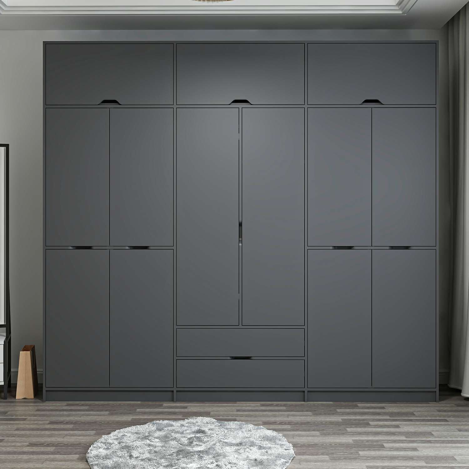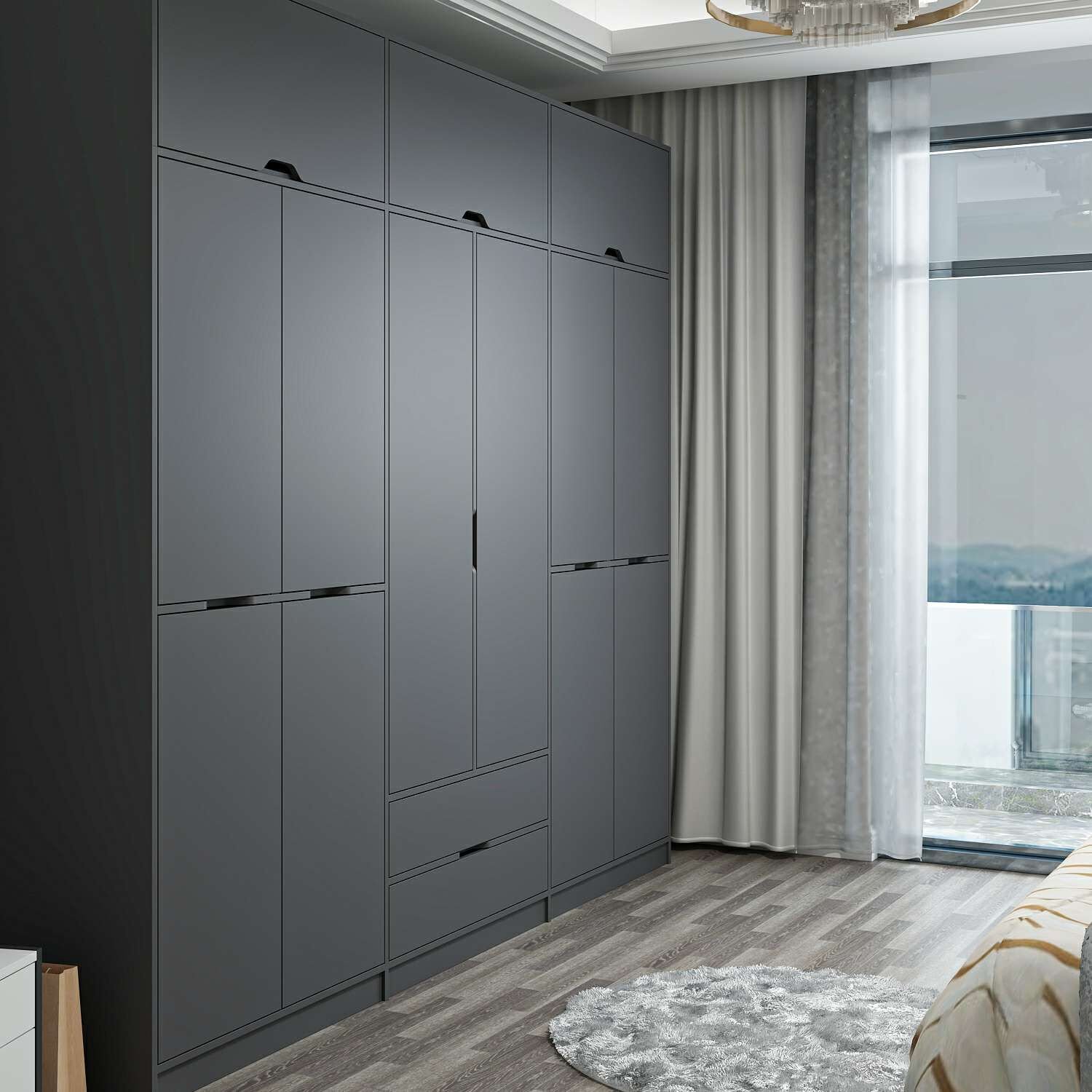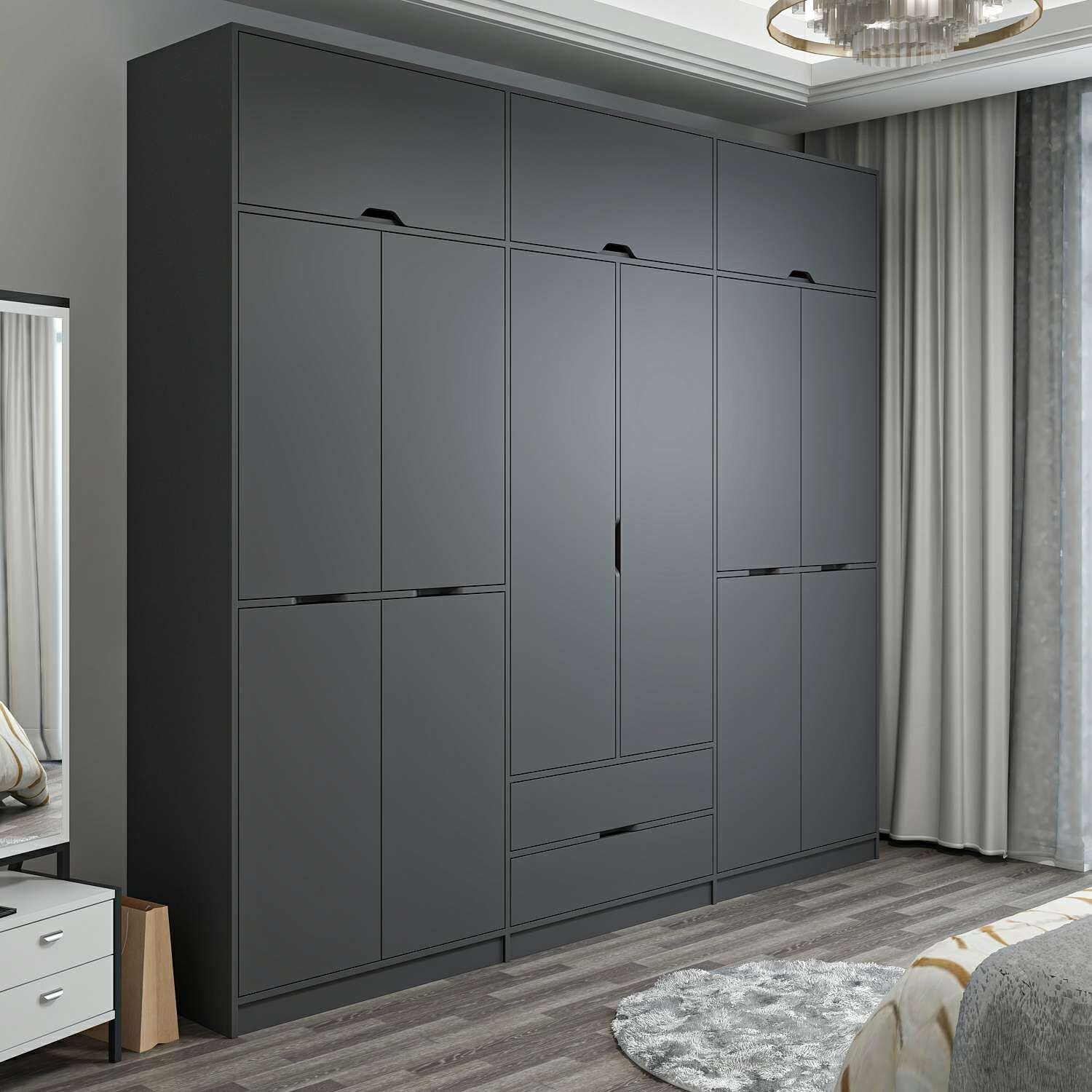 Elina 6 Kapaklı Dolap + Yüklük - Antrasit/Antrasit