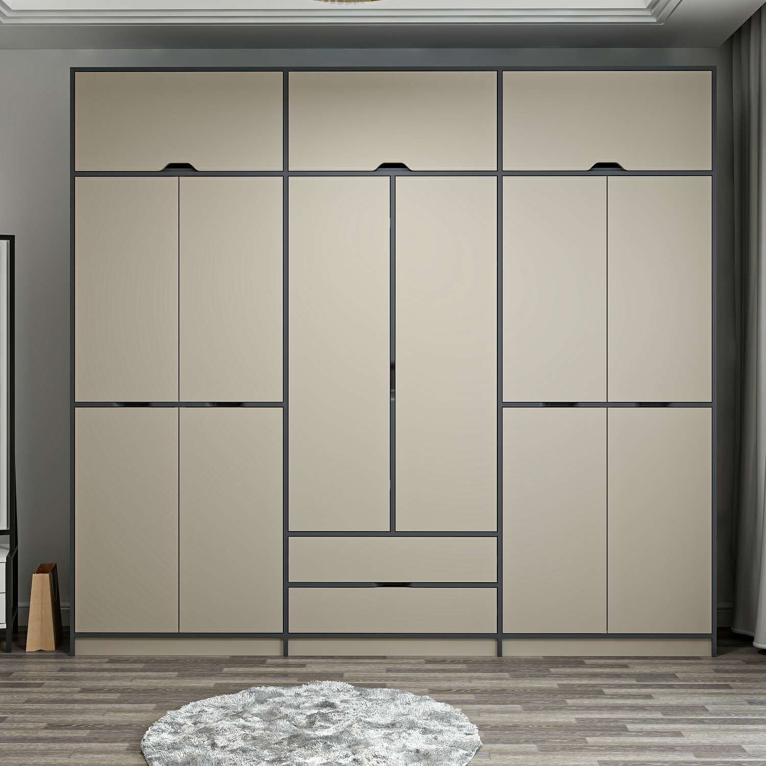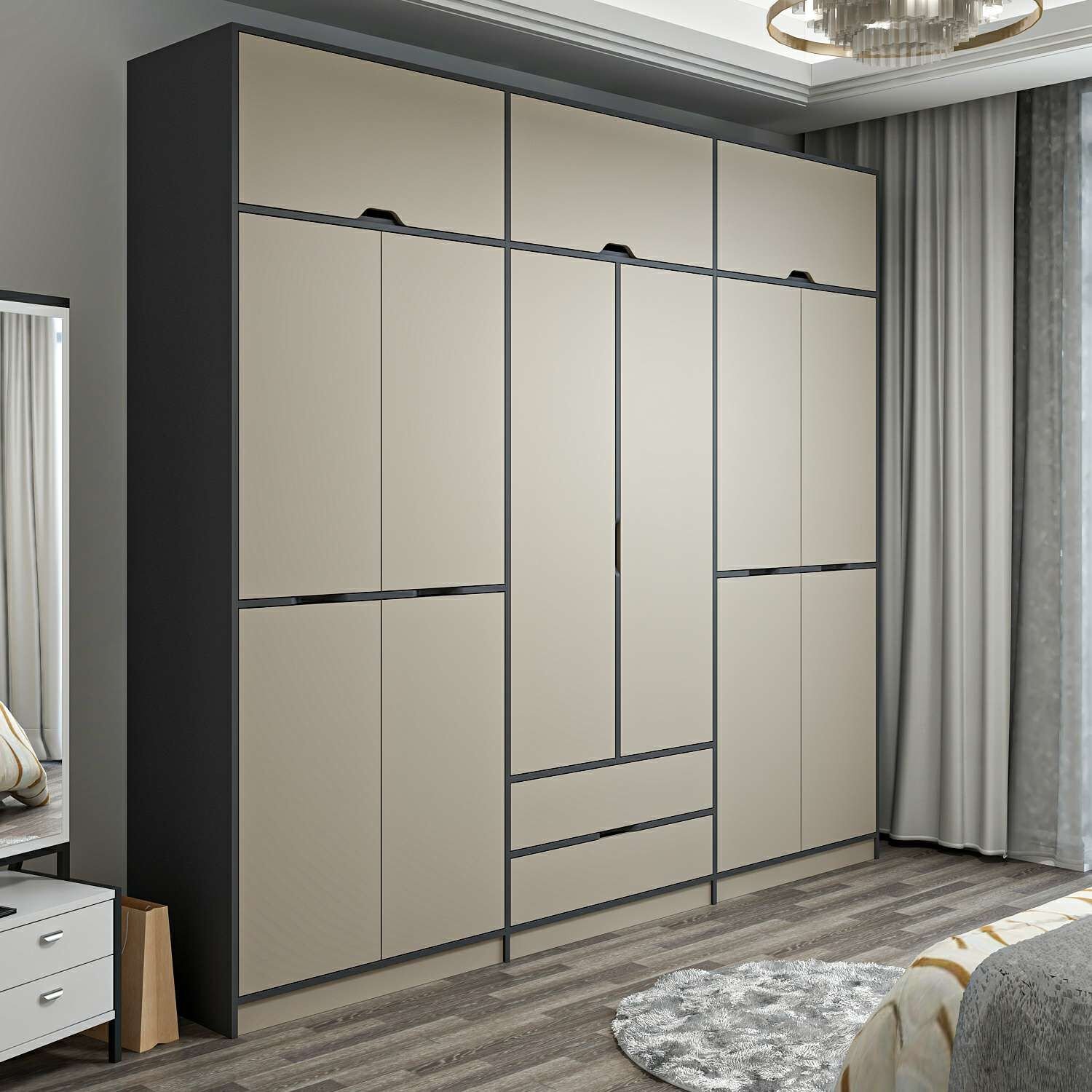 Elina 6 Kapaklı Dolap + Yüklük - Antrasit/Kumtaşı