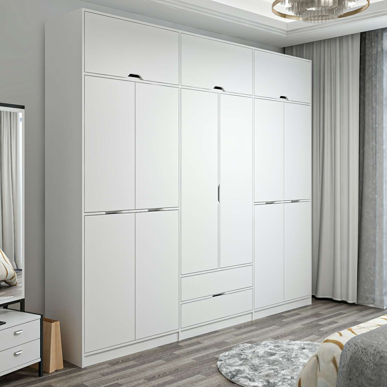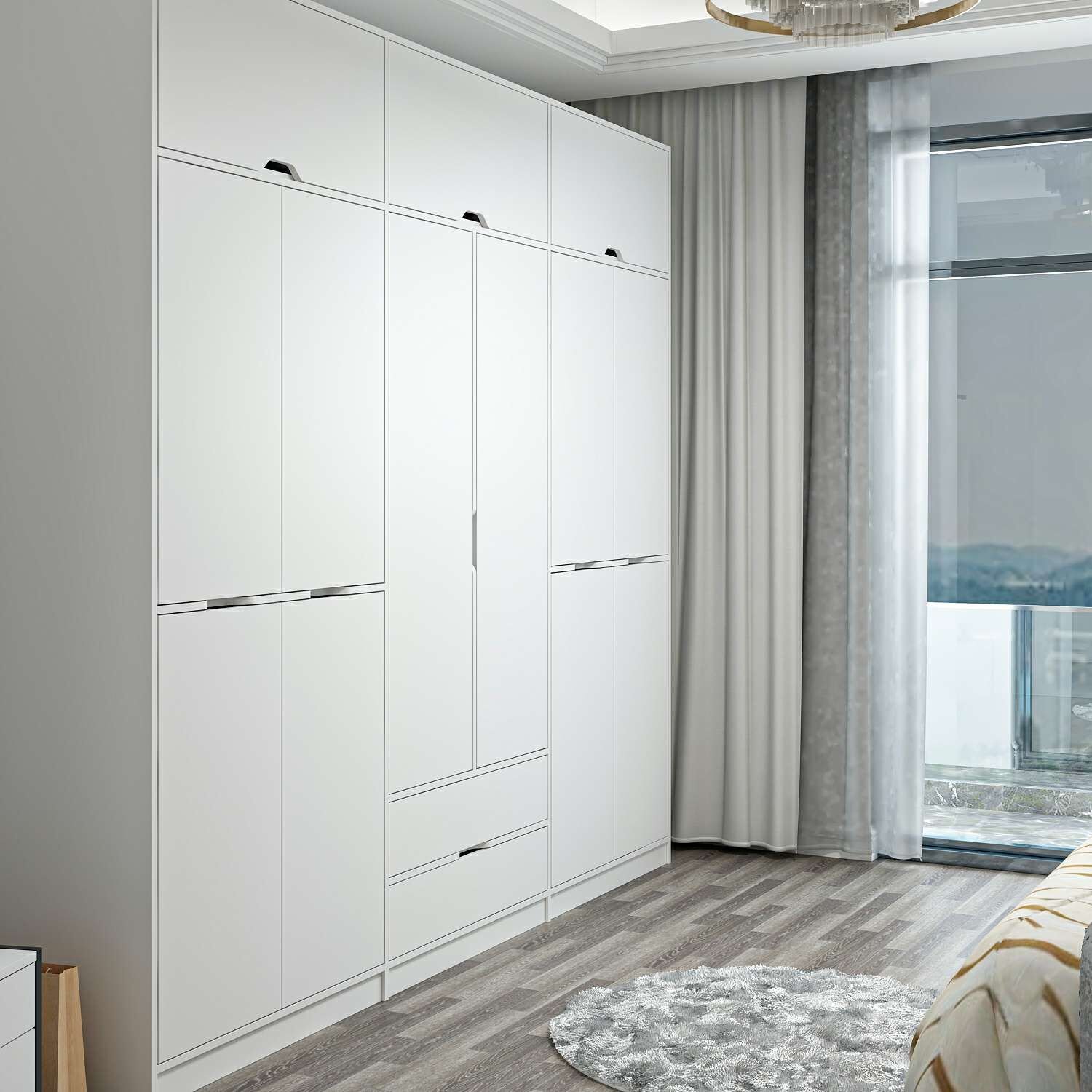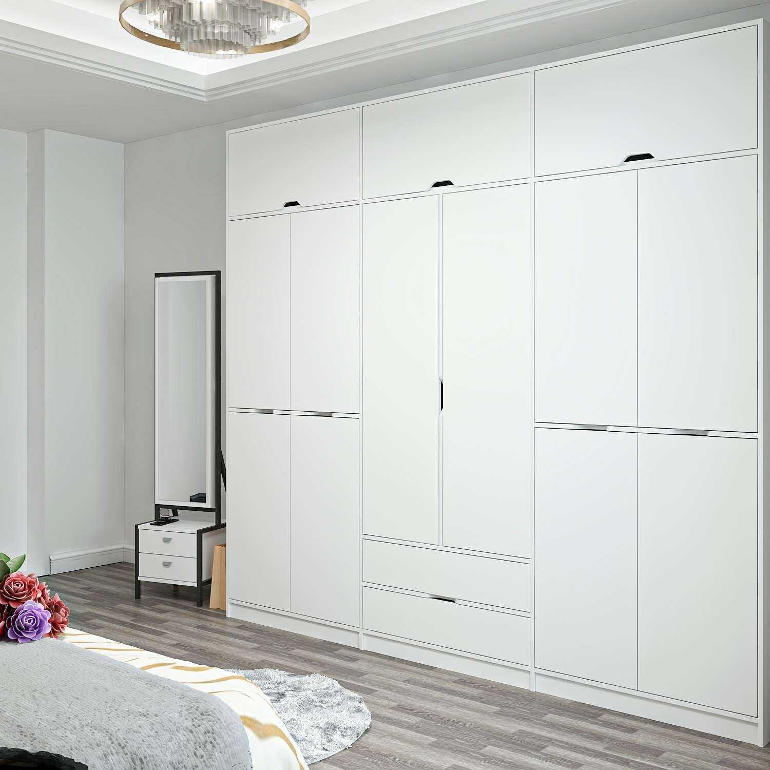 Elina 6 Kapaklı Dolap + Yüklük - Beyaz/Beyaz