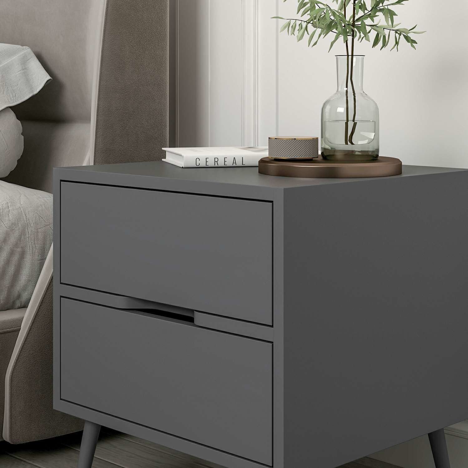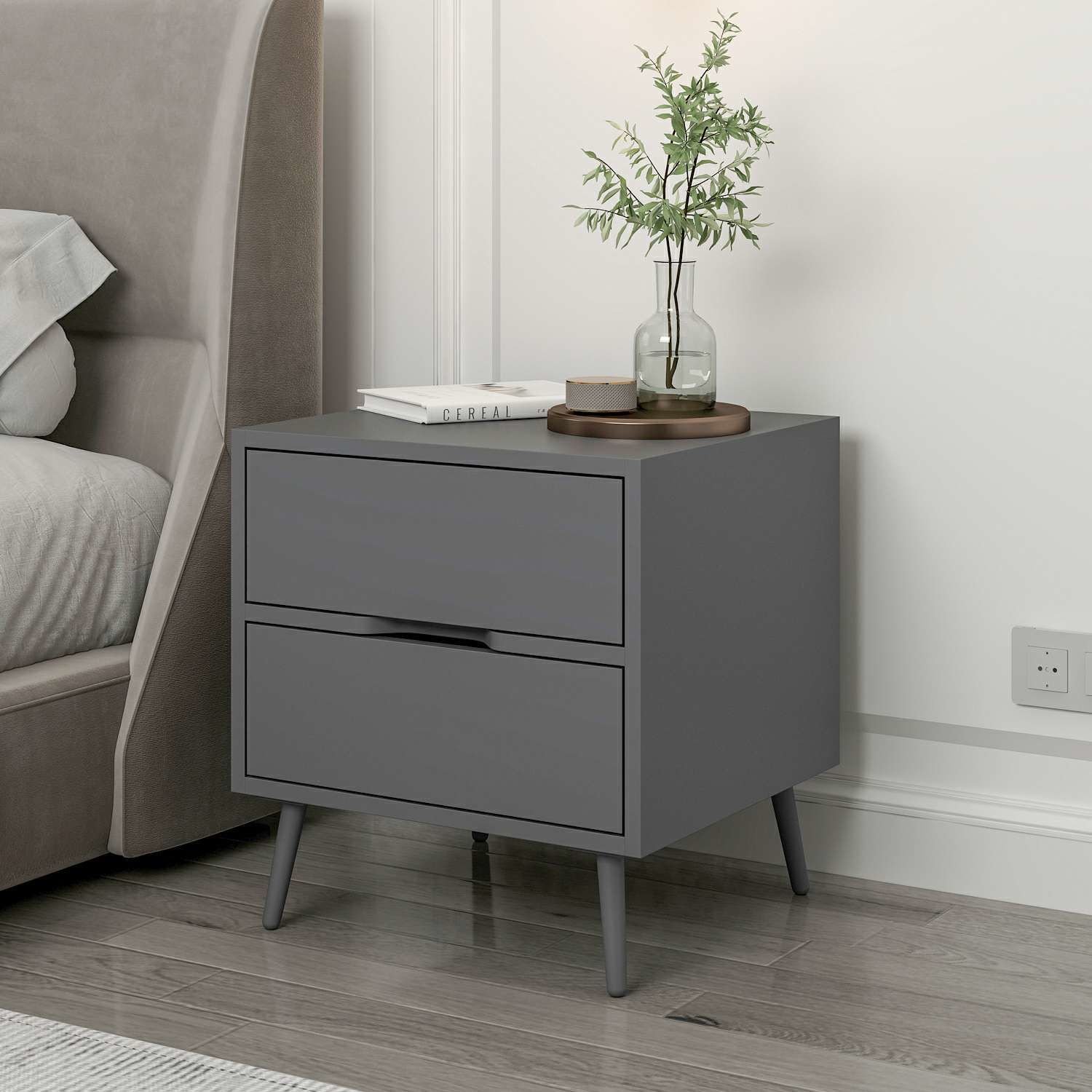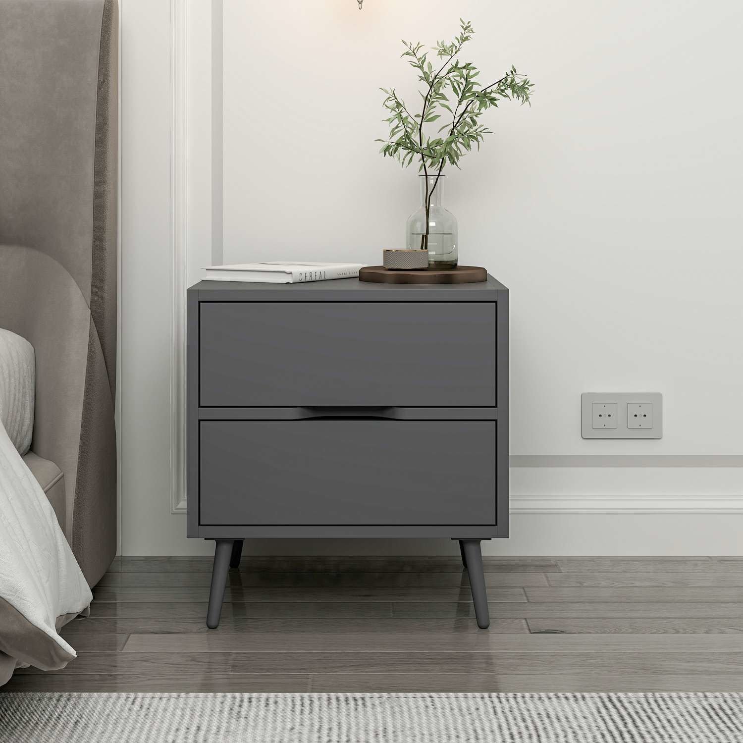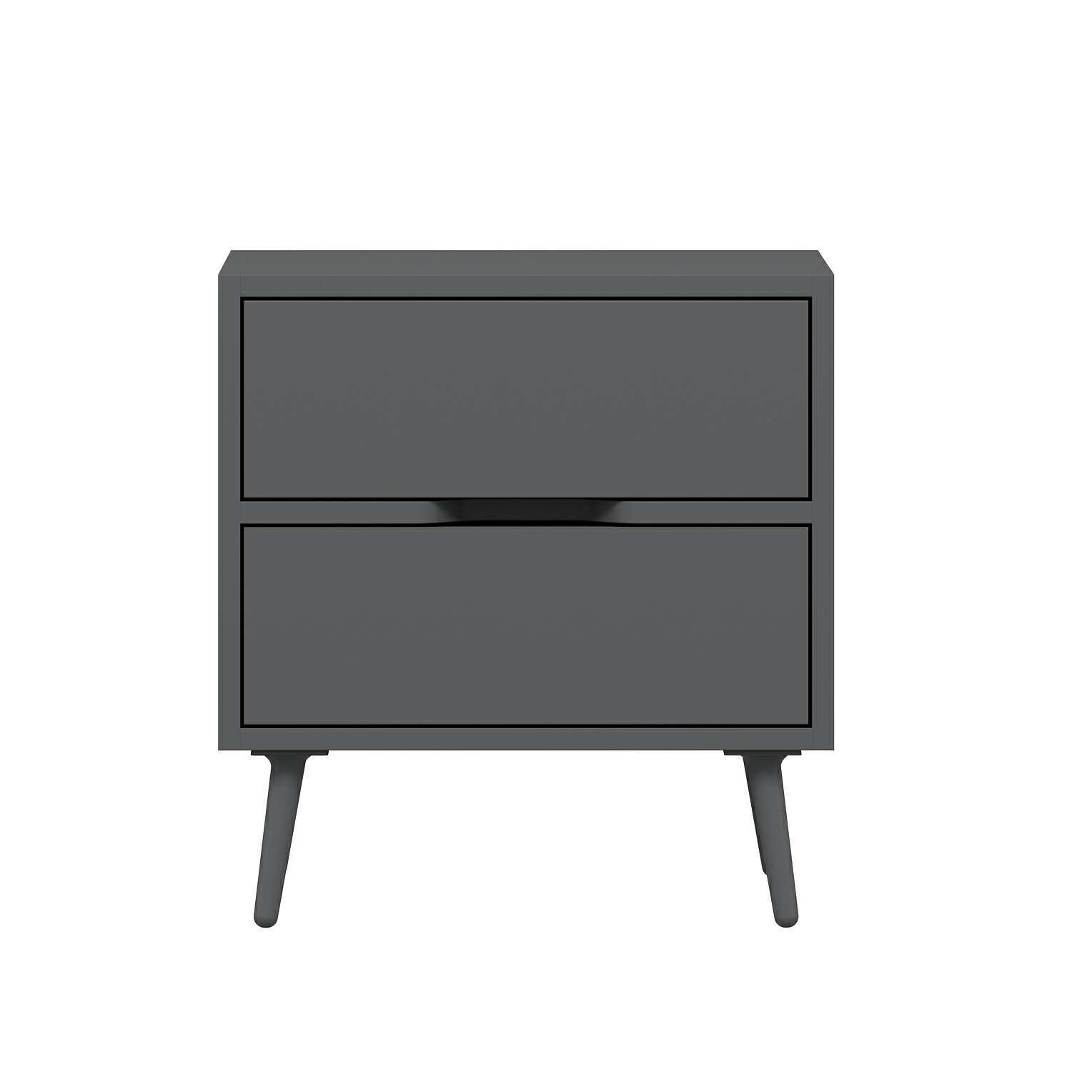 Elina Ayaklı 2 Çekmeceli Komodin - Antrasit/Antrasit