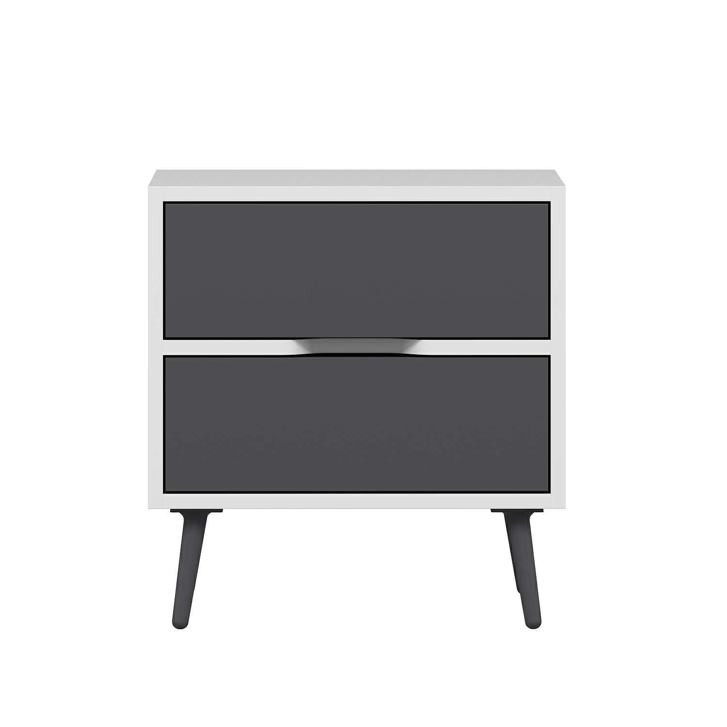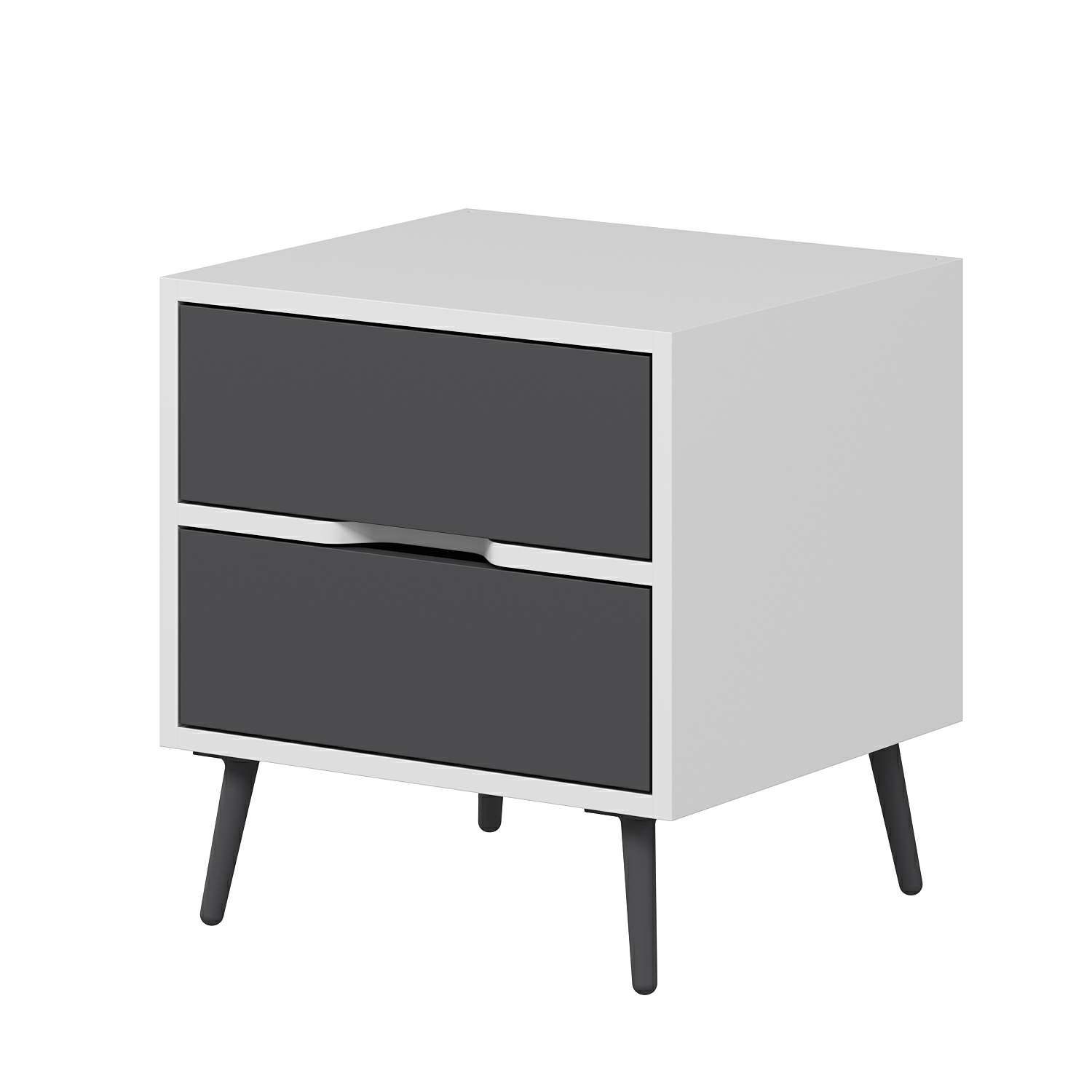 Elina Ayaklı 2 Çekmeceli Komodin - Beyaz/Antrasit
