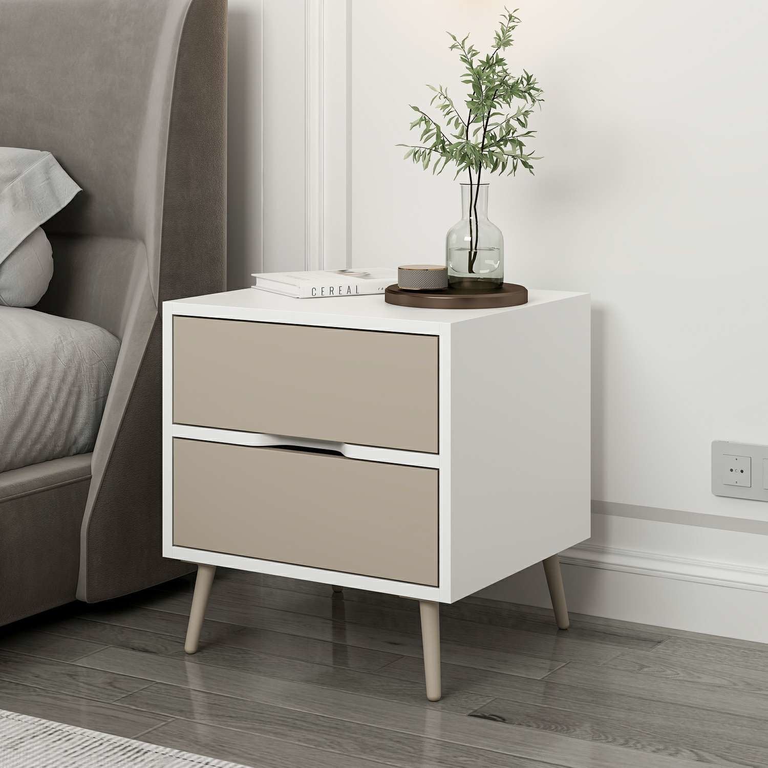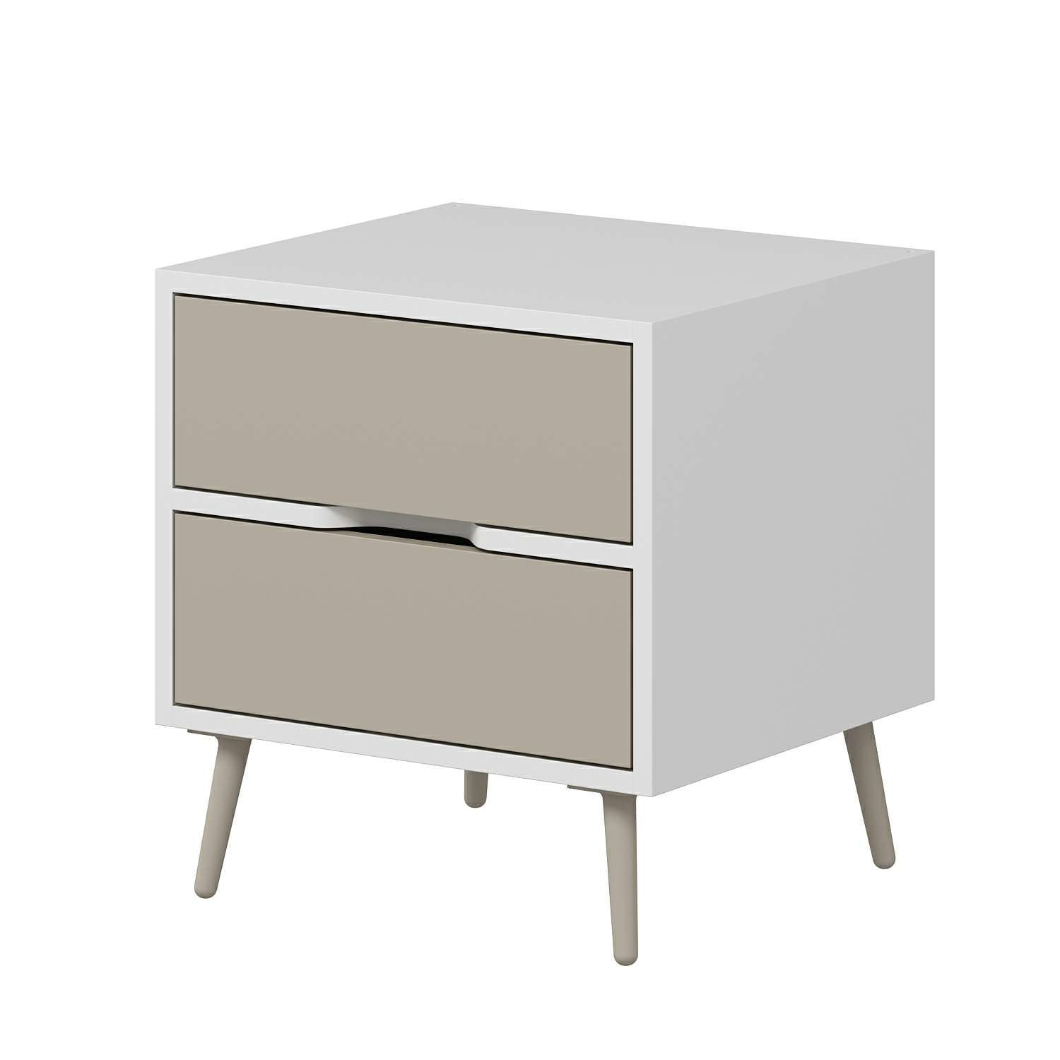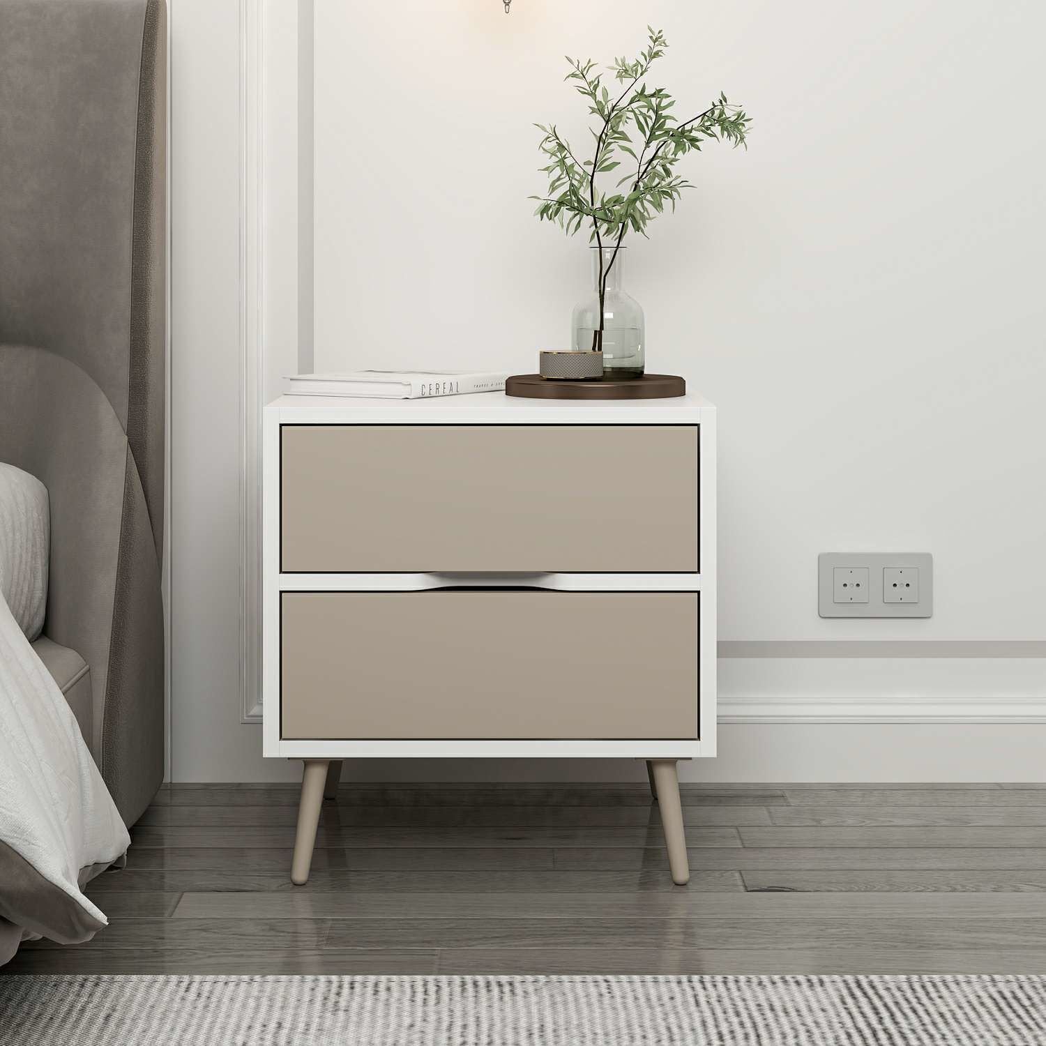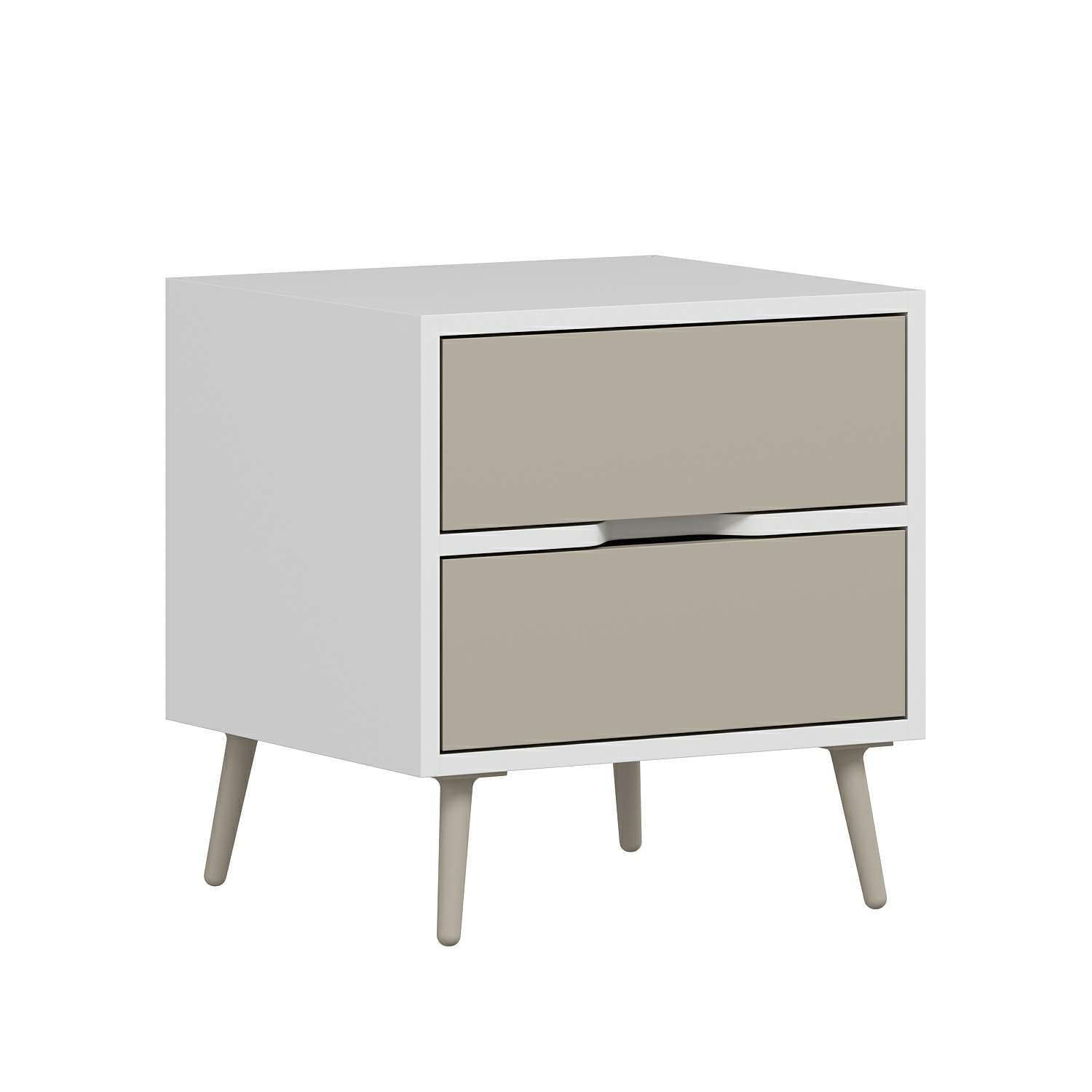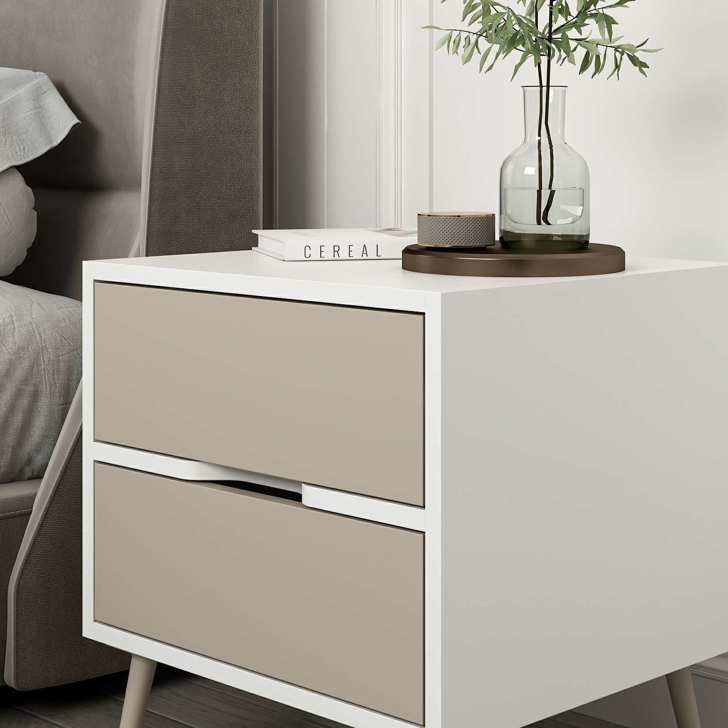 Elina Ayaklı 2 Çekmeceli Komodin - Beyaz/Kumtaşı