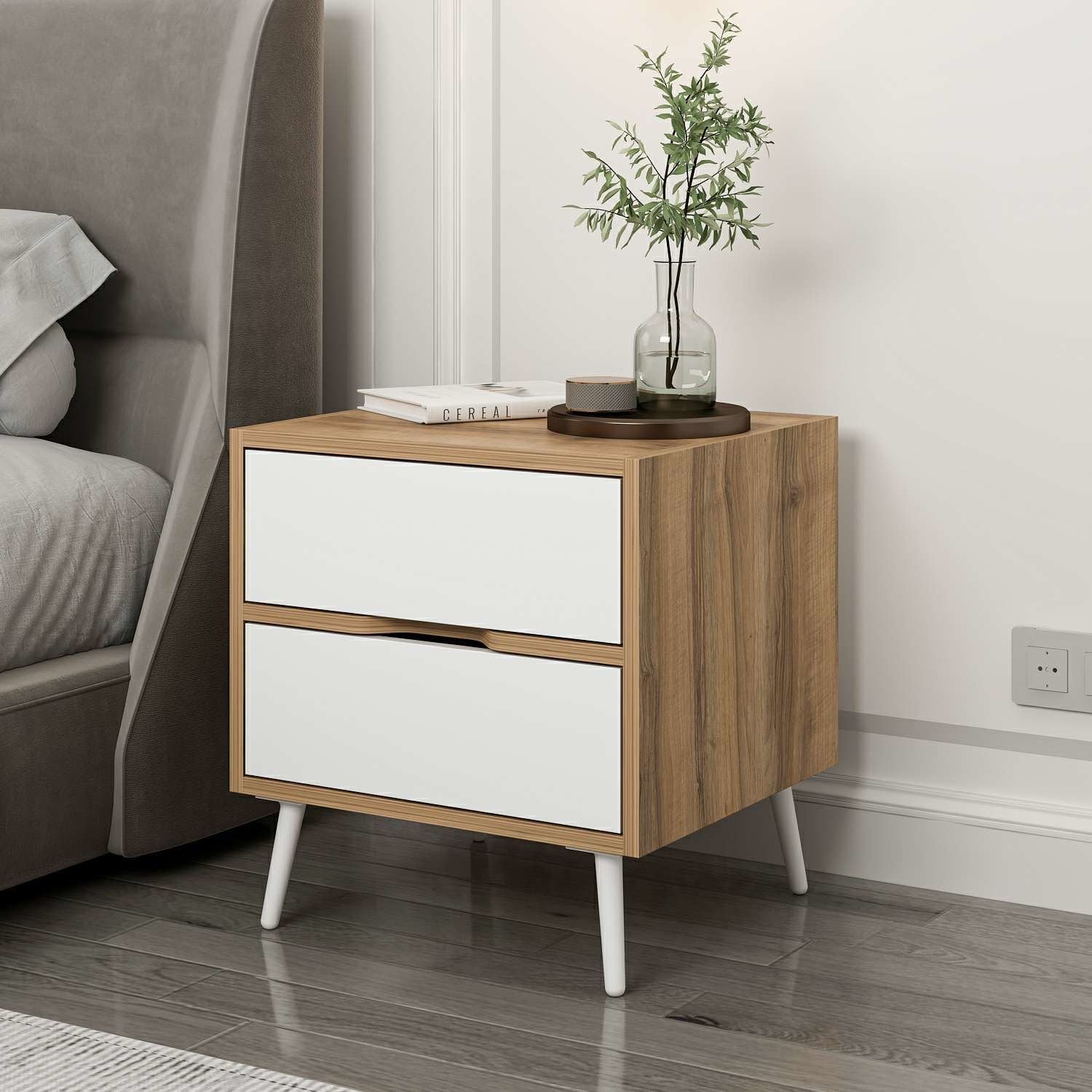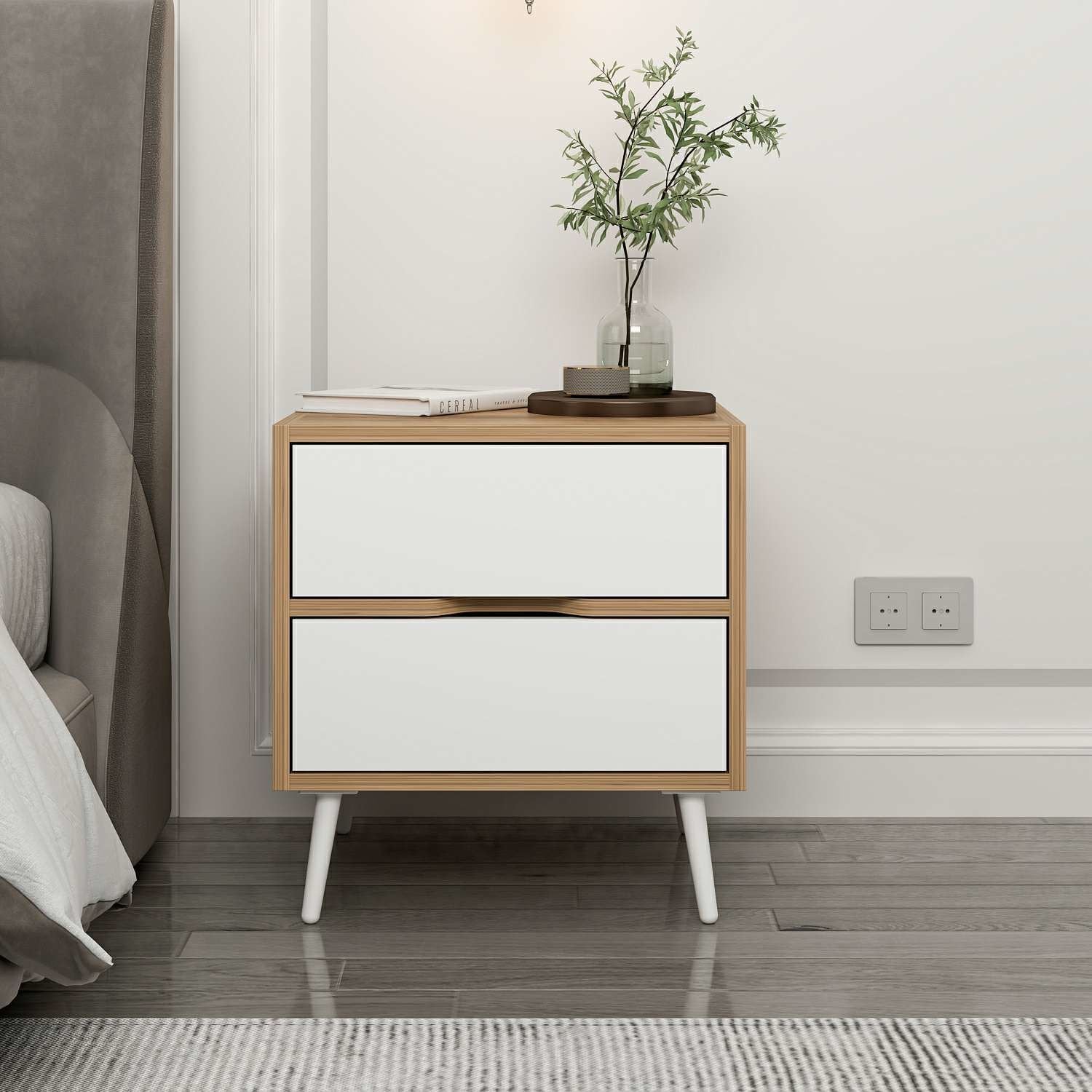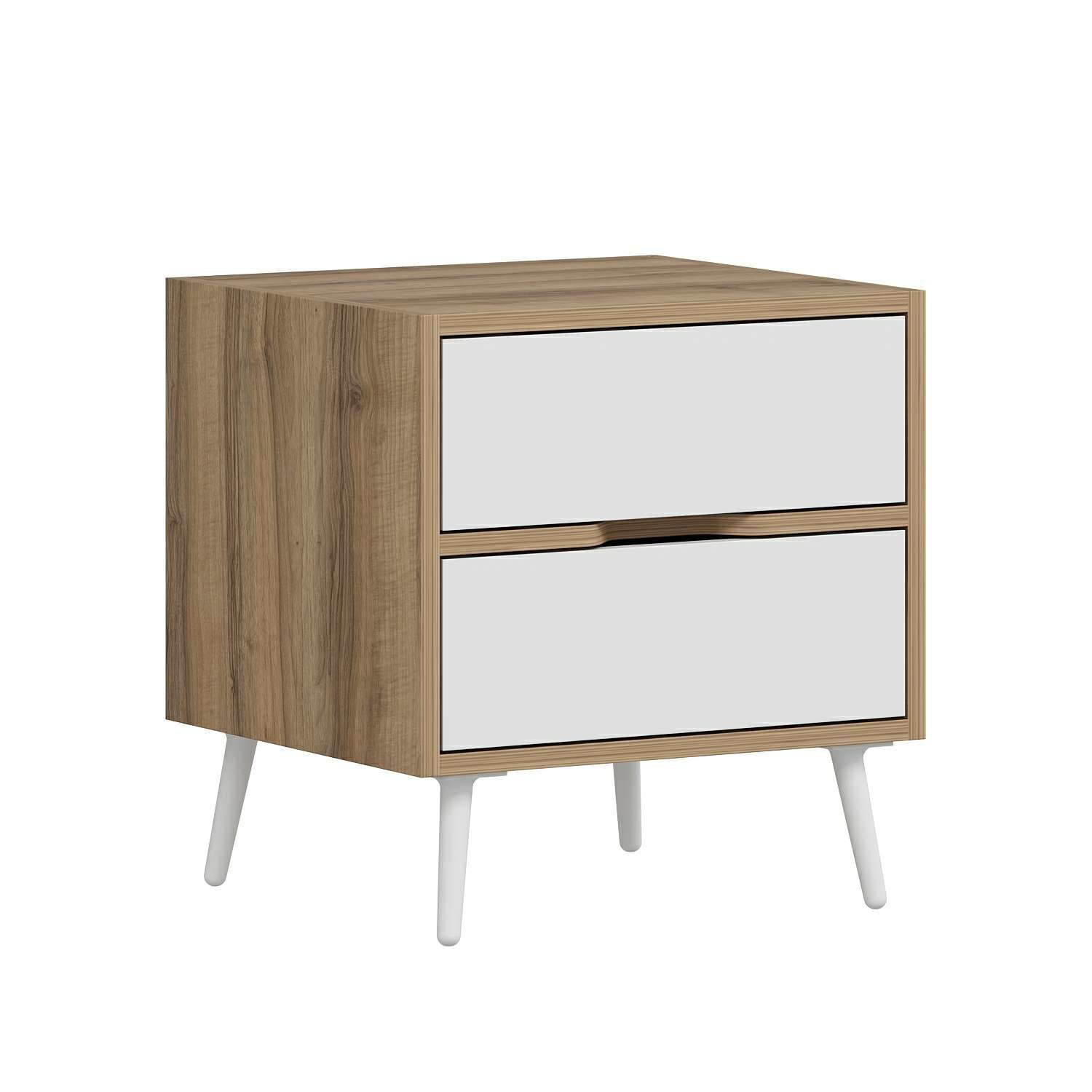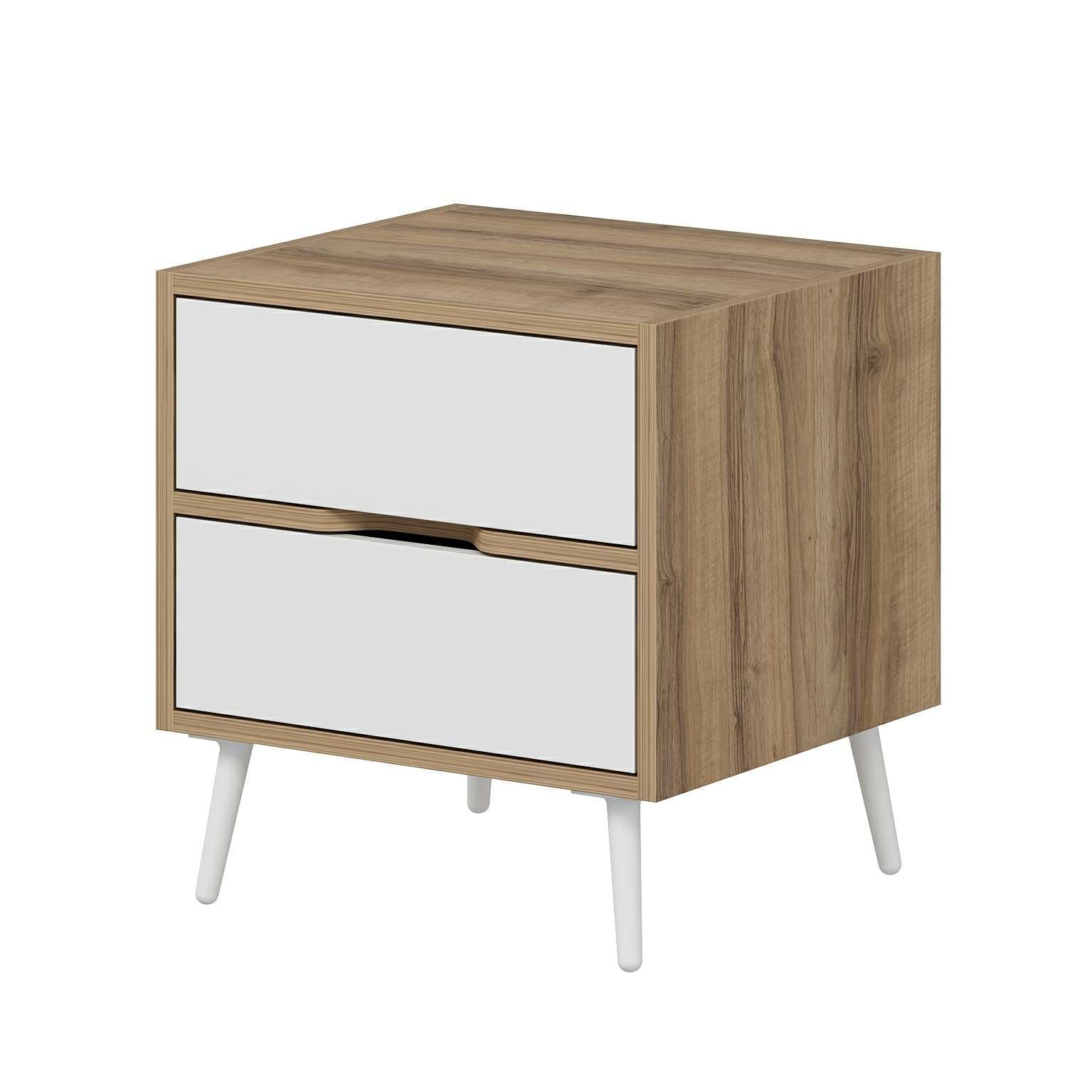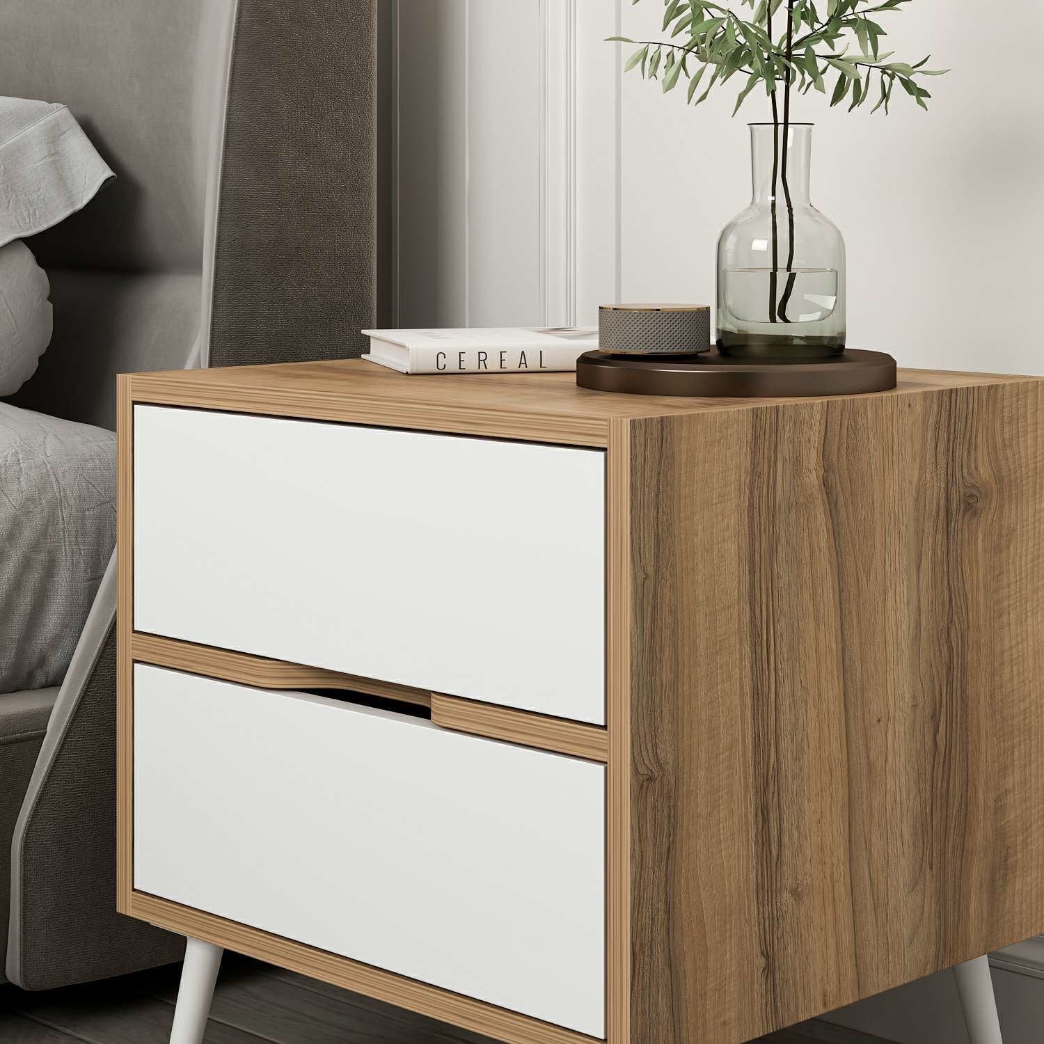 Elina Ayaklı 2 Çekmeceli Komodin - Dore/Beyaz