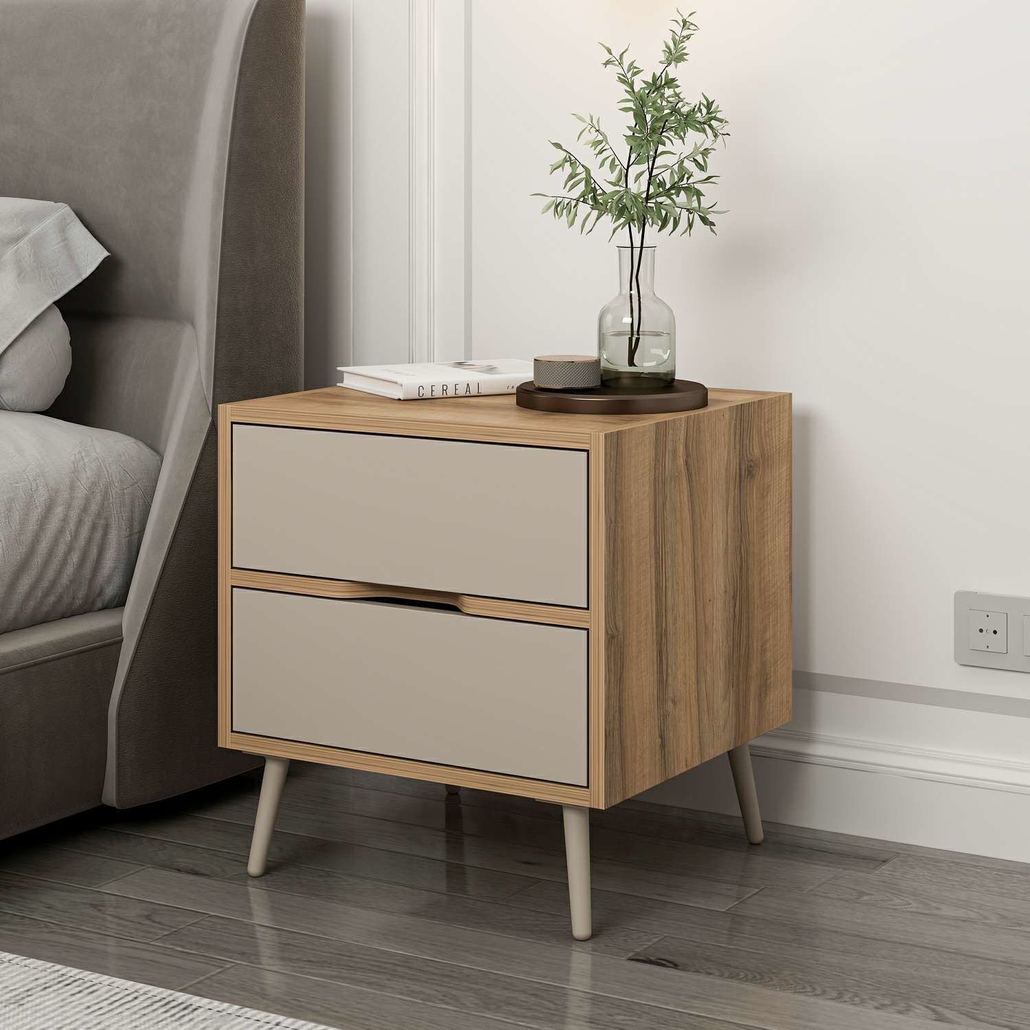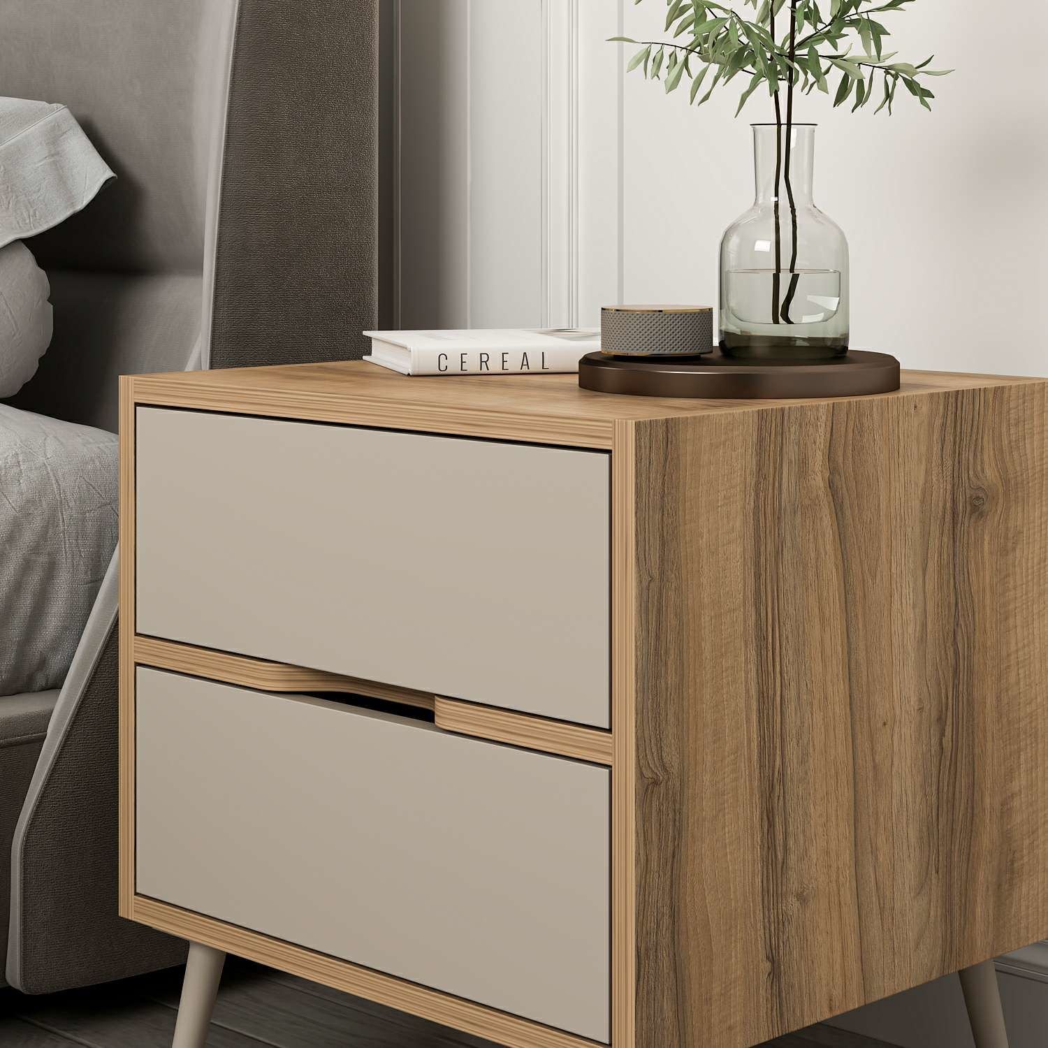 Elina Ayaklı 2 Çekmeceli Komodin - Dore/Kumtaşı