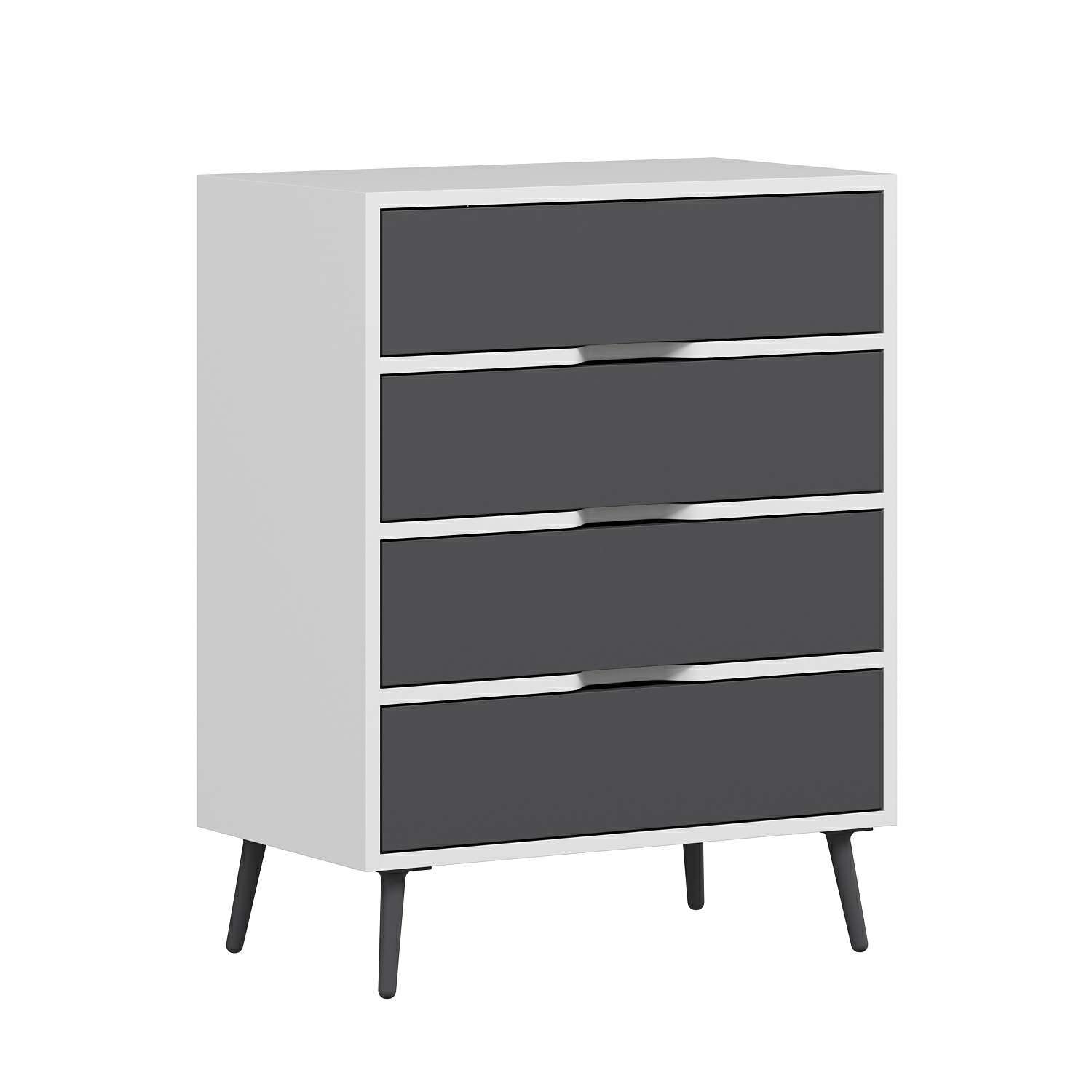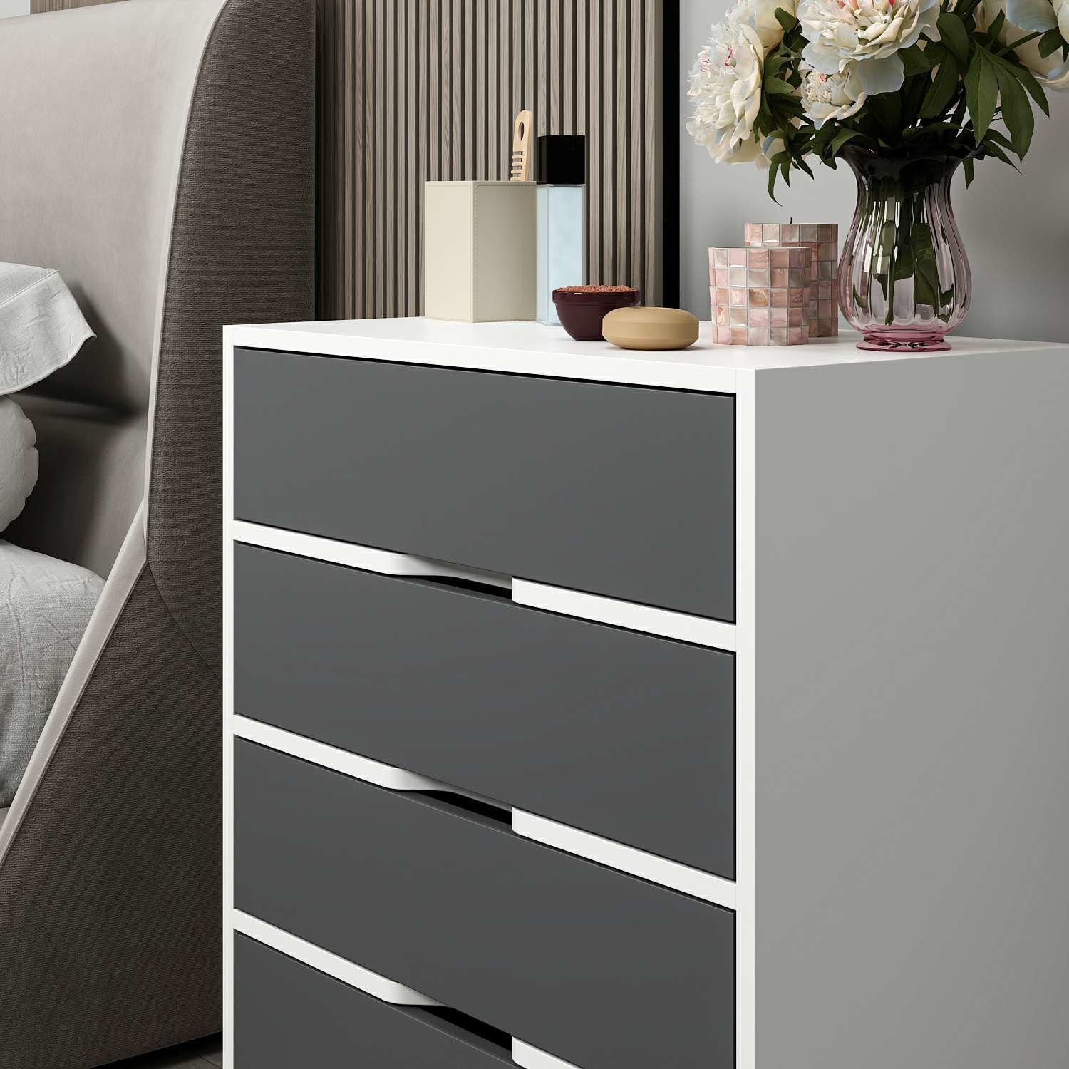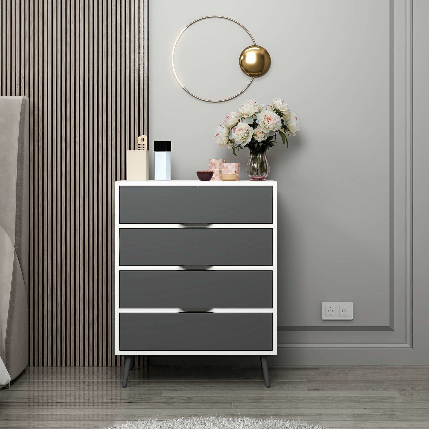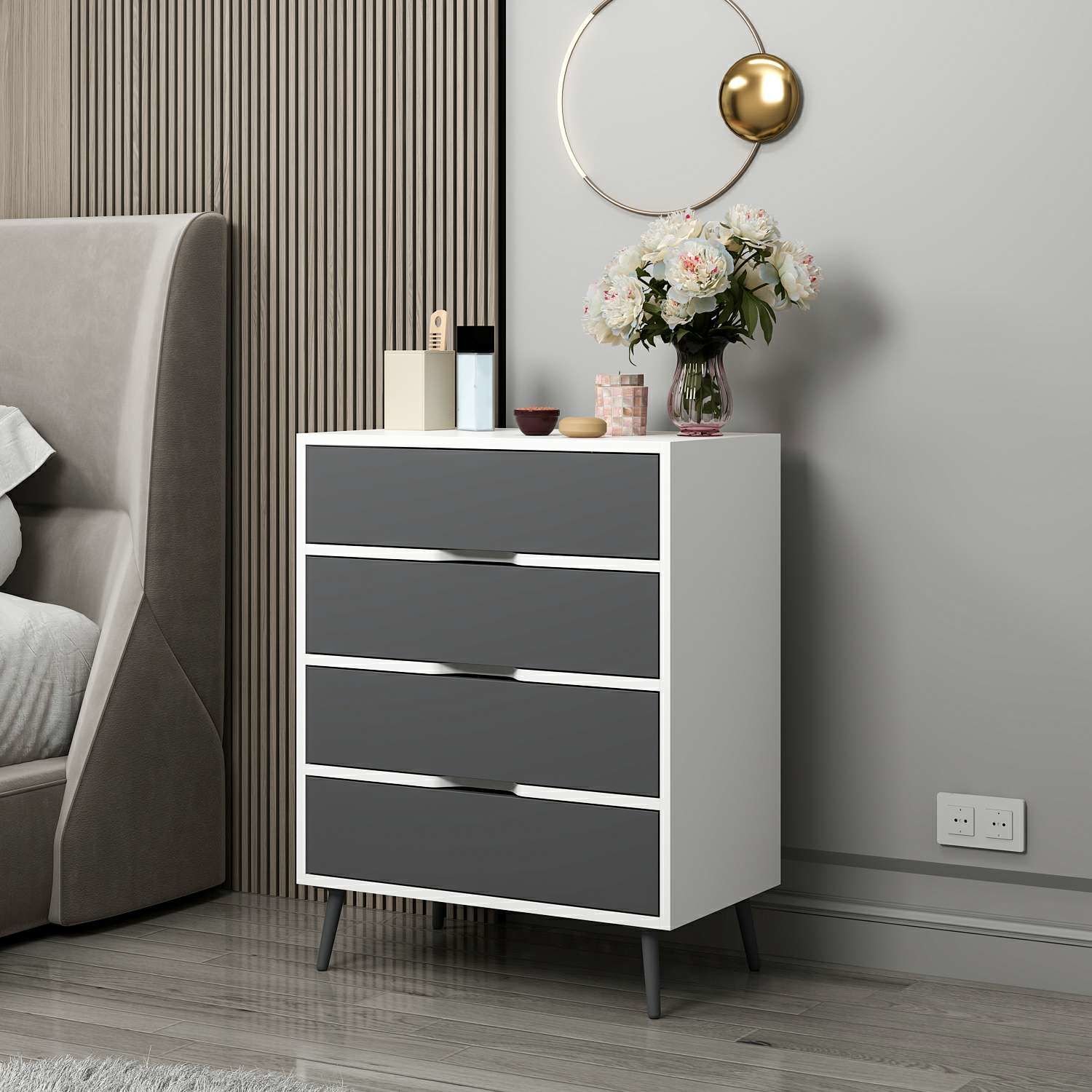 Elina Ayaklı 4 Çekmeceli Şifonyer - Beyaz/Antrasit