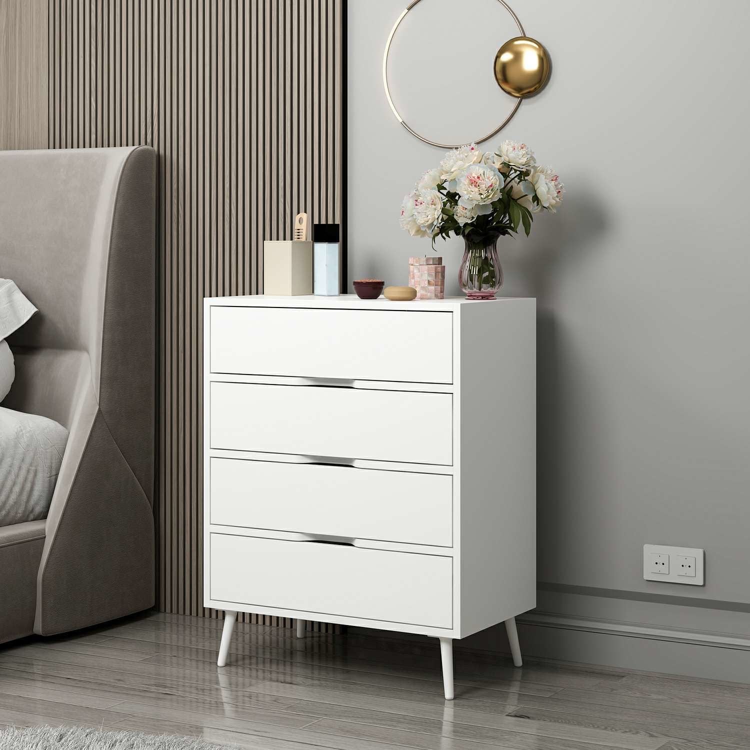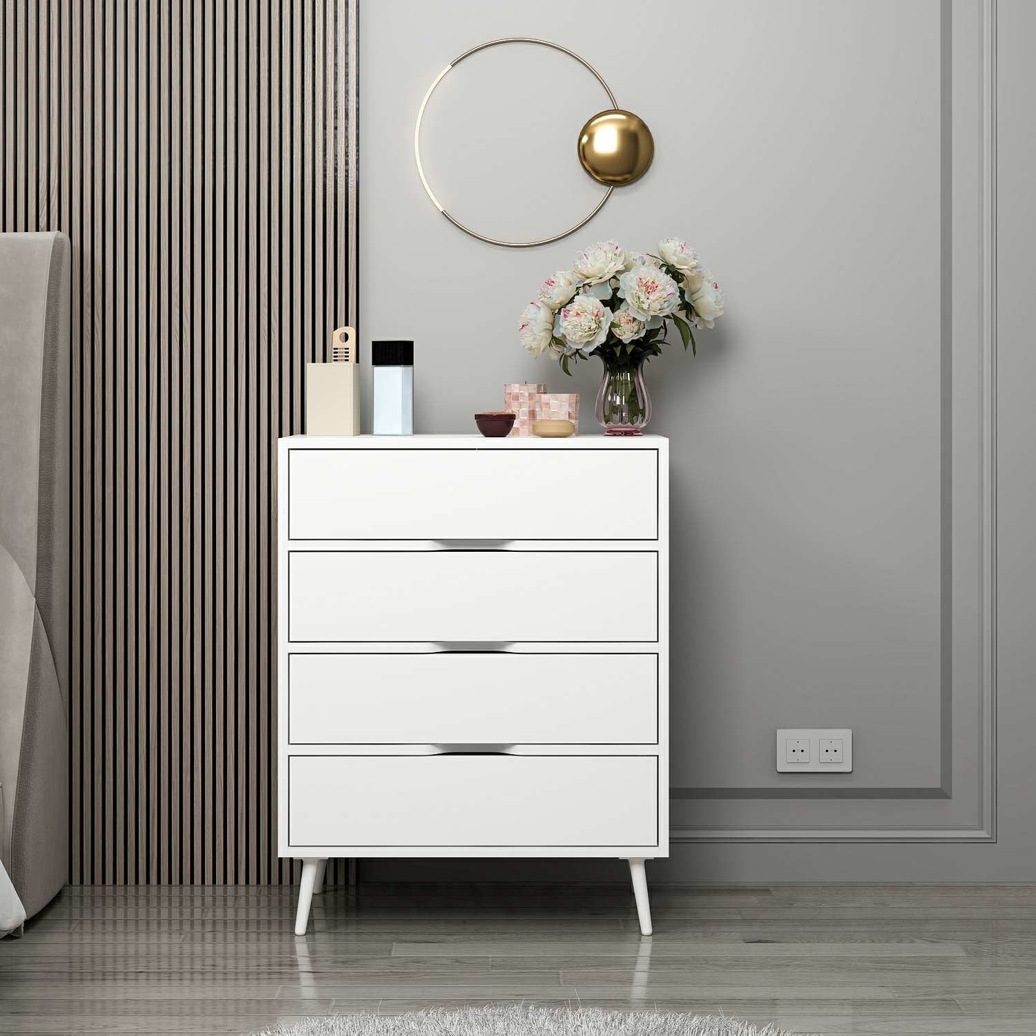 Elina Ayaklı 4 Çekmeceli Şifonyer - Beyaz/Beyaz