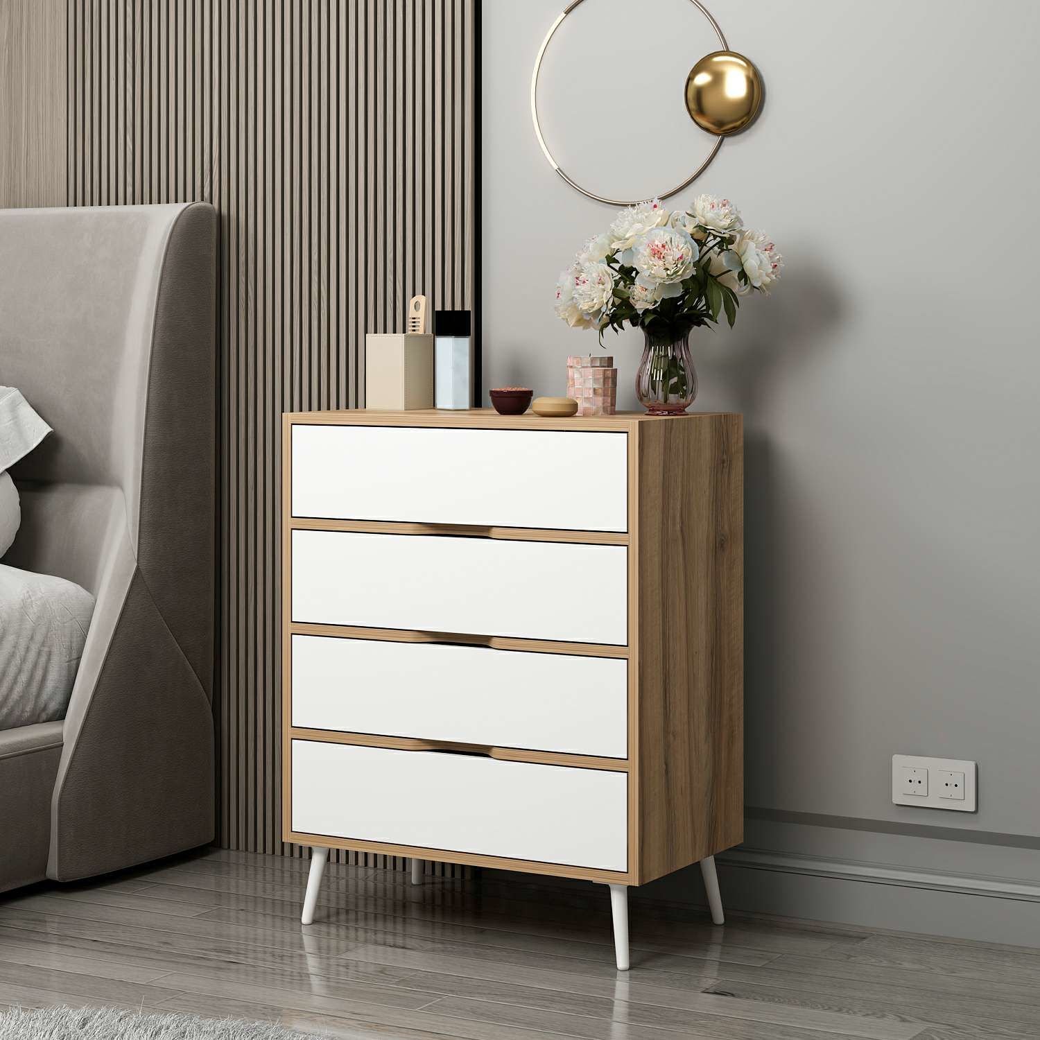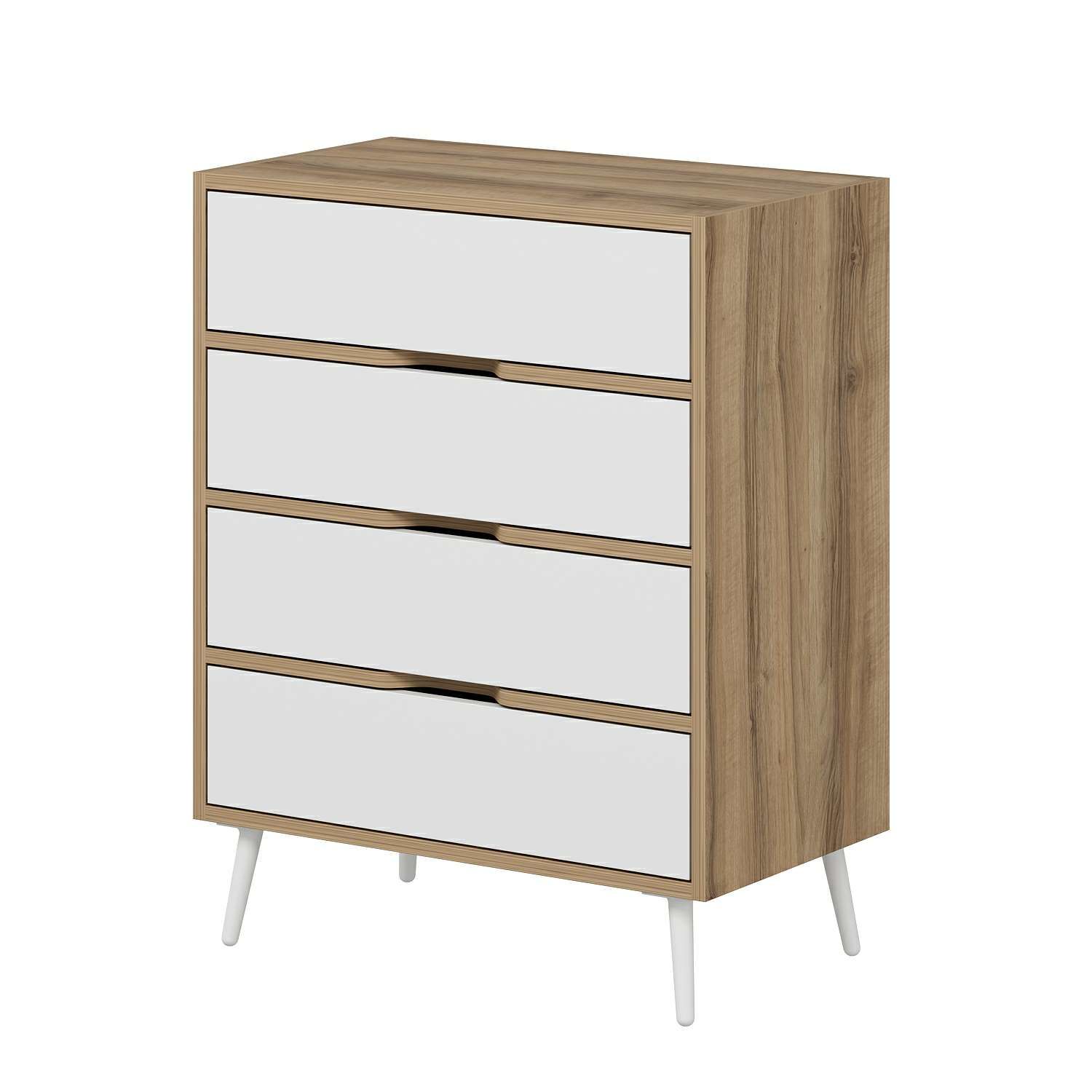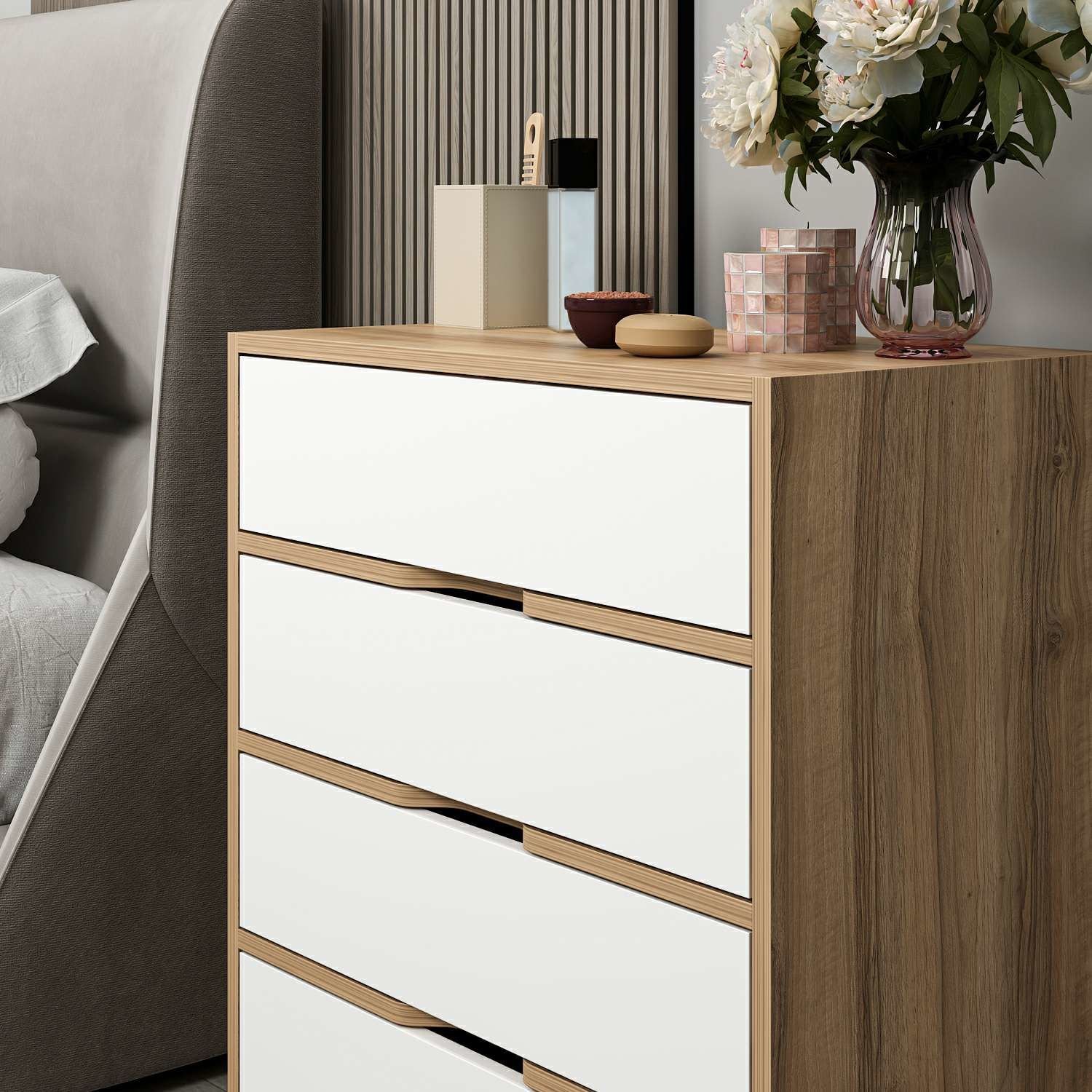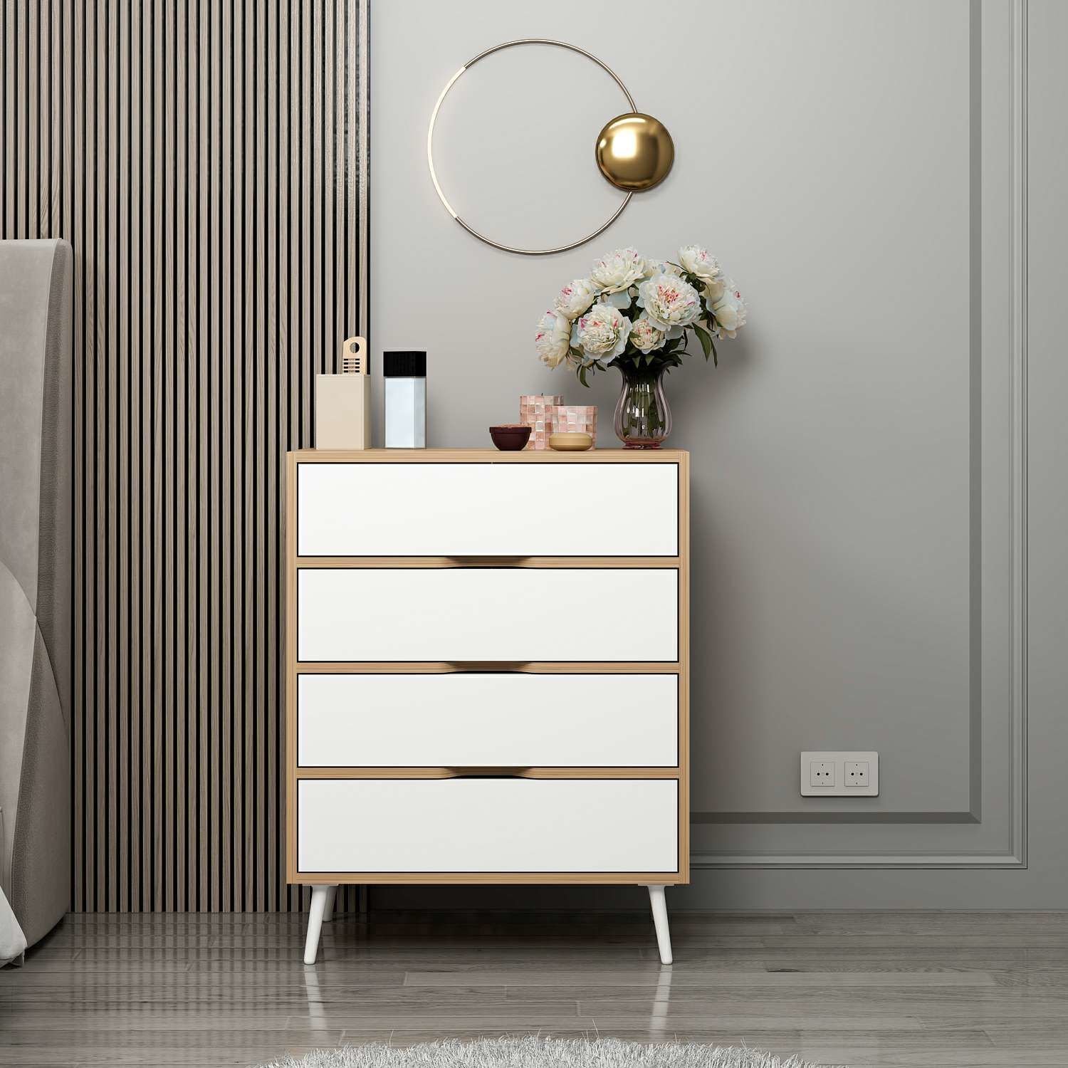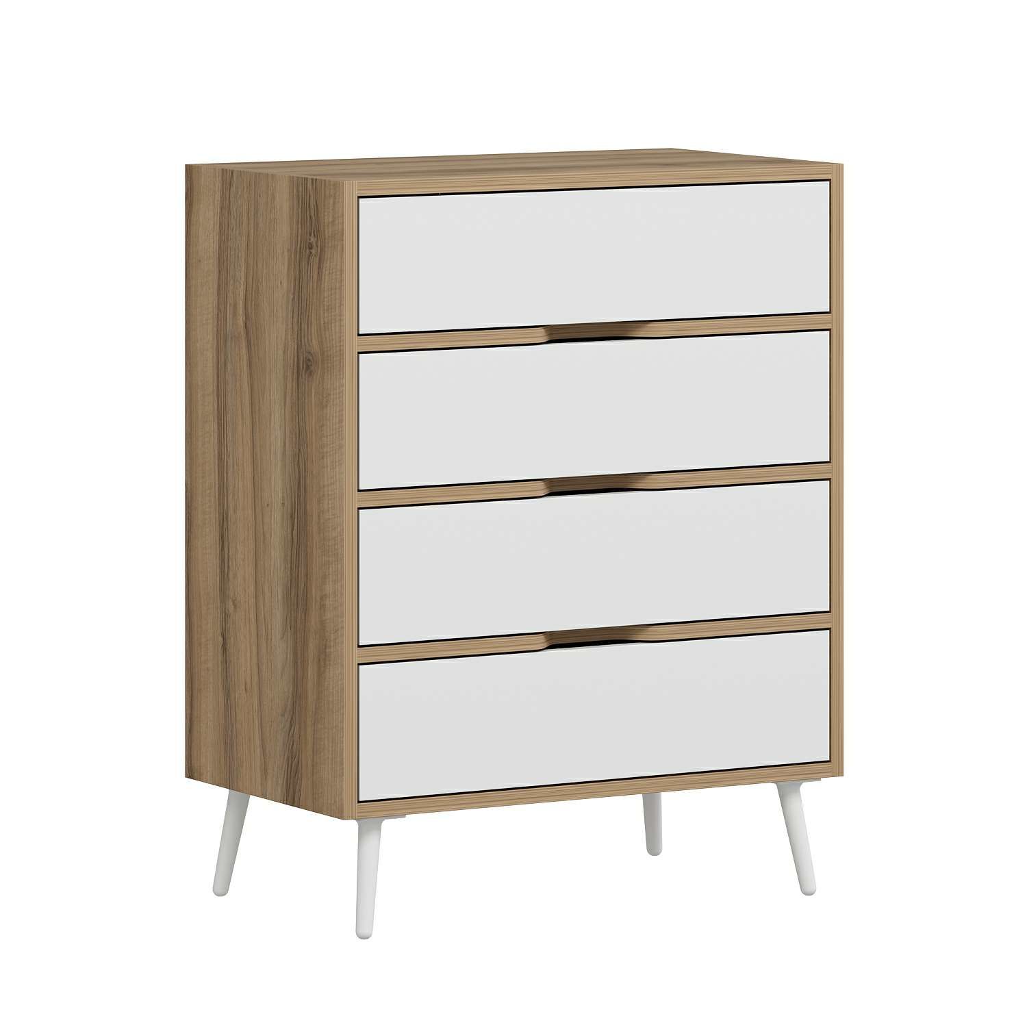Elina Ayaklı 4 Çekmeceli Şifonyer - Dore/Beyaz