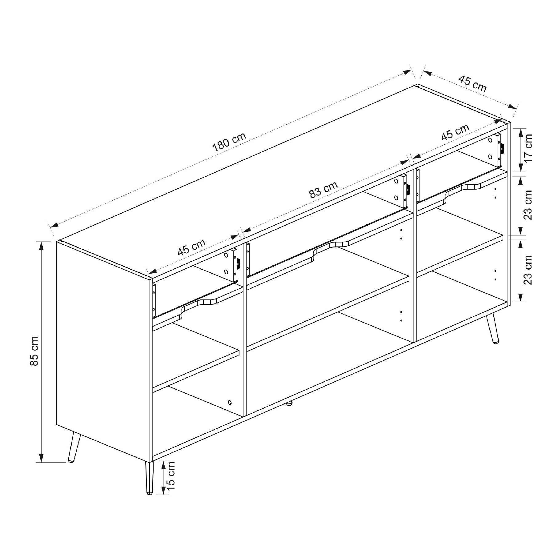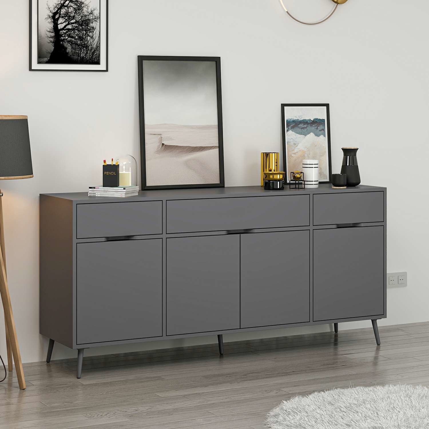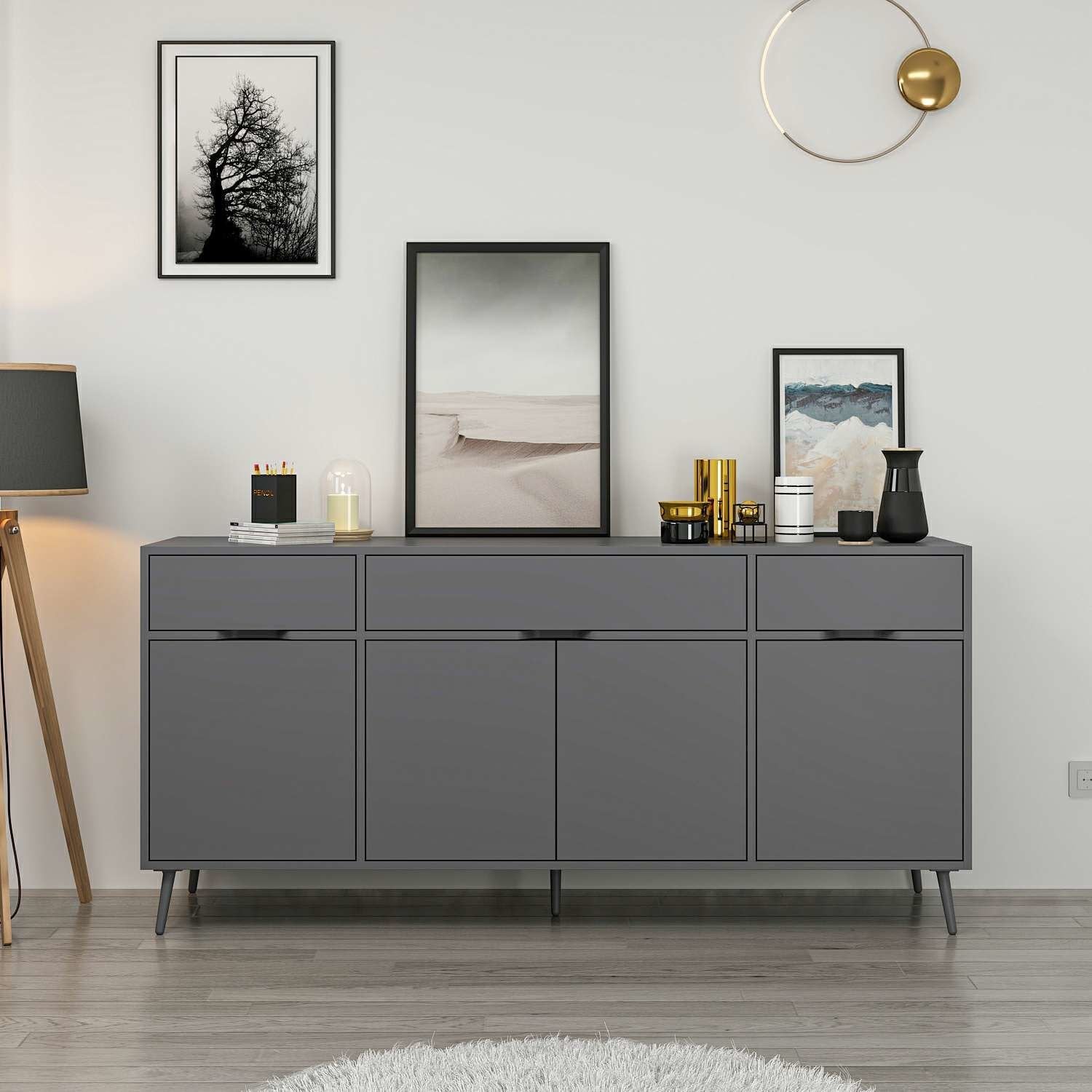 Elina Ayaklı Konsol Antrasit, yüksek kaliteli melamin kaplı 18 mm yonga levhadan üretilmektedir.