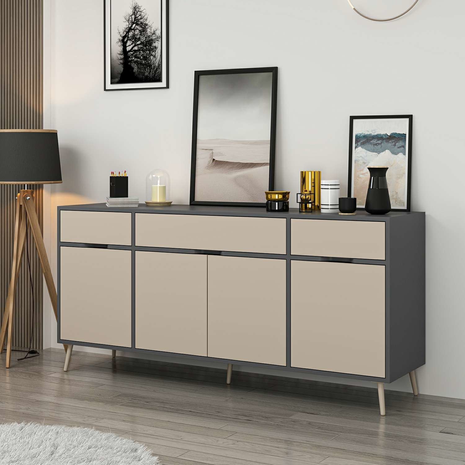 Elina Ayaklı Konsol Antrasit/Kumtaşı, yüksek kaliteli melamin kaplı 18 mm yonga levhadan üretilmektedir.