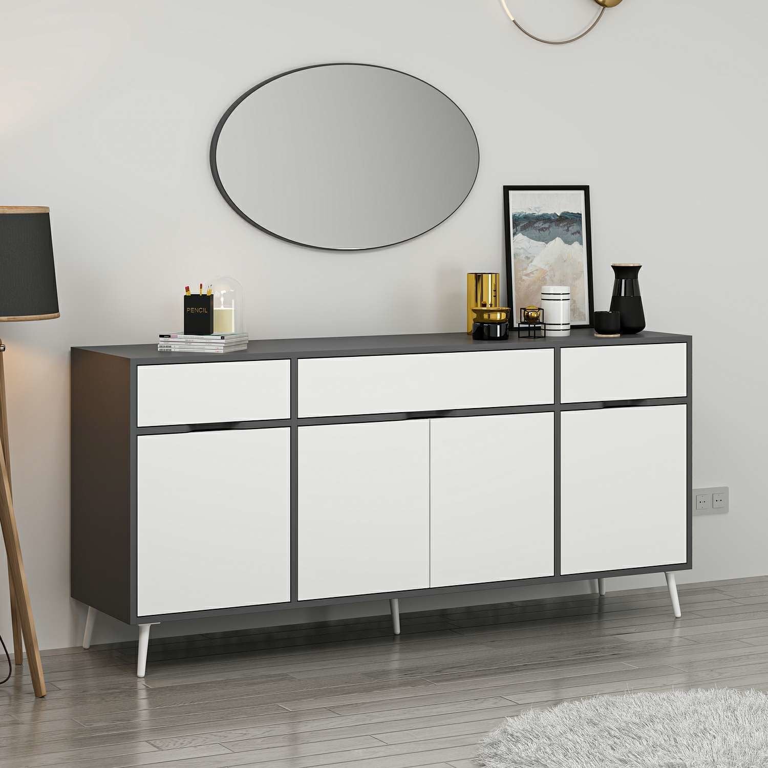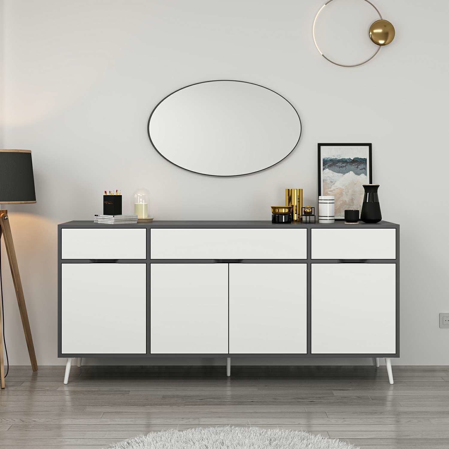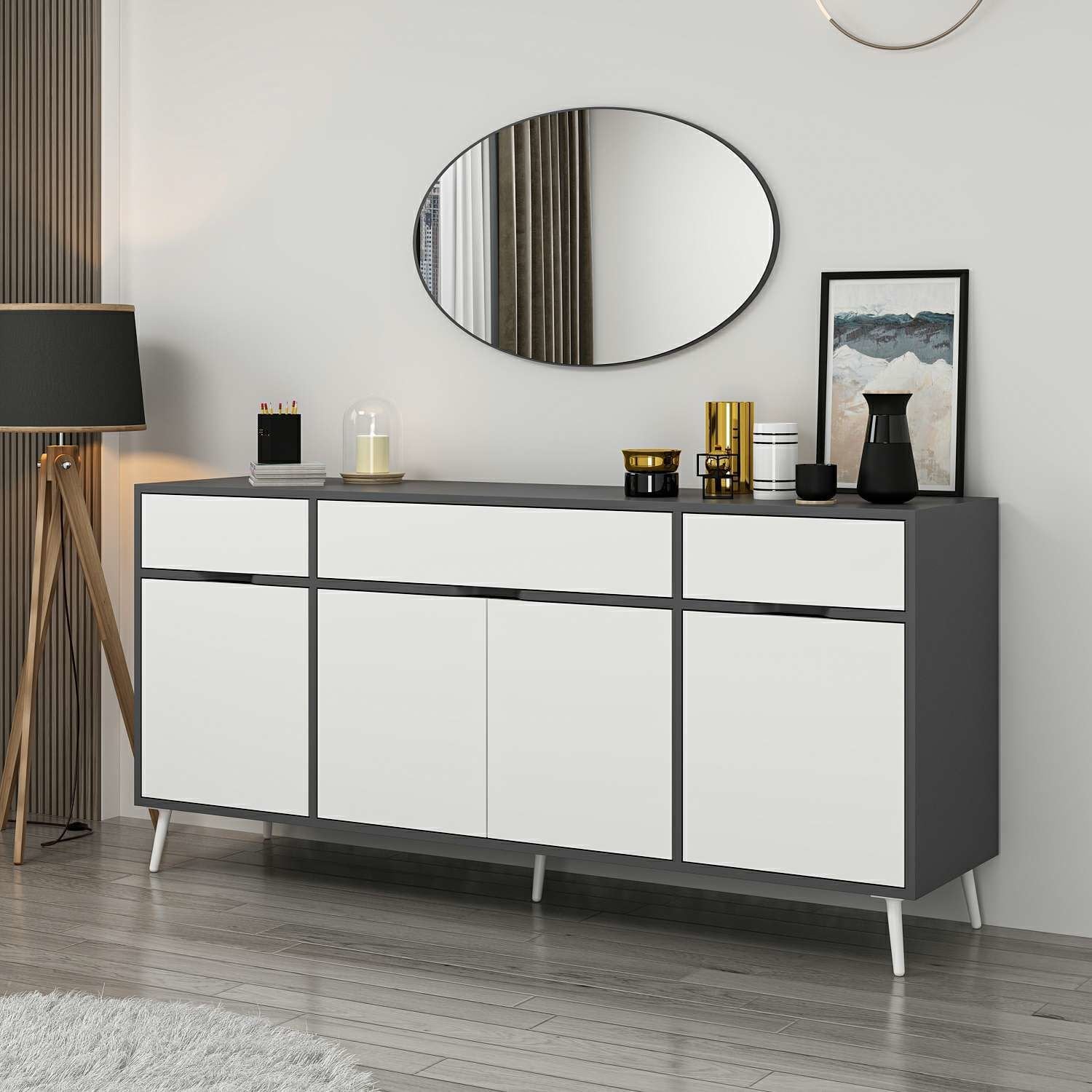 Elina Ayaklı Konsol Aynalı Antrasit/Beyaz, yüksek kaliteli melamin kaplı 18 mm yonga levhadan üretilmektedir.