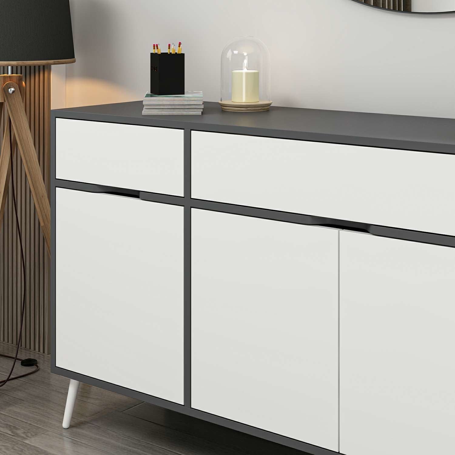 Minimalist ve şık tasarımıyla dikkat çeken Elina Ayaklı Konsol, antrasit gövde ile beyaz detayların kontrastını başarılı şekilde yansıtıyor. 15 cm’lik yerden yüksek ayakları sayesinde, hem mekanınıza ferahlık katarken hem de temizlik işlemlerini kolaylaştırıyor.