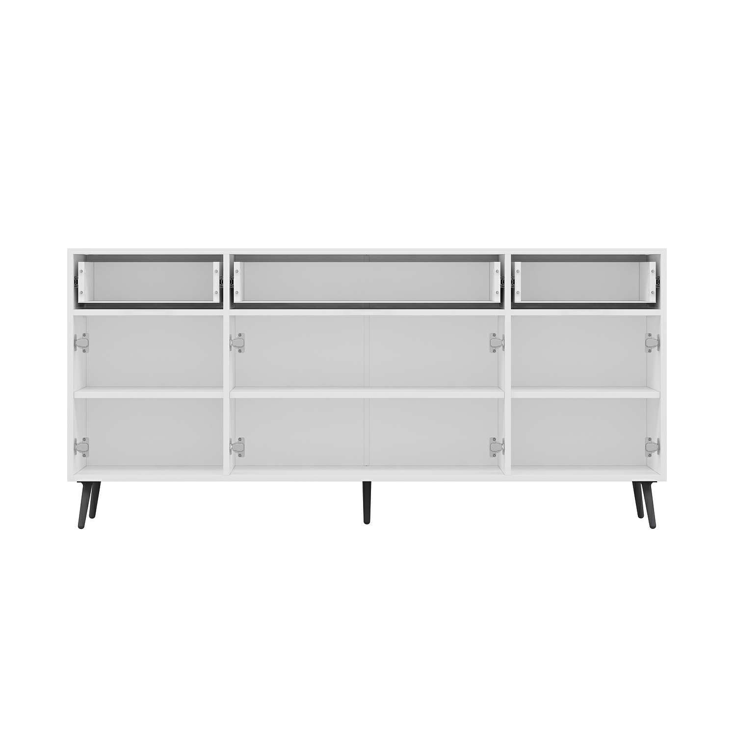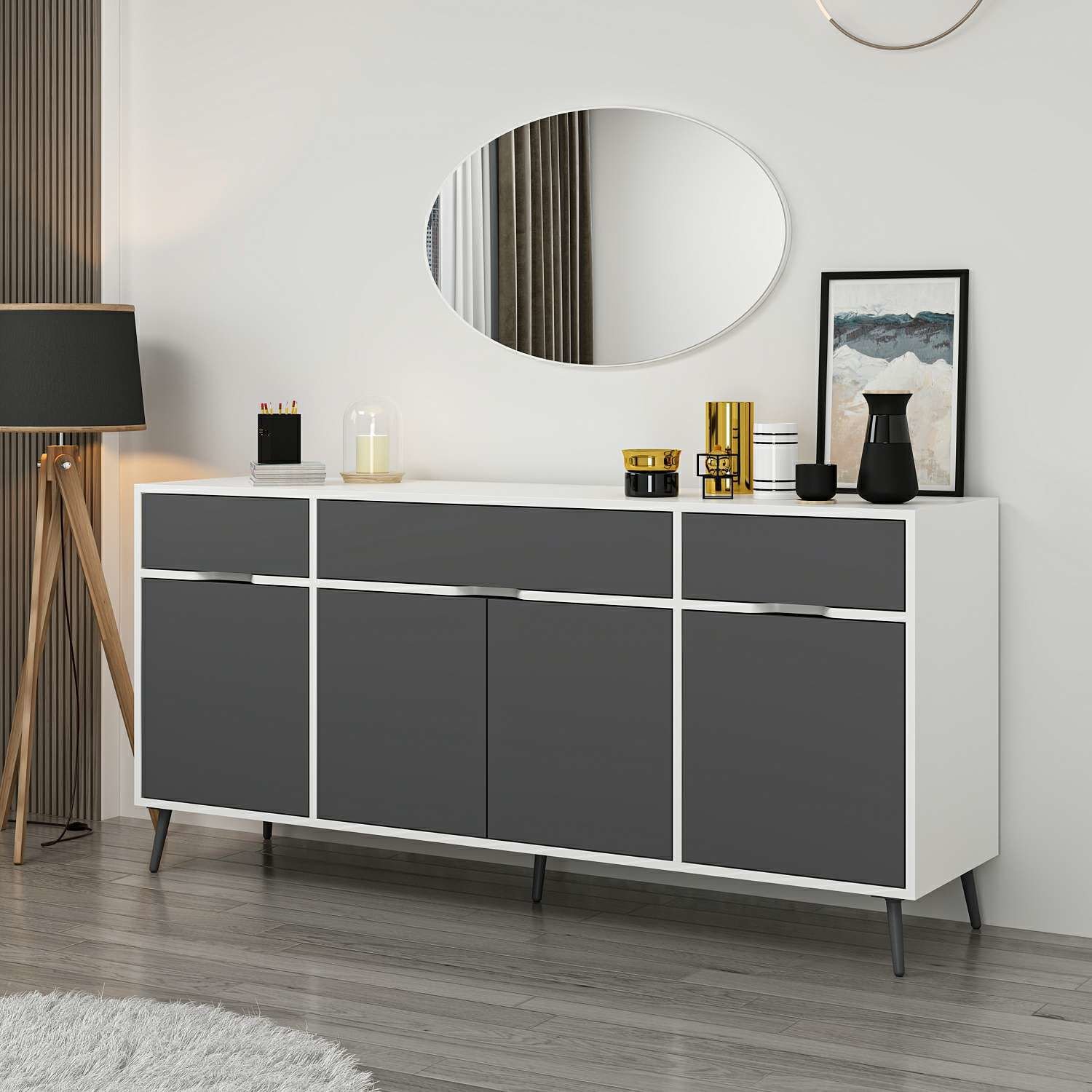 Elina Ayaklı Konsol Beyaz/Antrasit, yüksek kaliteli melamin kaplı 18 mm yonga levhadan üretilmektedir.