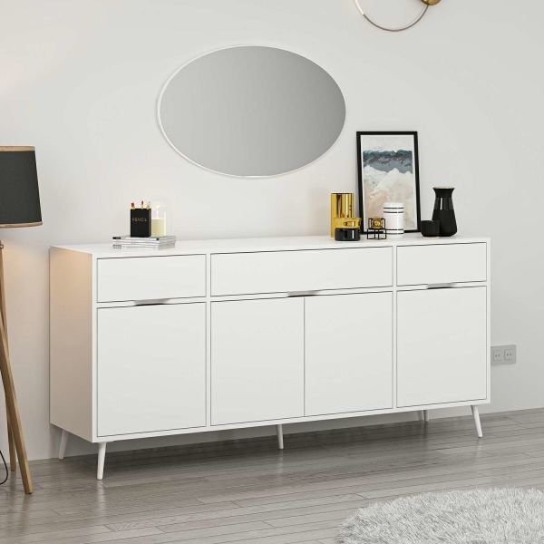 Modern ve zarif tasarımıyla dikkat çeken Elina Ayaklı Konsol Beyaz, tamamen beyaz renk seçeneği ile temiz ve ferah bir görünüm sunar. 15 cm yerden yüksek ayakları sayesinde temizlik kolaylığı sağlar ve robot süpürgelerin rahatça geçişine olanak tanır. Üstündeki ayna detayı, mekâna derinlik ve şıklık katarak yaşam alanınıza estetik bir dokunuş yapar.