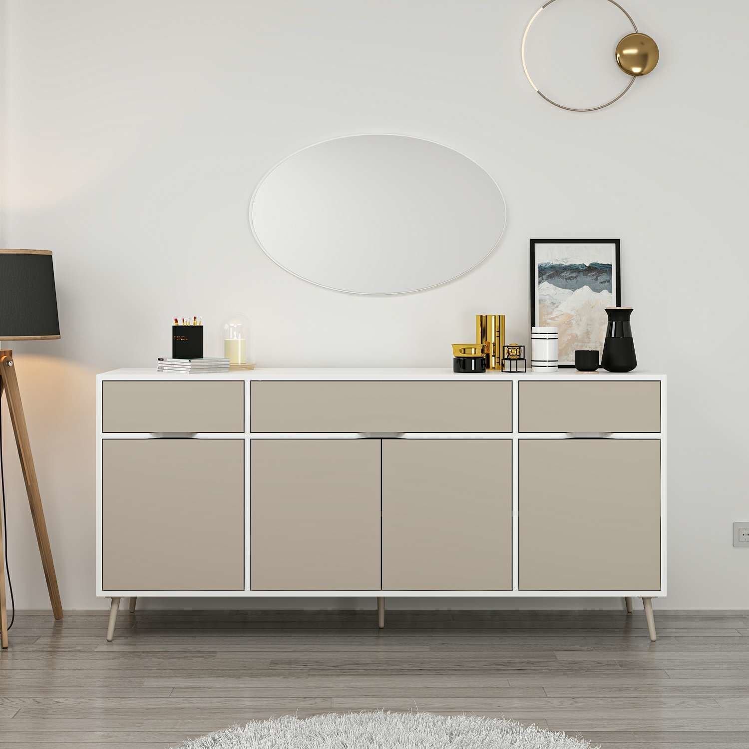 Elina Ayaklı Konsol Aynalı - Beyaz/Kumtaşı