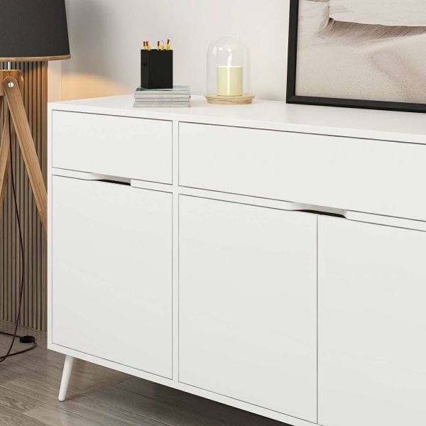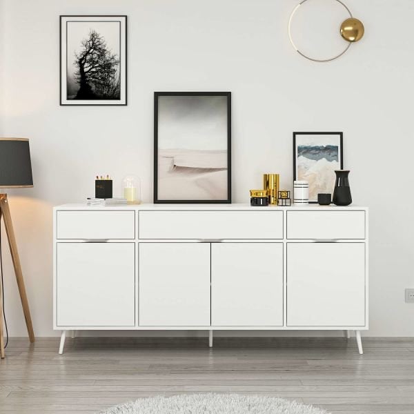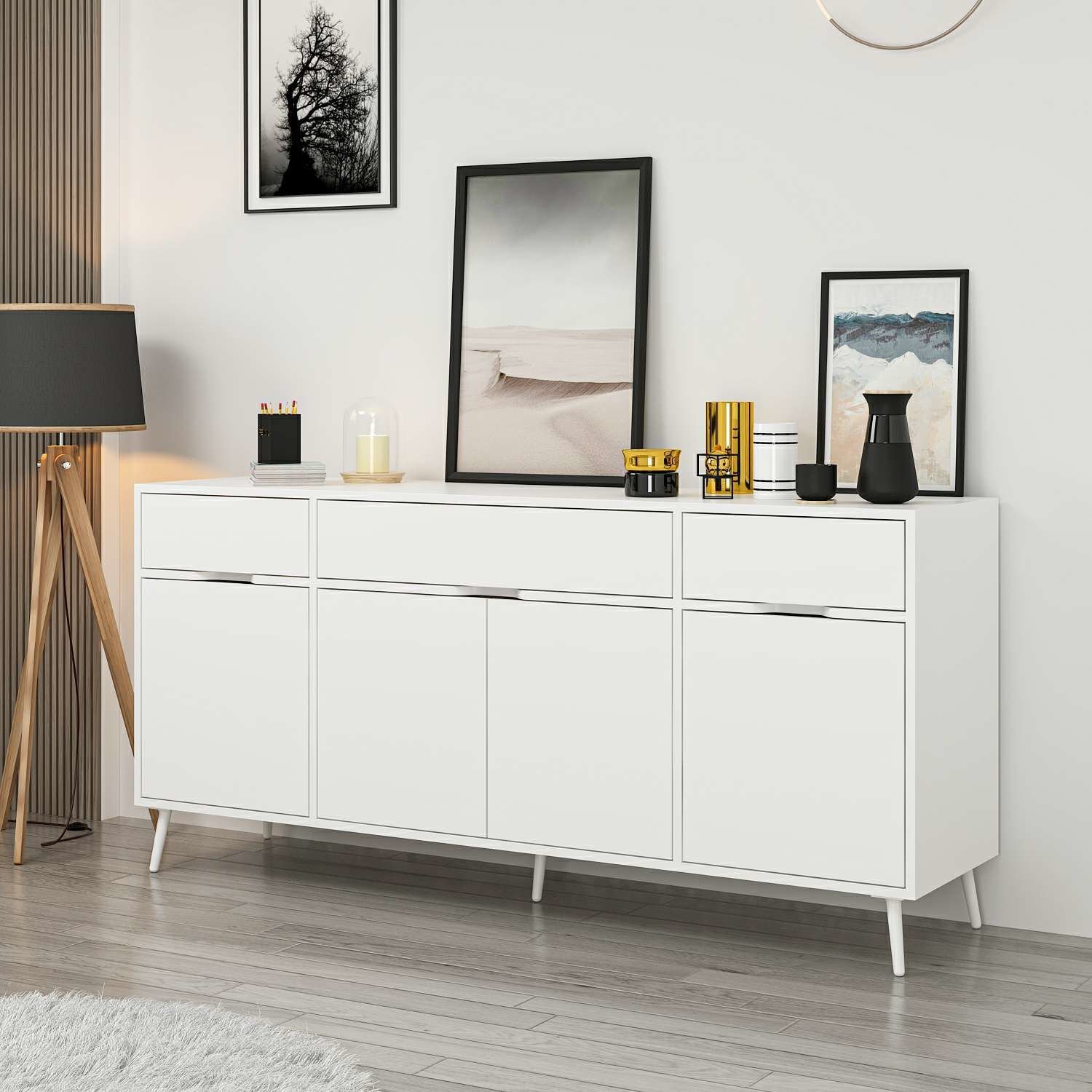 Elina Ayaklı Konsol Beyaz/Beyaz, yüksek kaliteli melamin kaplı 18 mm yonga levhadan üretilmektedir.