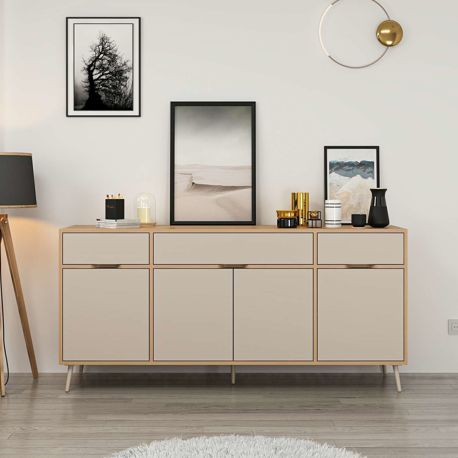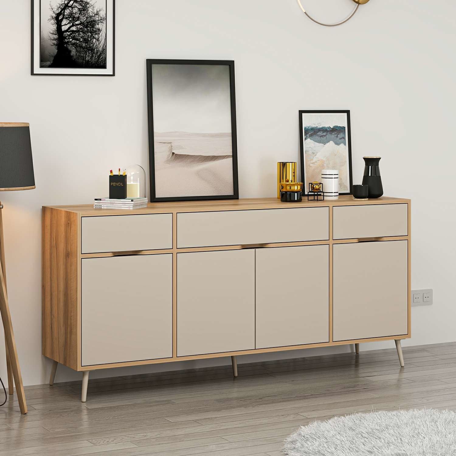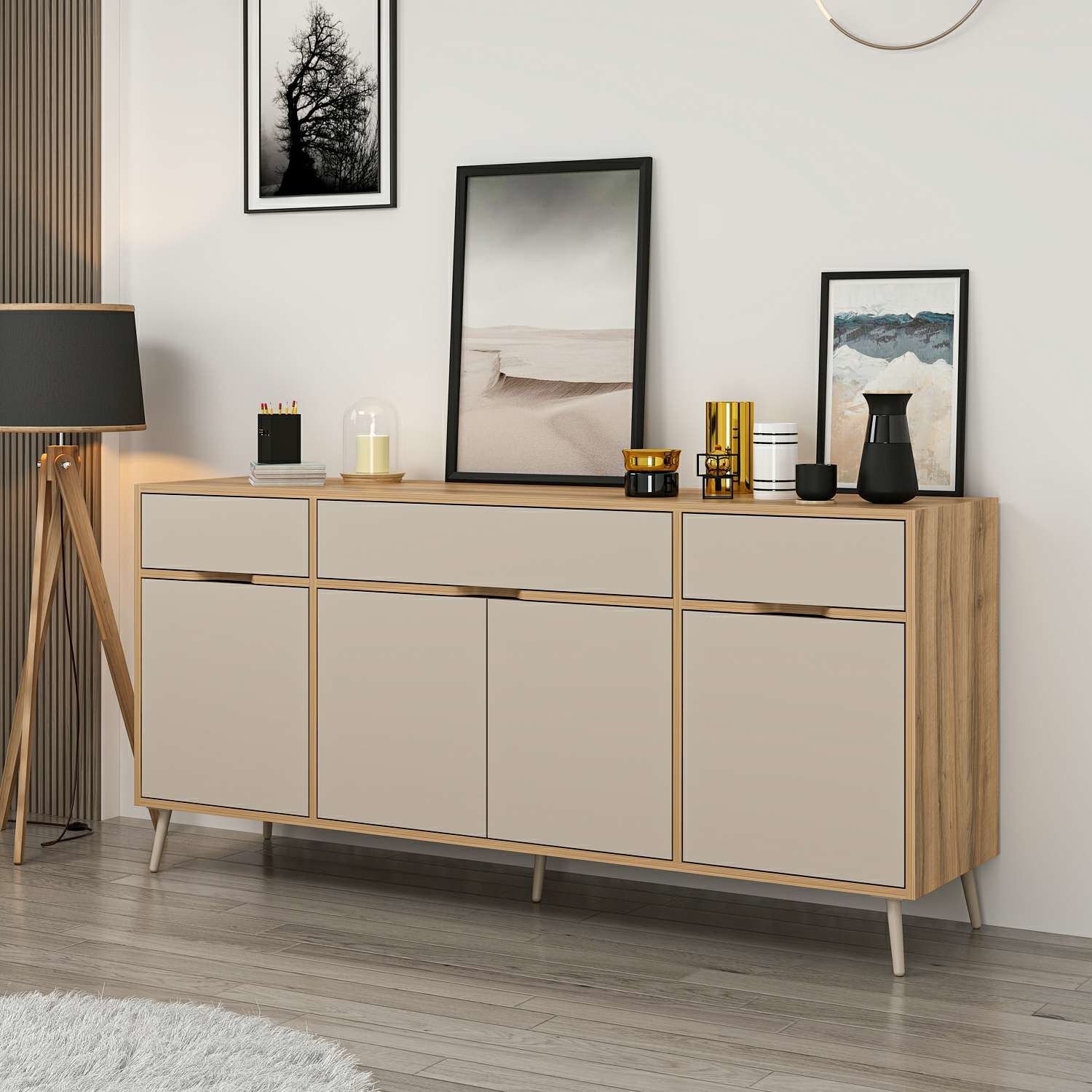 Elina Ayaklı Konsol Dore/Kumtaşı, yüksek kaliteli melamin kaplı 18 mm yonga levhadan üretilmektedir.