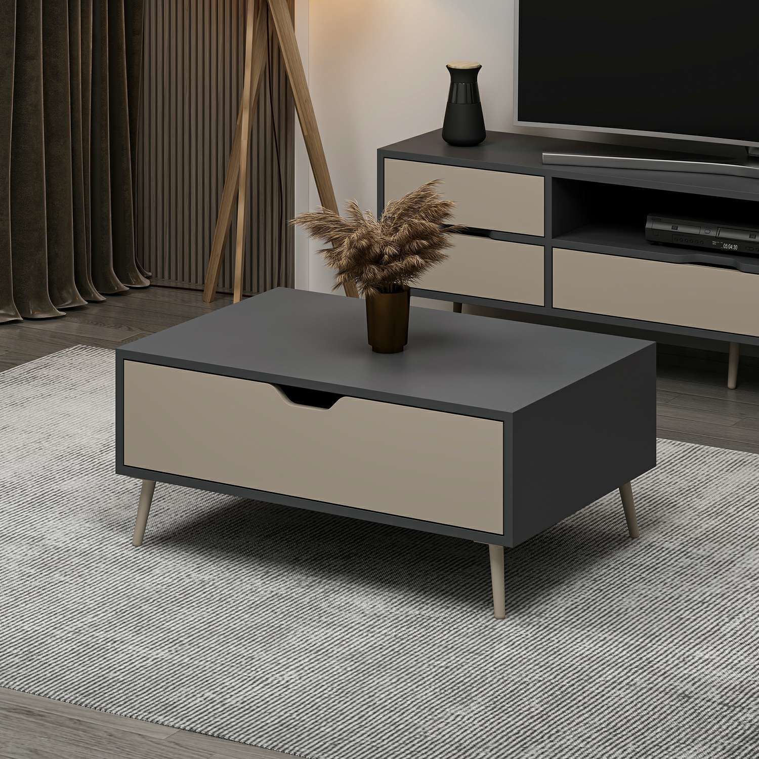 Elina Ayaklı Orta Sehpa- Antrasit/ Kumtaşı, yüksek kaliteli melamin kaplı 18 mm yonga levhadan üretilmektedir.
