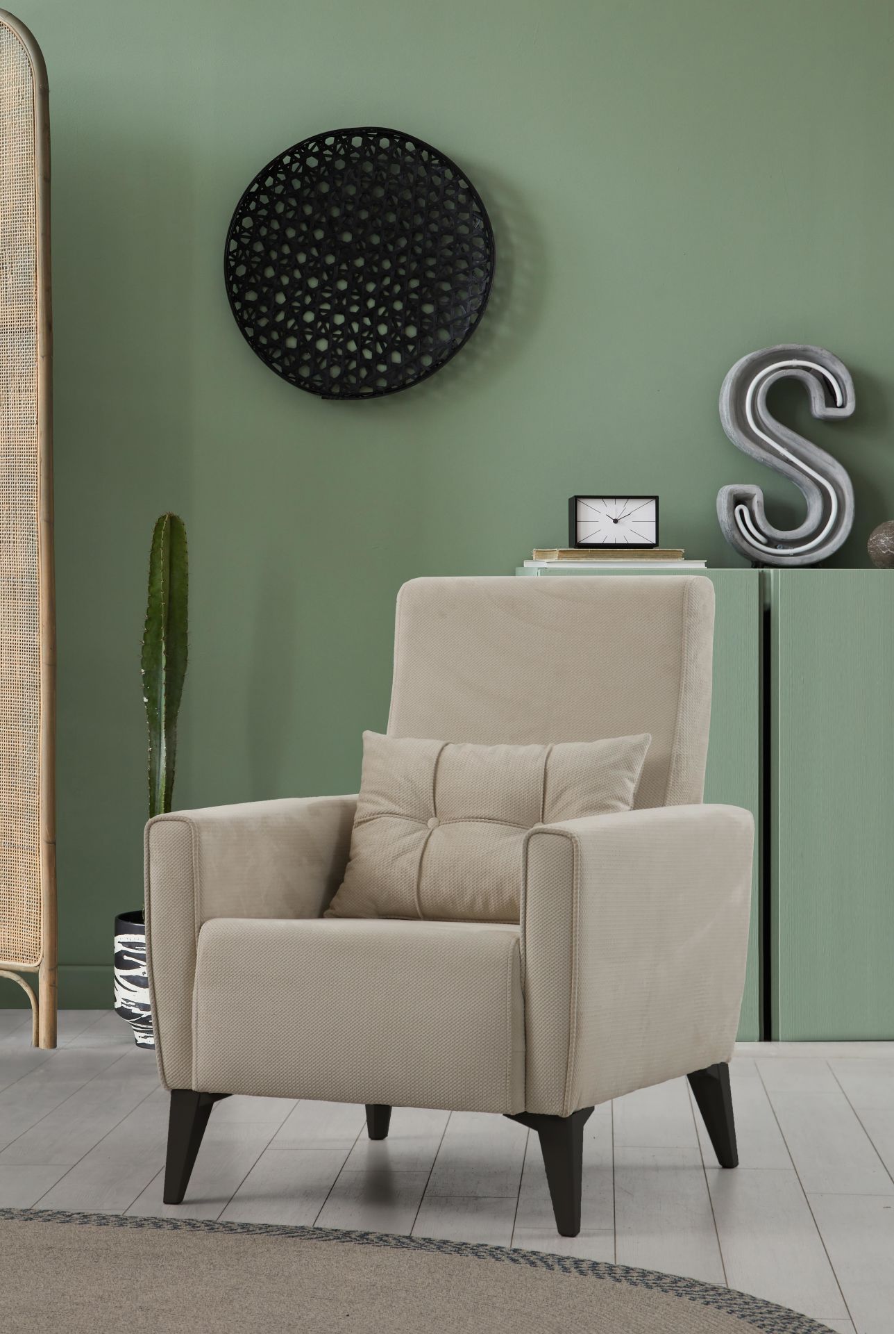 Modern çizgileri ve konforlu yapısıyla Elina Berjer, yaşam alanlarınıza zarif bir dokunuş yapar. Dokuma kumaş kaplaması sayesinde hem şık bir görünüm hem de dayanıklı ve uzun ömürlü kullanım imkânı sunar.