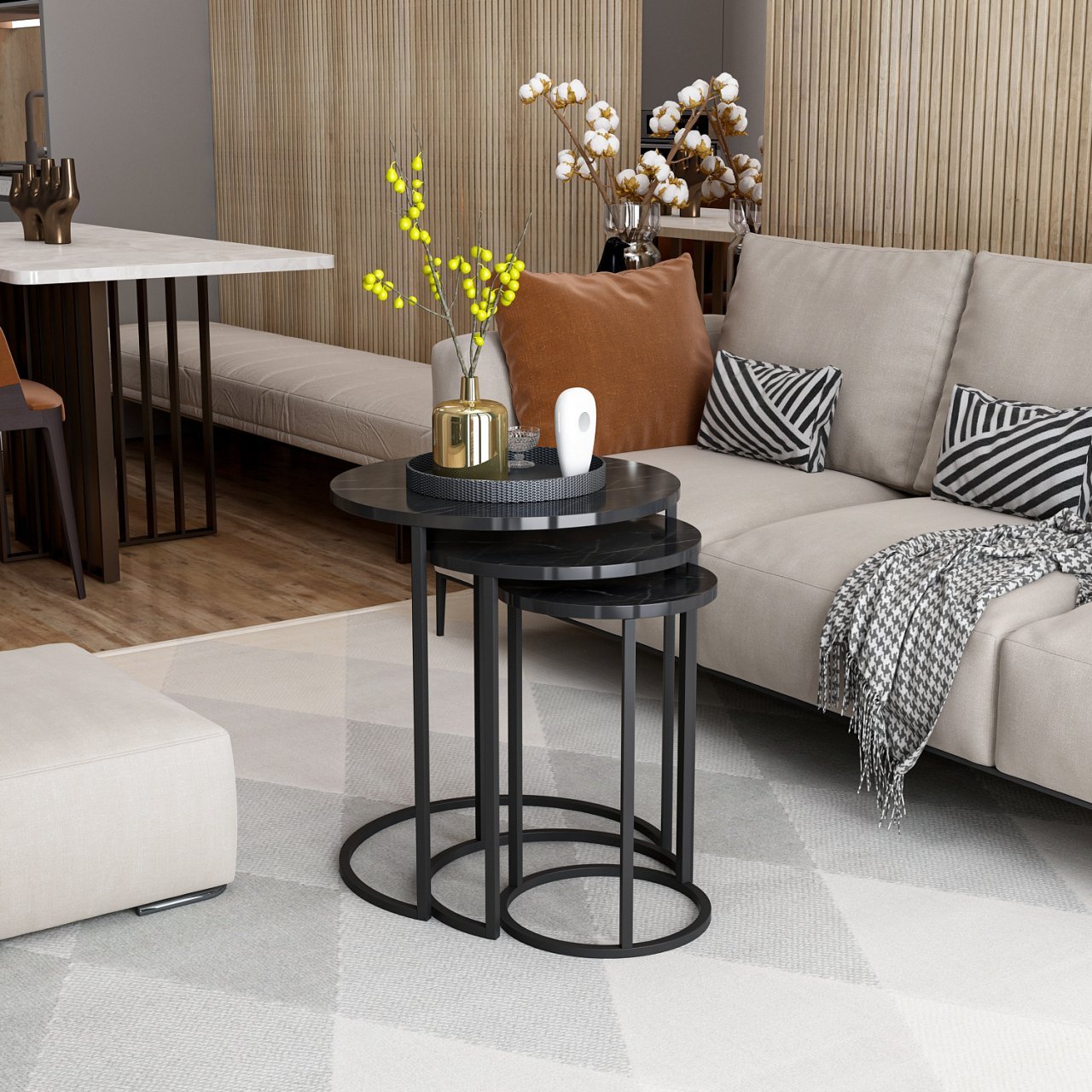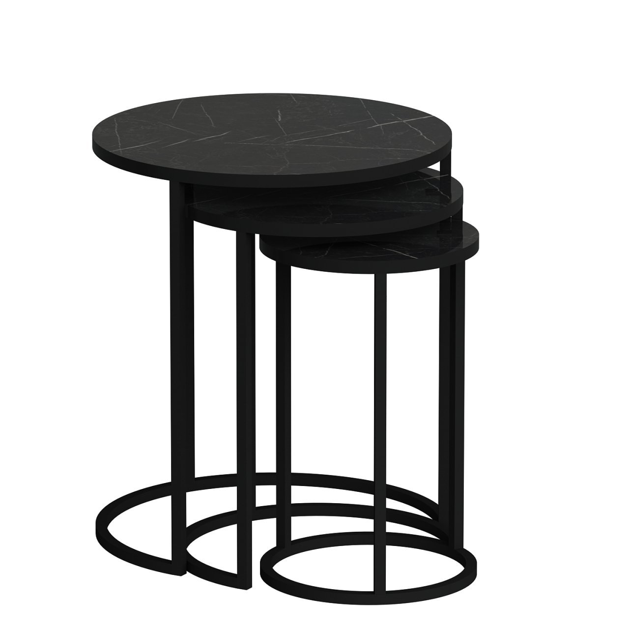 Gloria Metal Ayaklı 3'lü Zigon Sehpa - Royal Mermer/Siyah