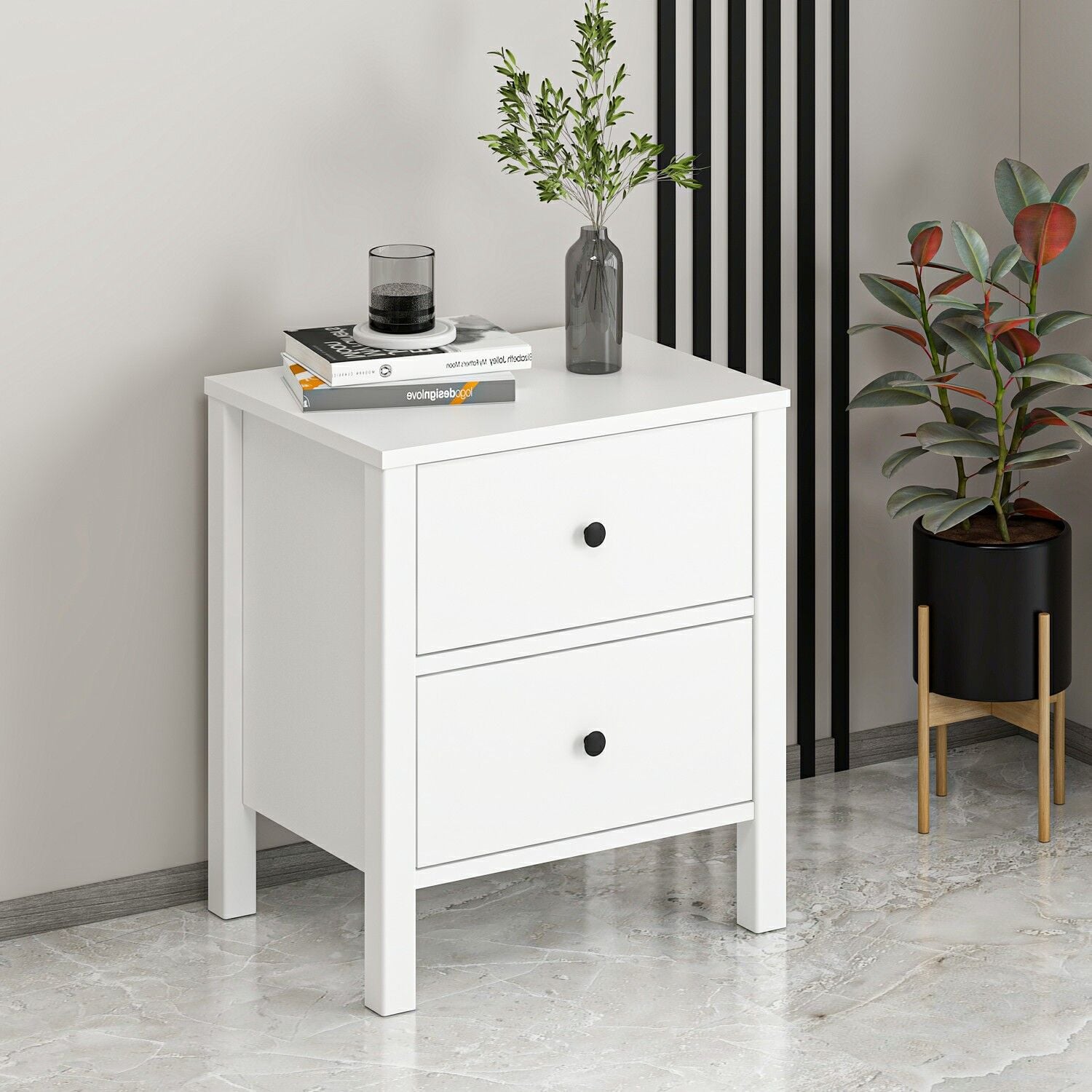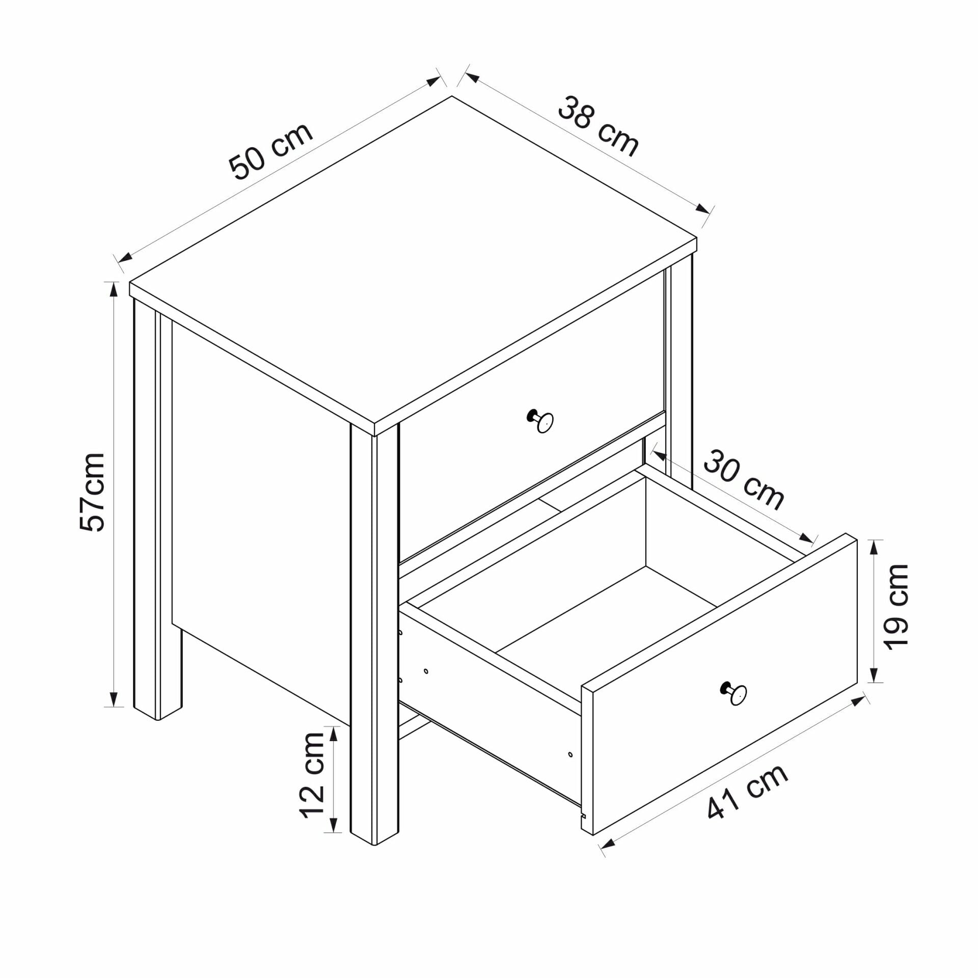 İnci 2C Komodin Profil Ayaklı -Beyaz