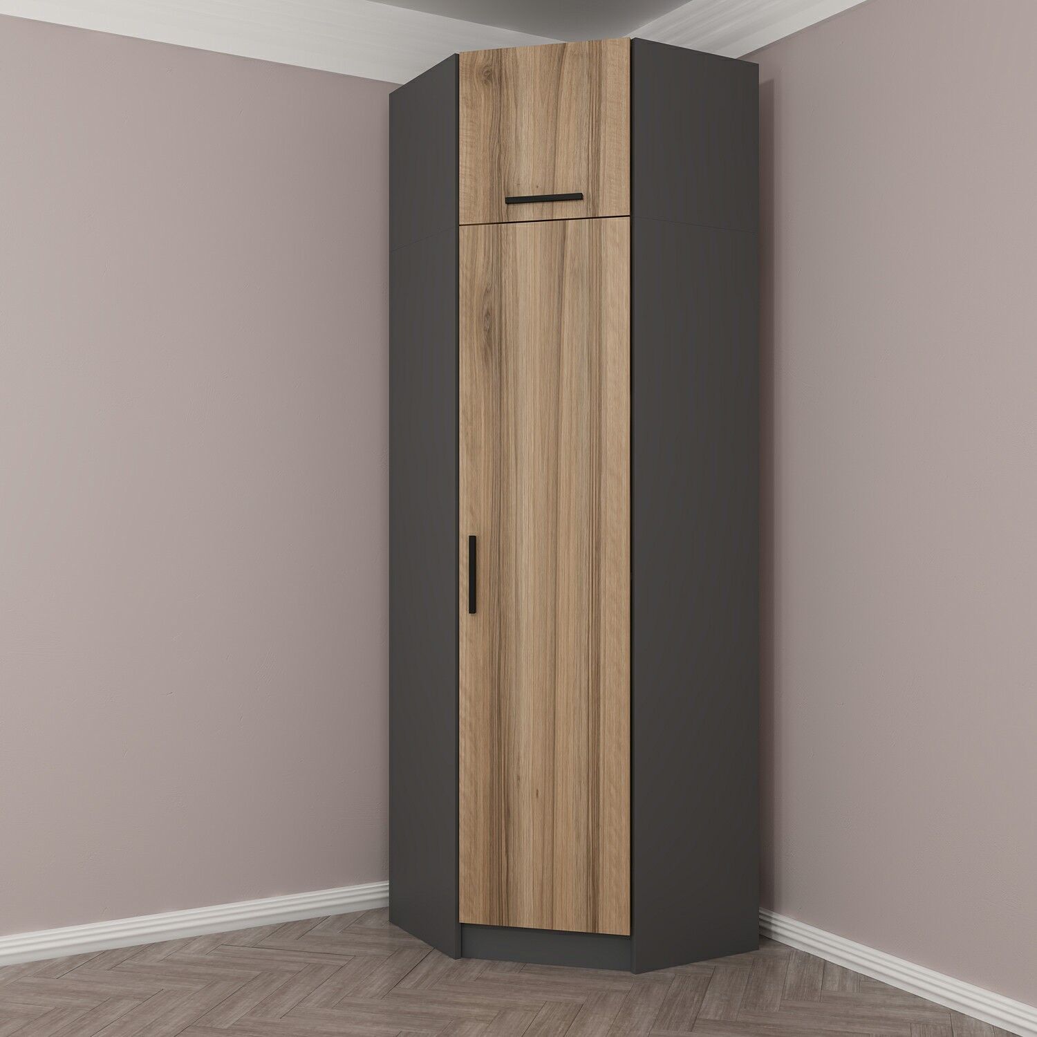 Kale 1 Kapaklı Köşe Dolap + Yüklük Antrasit Dore