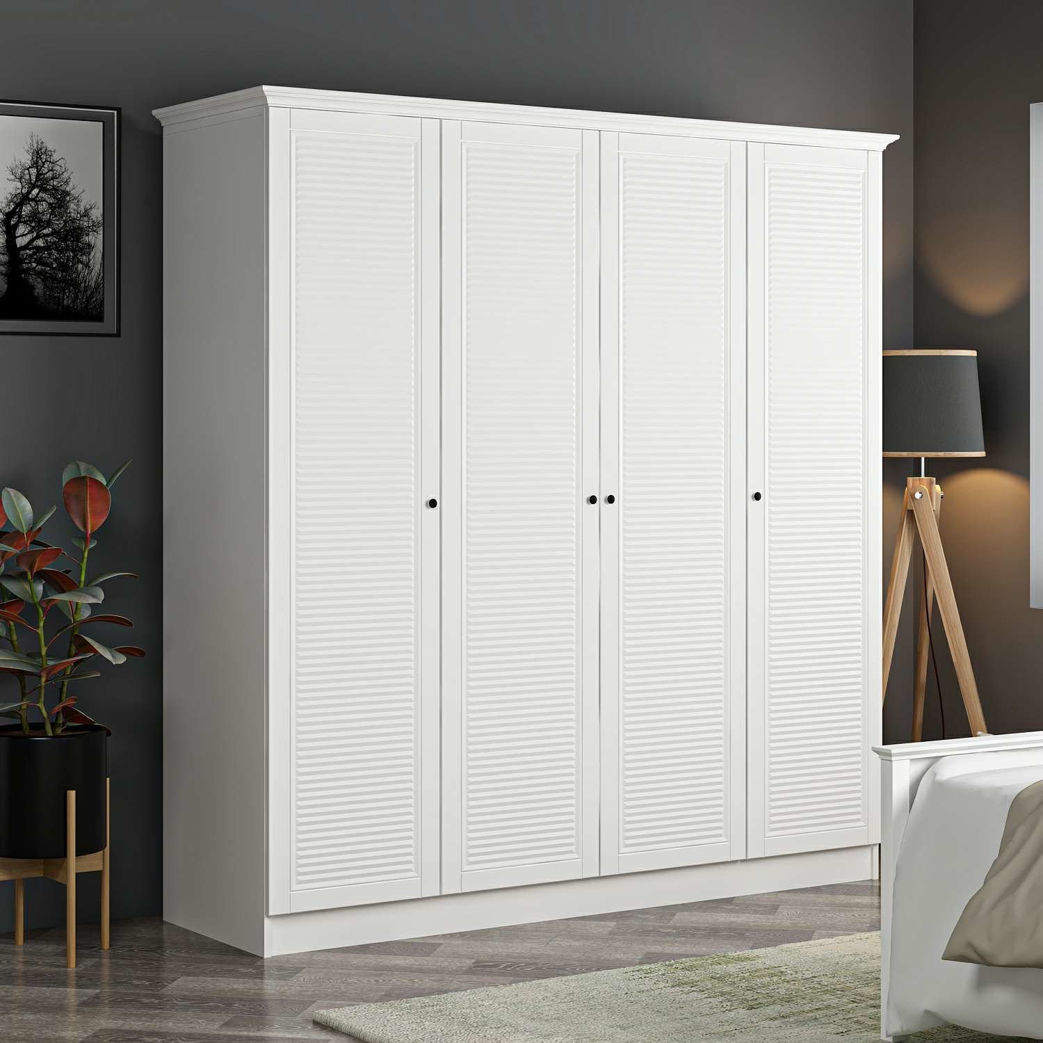 Kale 4 Kapaklı 2Ç Taçlı Dolap Beyaz Mebran Panjur Beyaz