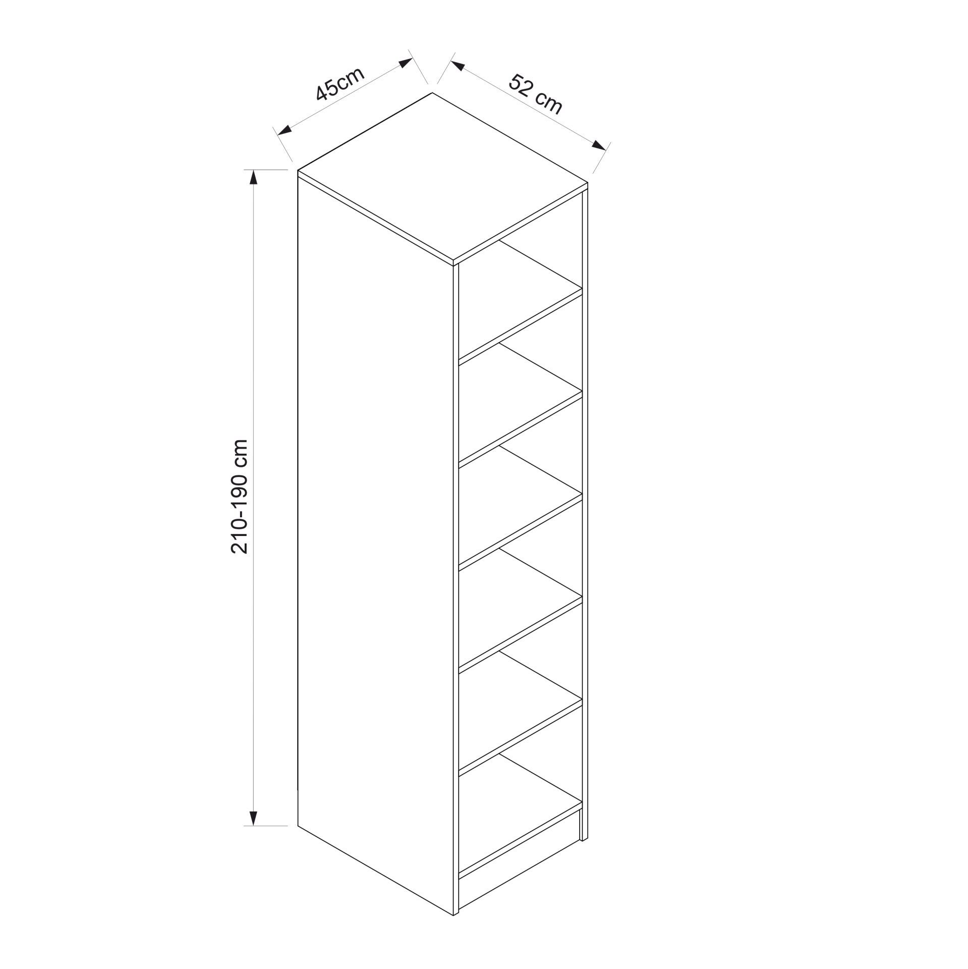 - Ölçüler (45x52x190–210 cm): Kompakt ve işlevsel depolama alanı.