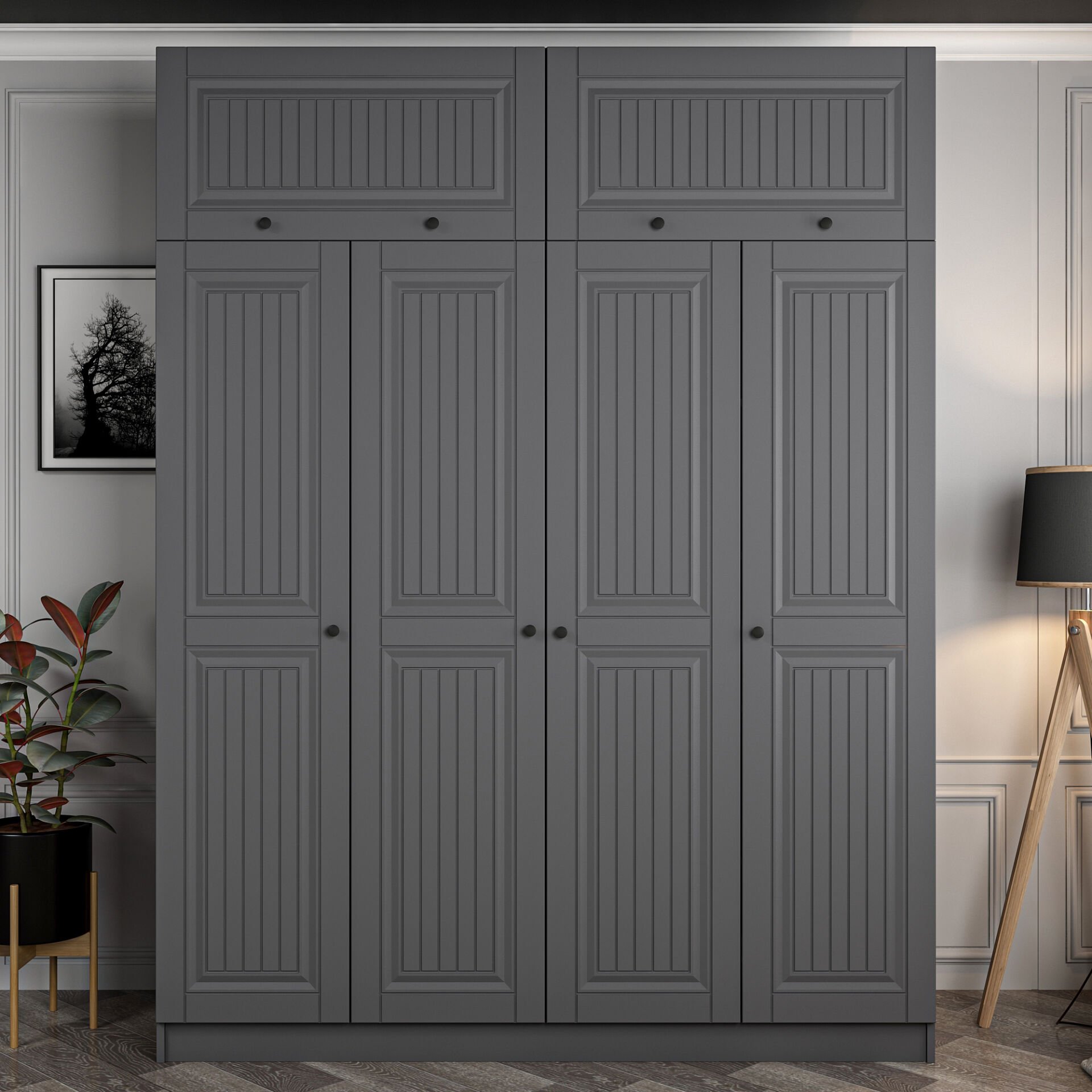 Kale 4 Kapaklı 2 İç Çekmeceli Dolap Ve Yüklük Antrasit Mebran İlkbahar