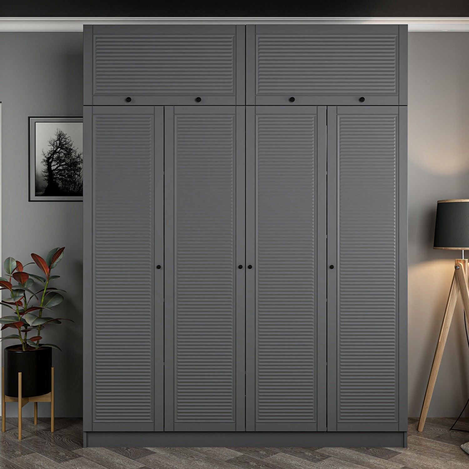Kale 4 Mebran Panjur Kapaklı 2 Çekmeceli Dolap Ve Yüklük Antrasit