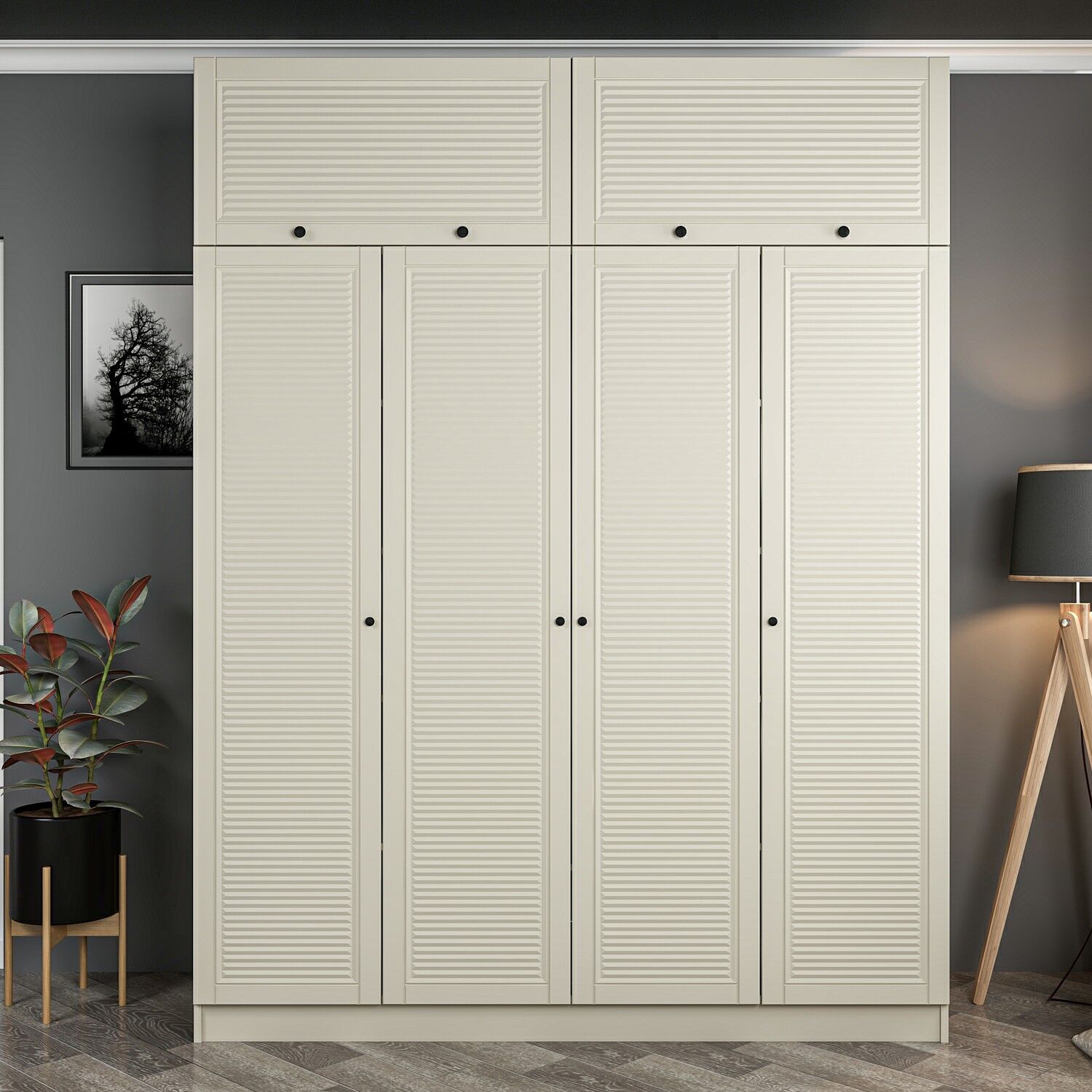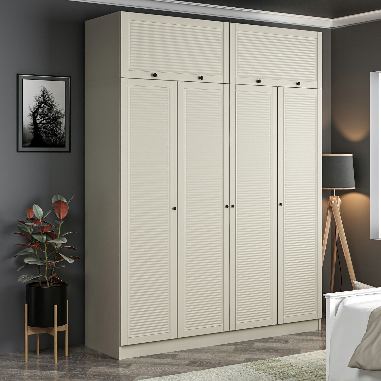 Kale 4 Mebran Panjur Kapaklı 2 Çekmeceli Dolap Ve Yüklük Kumtaşı