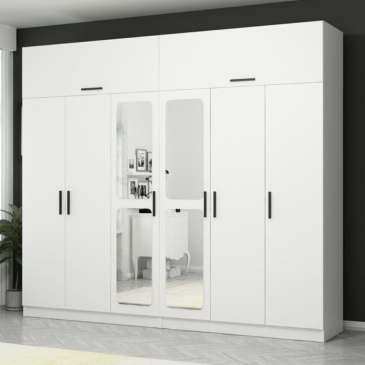 Kale 6 Kapaklı Aynalı 4Ç Zincir Dolap-Yüklük - Beyaz