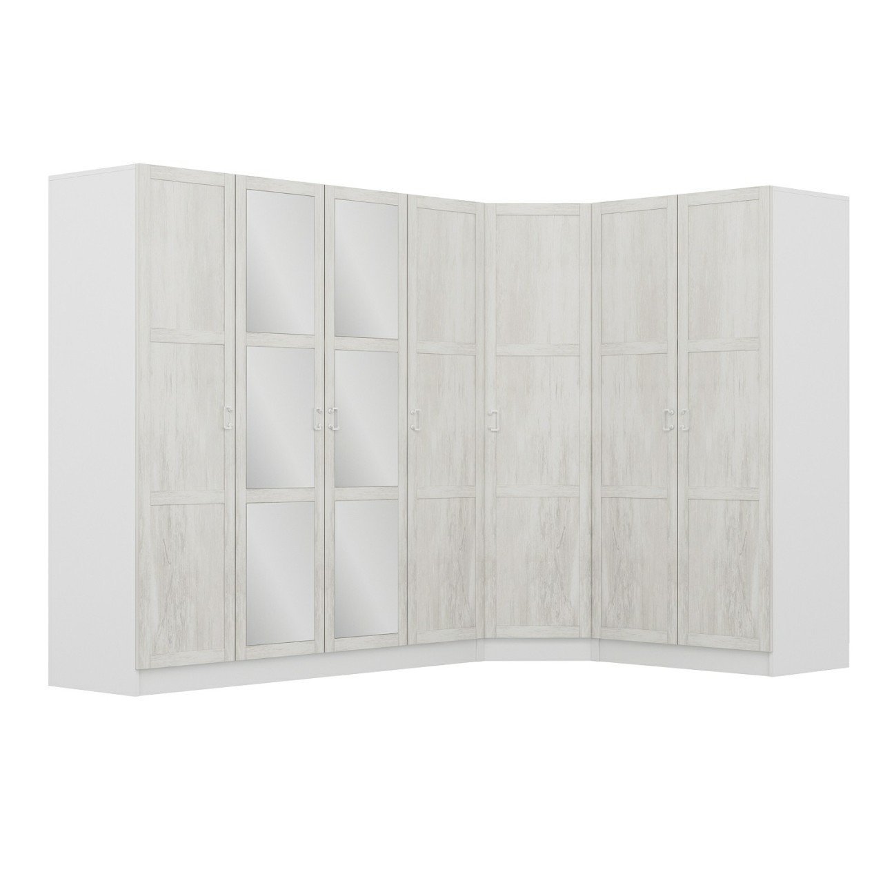 Kale 7 Country Kapaklı Aynalı 2Ç Köşe Dolap - Eskitme Beyaz